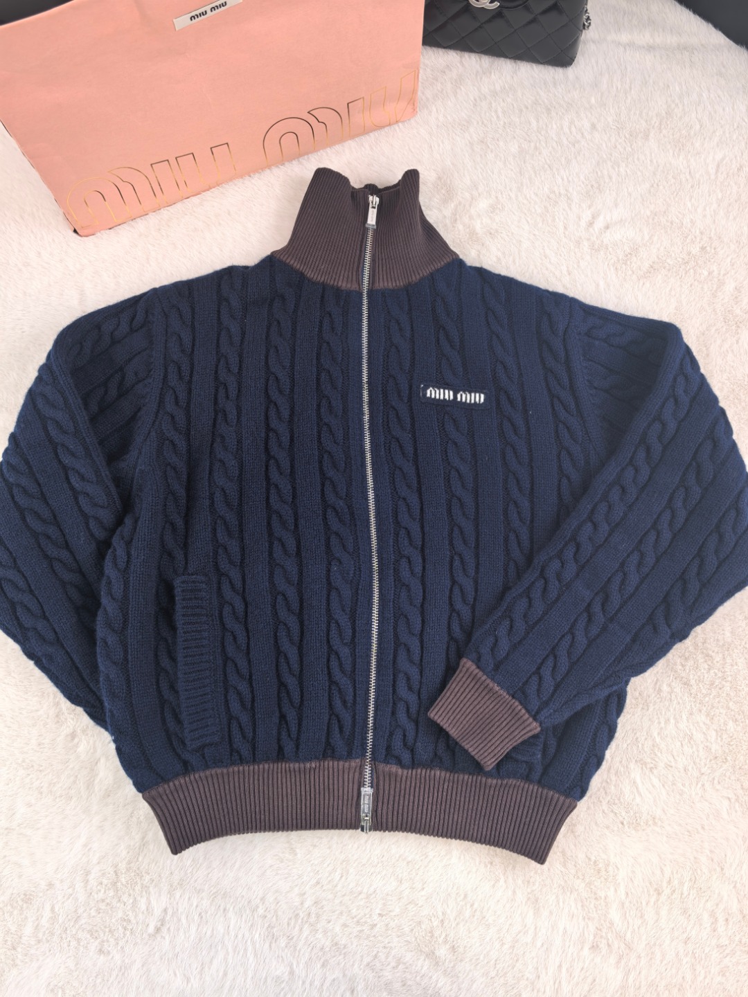 這款衣服是AAAAA 1:1 質量(非常棒). 使用了和原版一模一樣的材料. 商標部分也保持了和繆繆/Miu Miu一樣. 圖片拍攝是實物衣服拍攝, 您所收到的實物保證和我們圖片一模一樣.