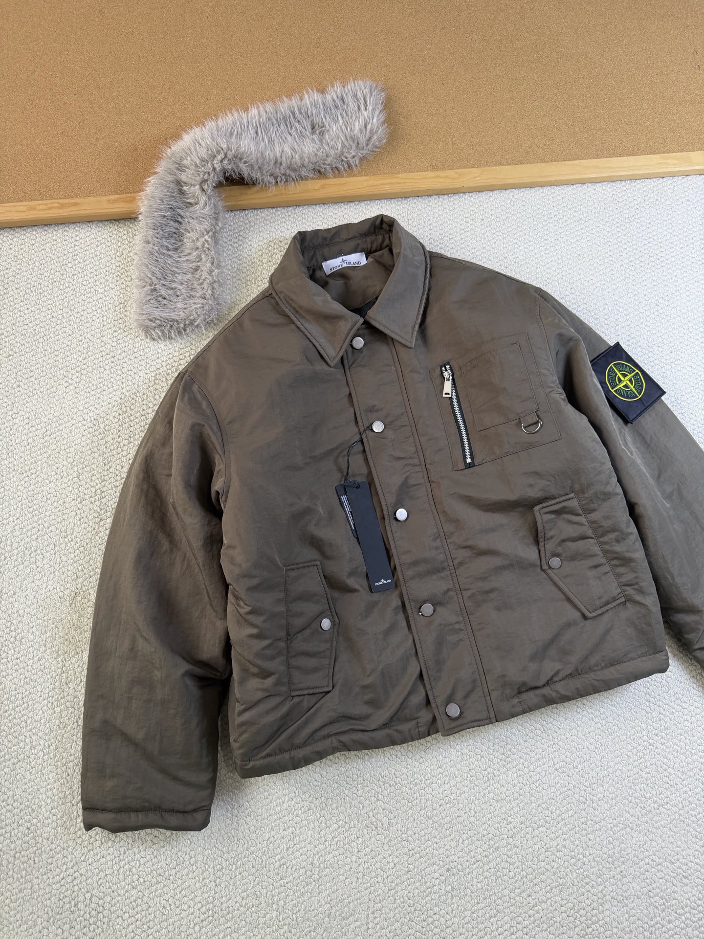 這款衣服是AAAAA 1:1 質量(非常棒). 使用了和原版一模一樣的材料. 商標部分也保持了和Stone Island一樣. 圖片拍攝是實物衣服拍攝, 您所收到的實物保證和我們圖片一模一樣.