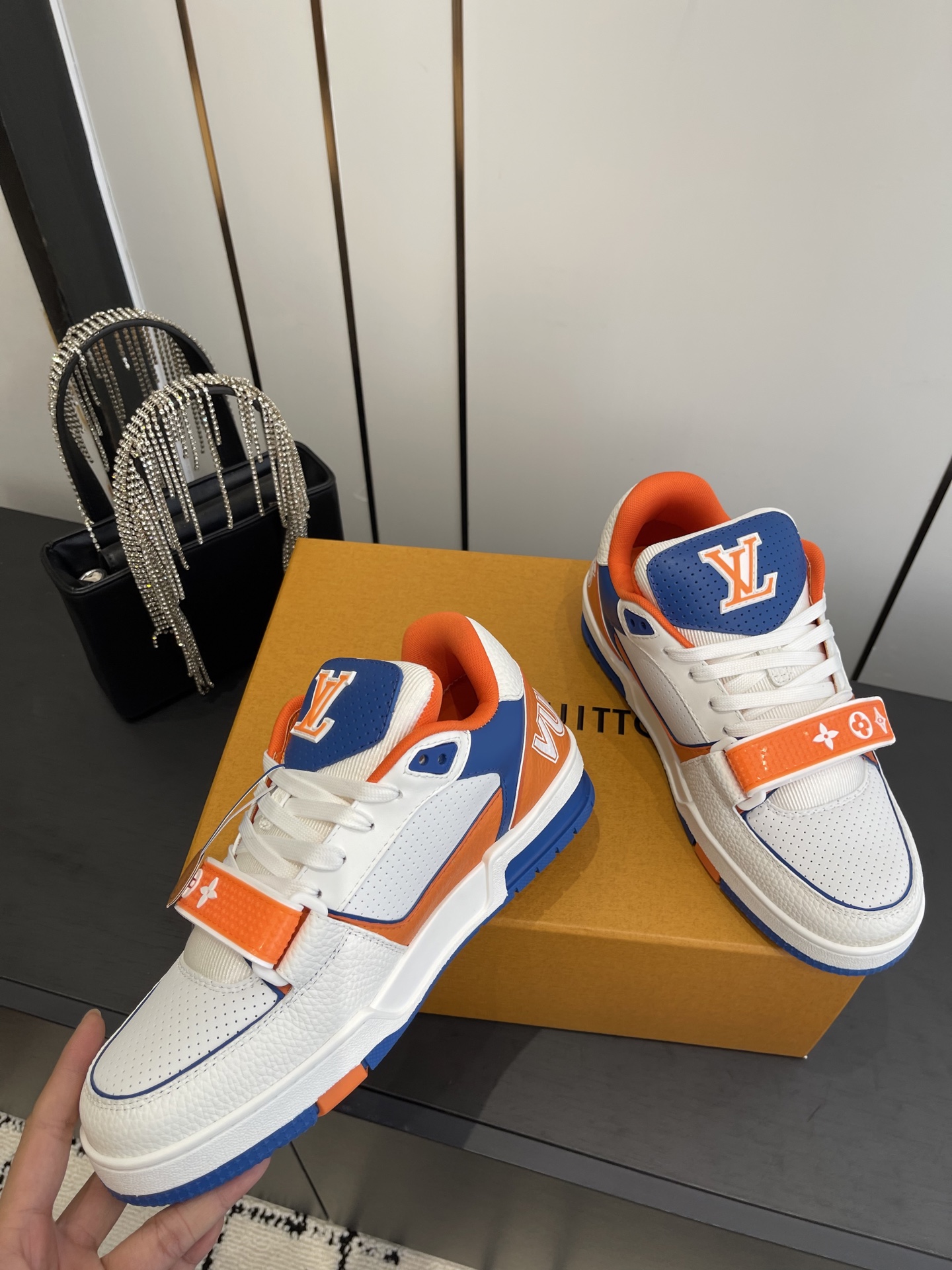 這款鞋子是AAAAA 1:1 質量(非常棒). 使用了和原版一模一樣的材料. 商標部分也保持了和路易威登/Louis Vuitton一樣. 圖片拍攝是實物鞋子拍攝, 您所收到的實物保證和我們圖片一模一樣.