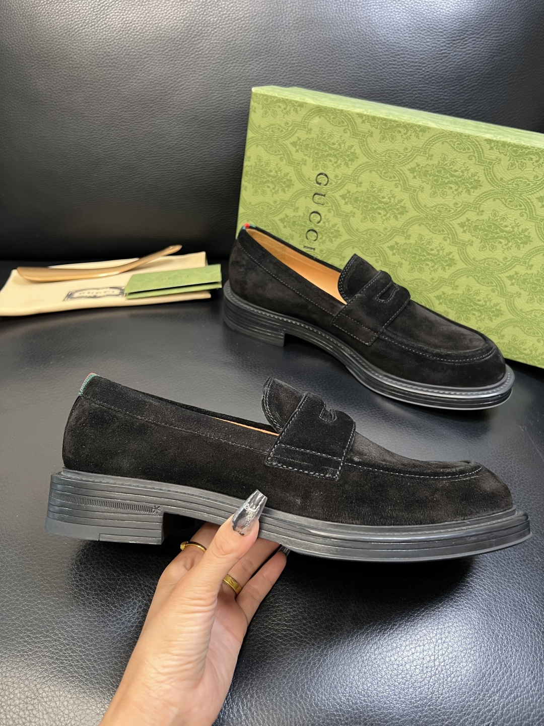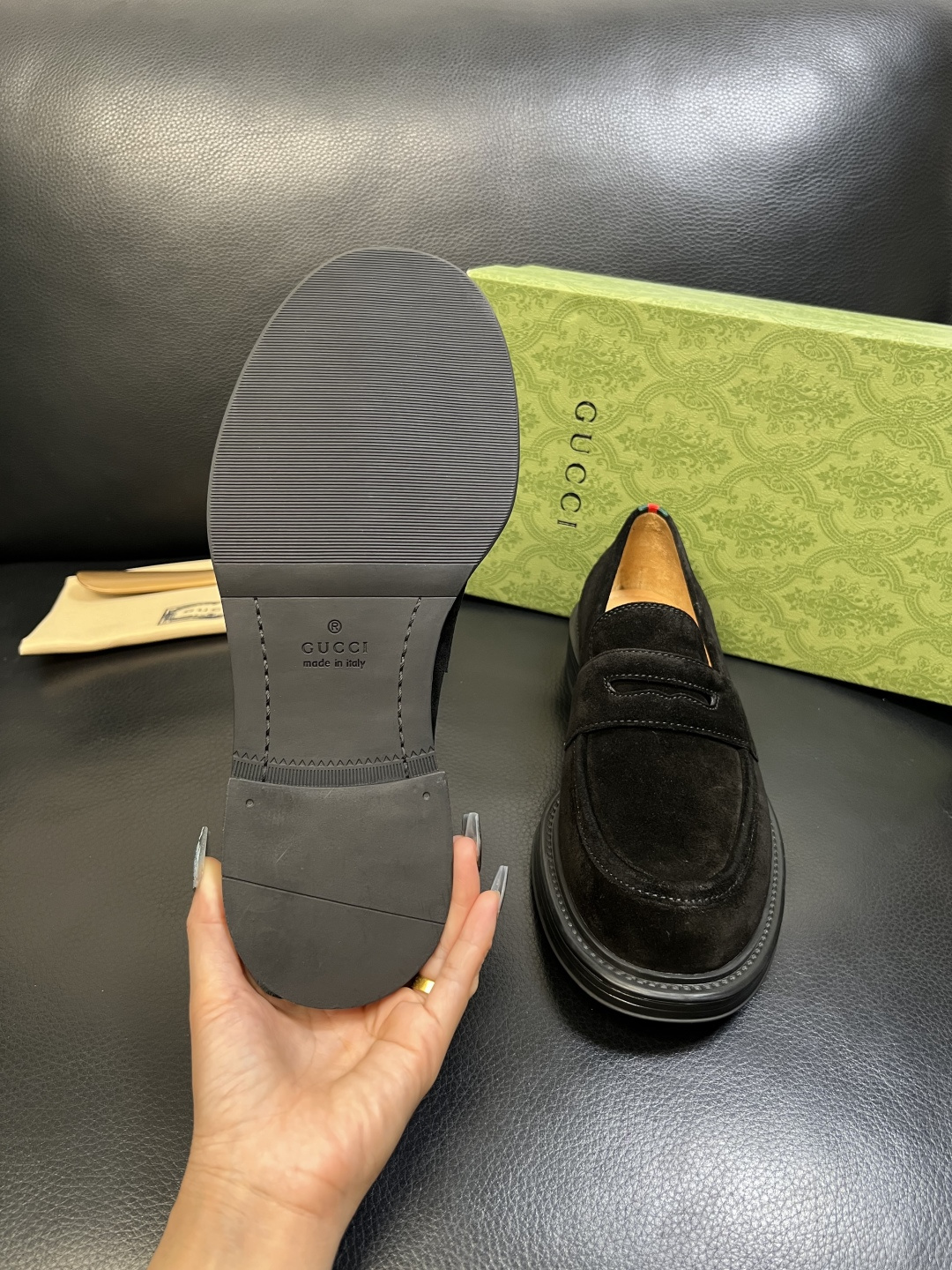 這款鞋子是AAAAA 1:1 質量(非常棒). 使用了和原版一模一樣的材料. 商標部分也保持了和古奇/Gucci一樣. 圖片拍攝是實物鞋子拍攝, 您所收到的實物保證和我們圖片一模一樣.