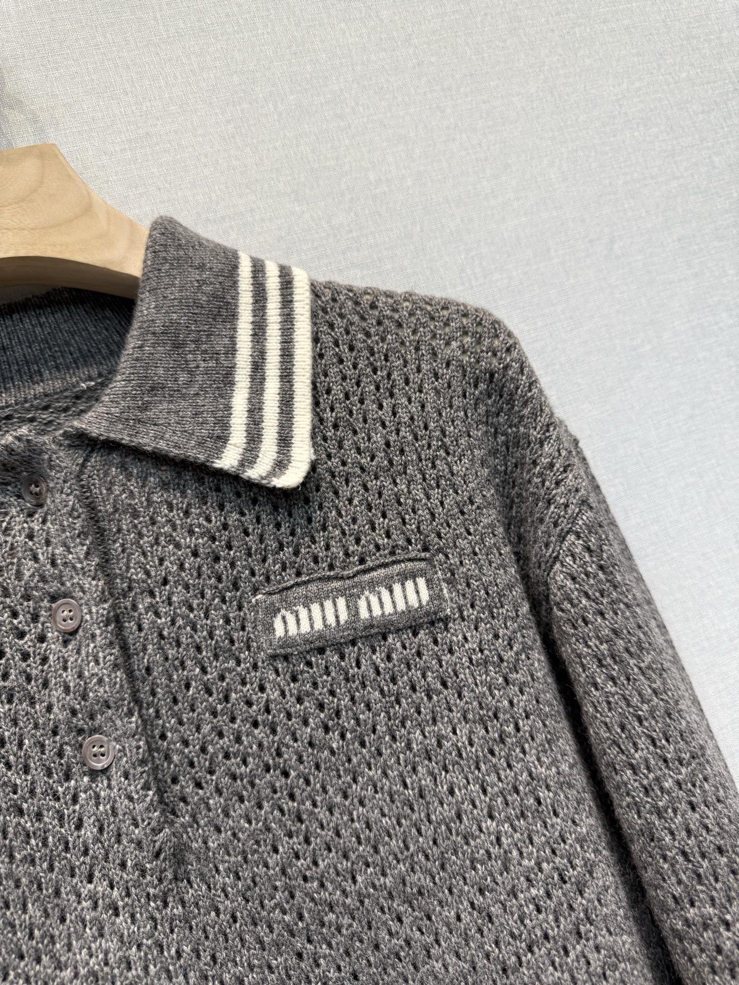這款衣服是AAAAA 1:1 質量(非常棒). 使用了和原版一模一樣的材料. 商標部分也保持了和繆繆/Miu Miu一樣. 圖片拍攝是實物衣服拍攝, 您所收到的實物保證和我們圖片一模一樣.