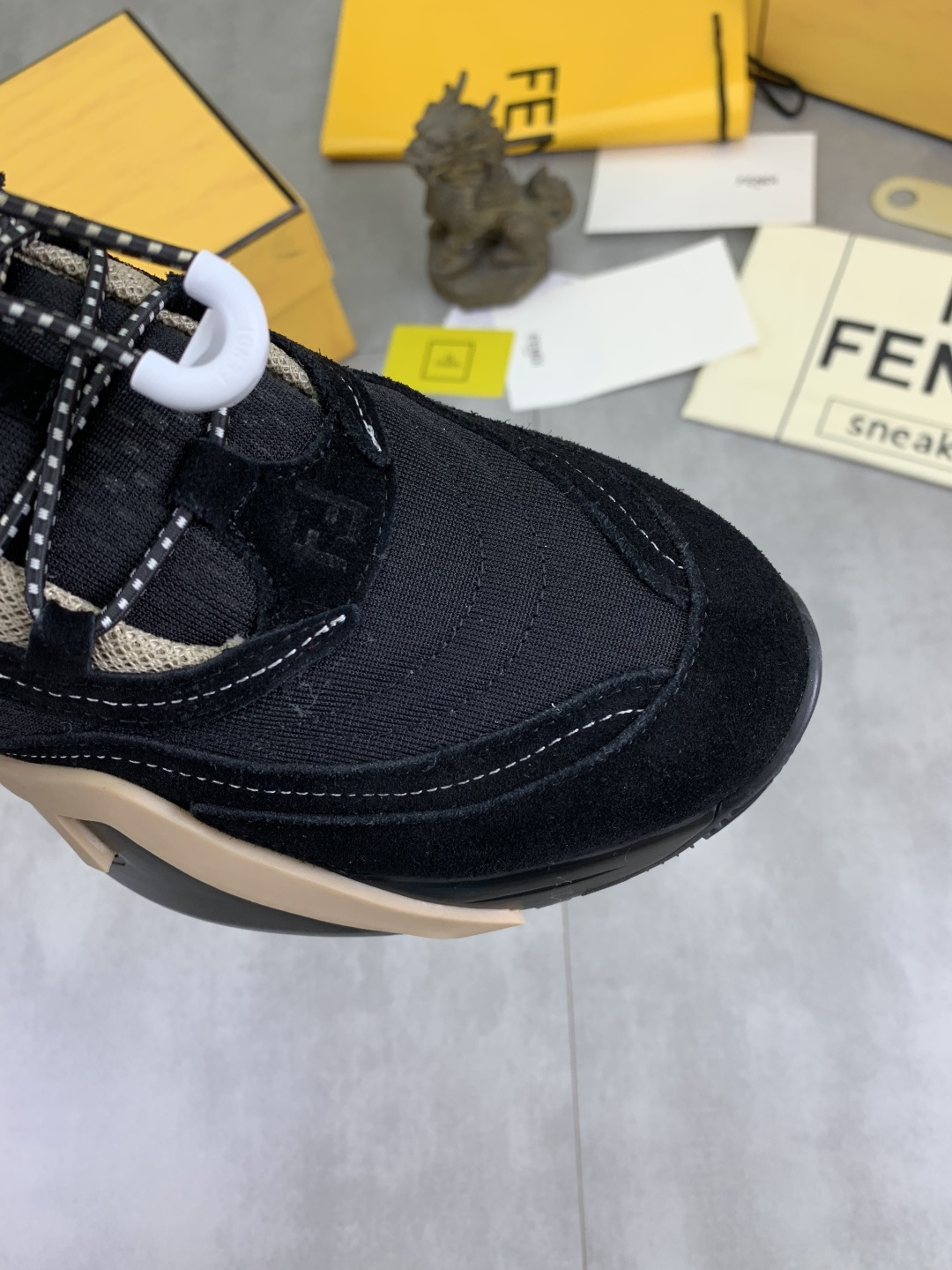 這款鞋子是AAAAA 1:1 質量(非常棒). 使用了和原版一模一樣的材料. 商標部分也保持了和芬迪/Fendi一樣. 圖片拍攝是實物鞋子拍攝, 您所收到的實物保證和我們圖片一模一樣.