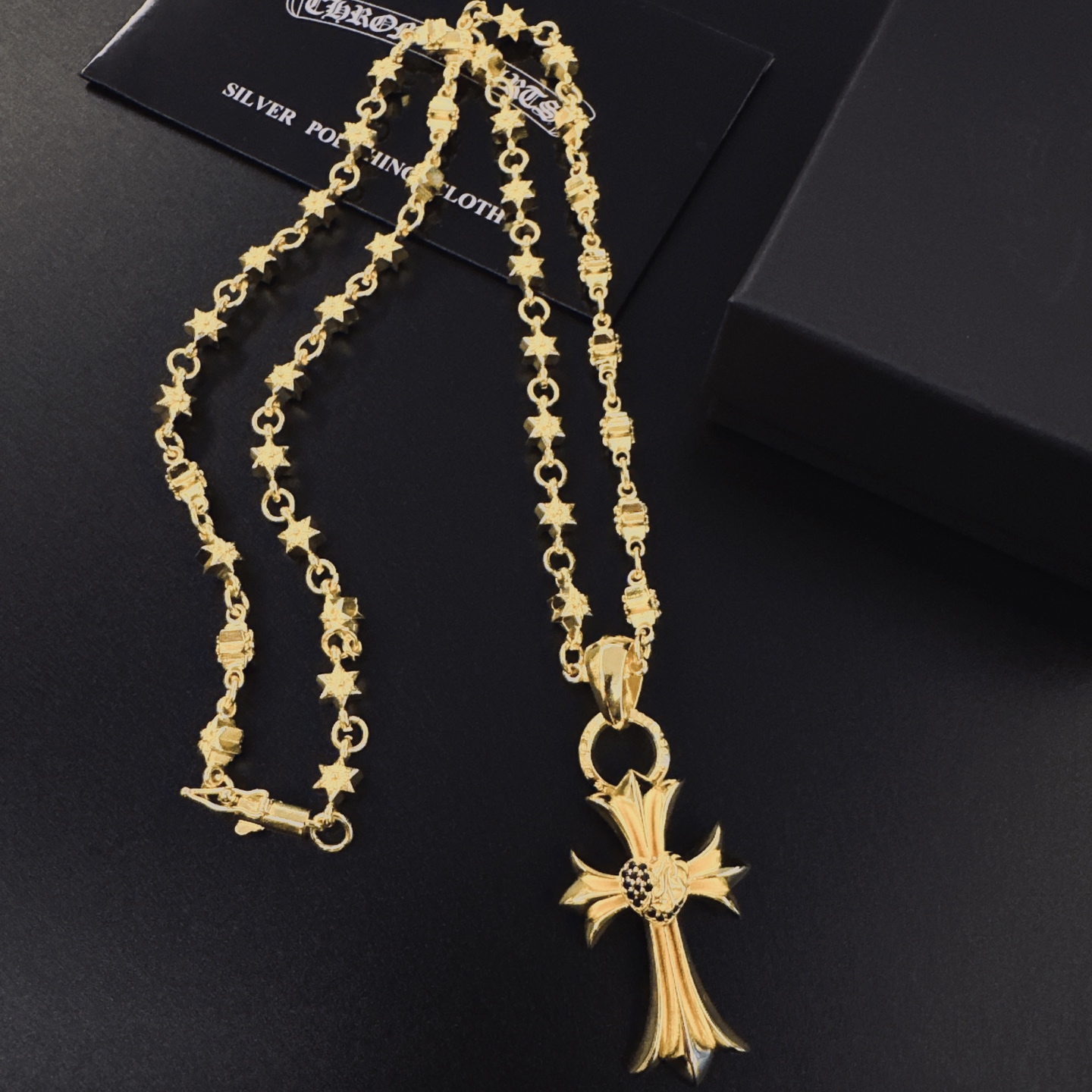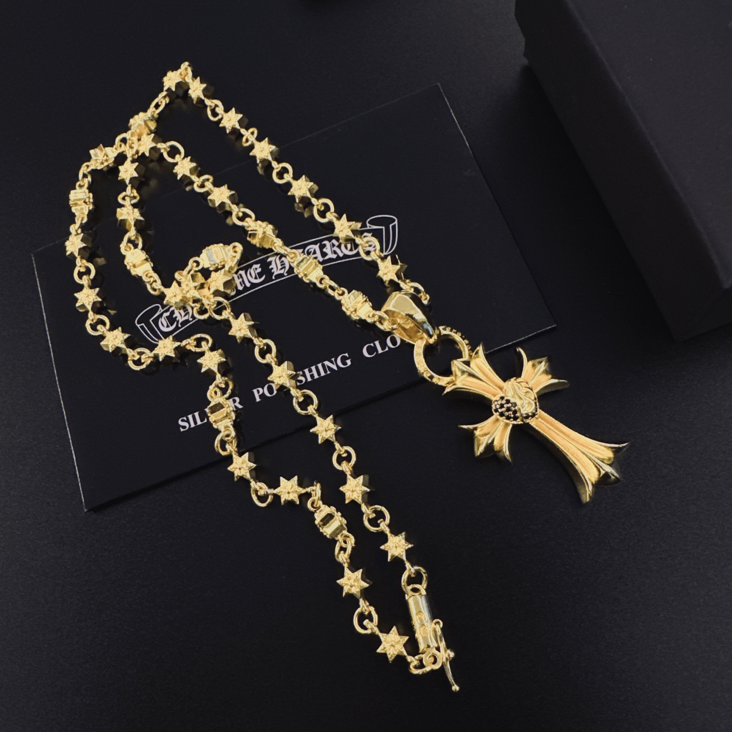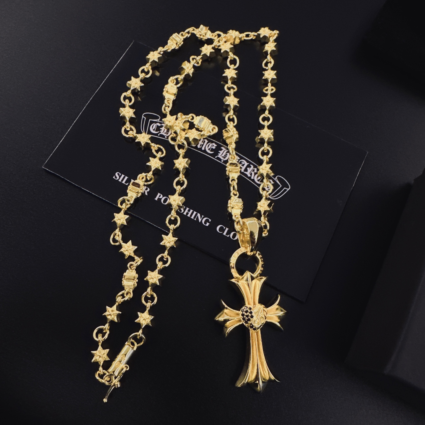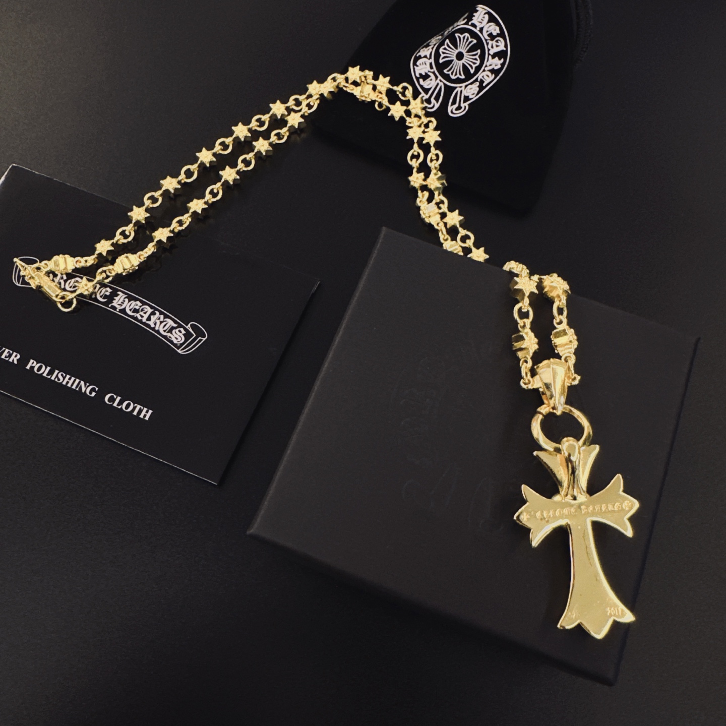 這款首飾是AAAAA 1:1 質量(非常棒). 使用了和原版一模一樣的材料. 商標部分也保持了和鉻心/Chrome Hearts一樣. 圖片拍攝是實物首飾拍攝, 您所收到的實物保證和我們圖片一模一樣.