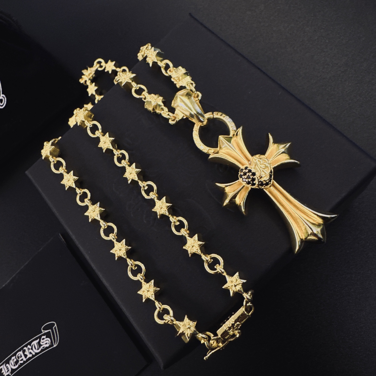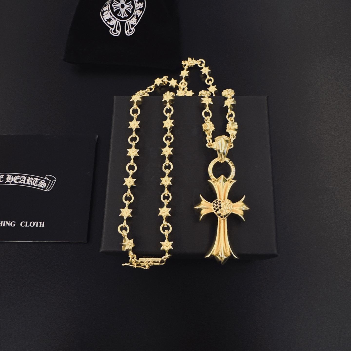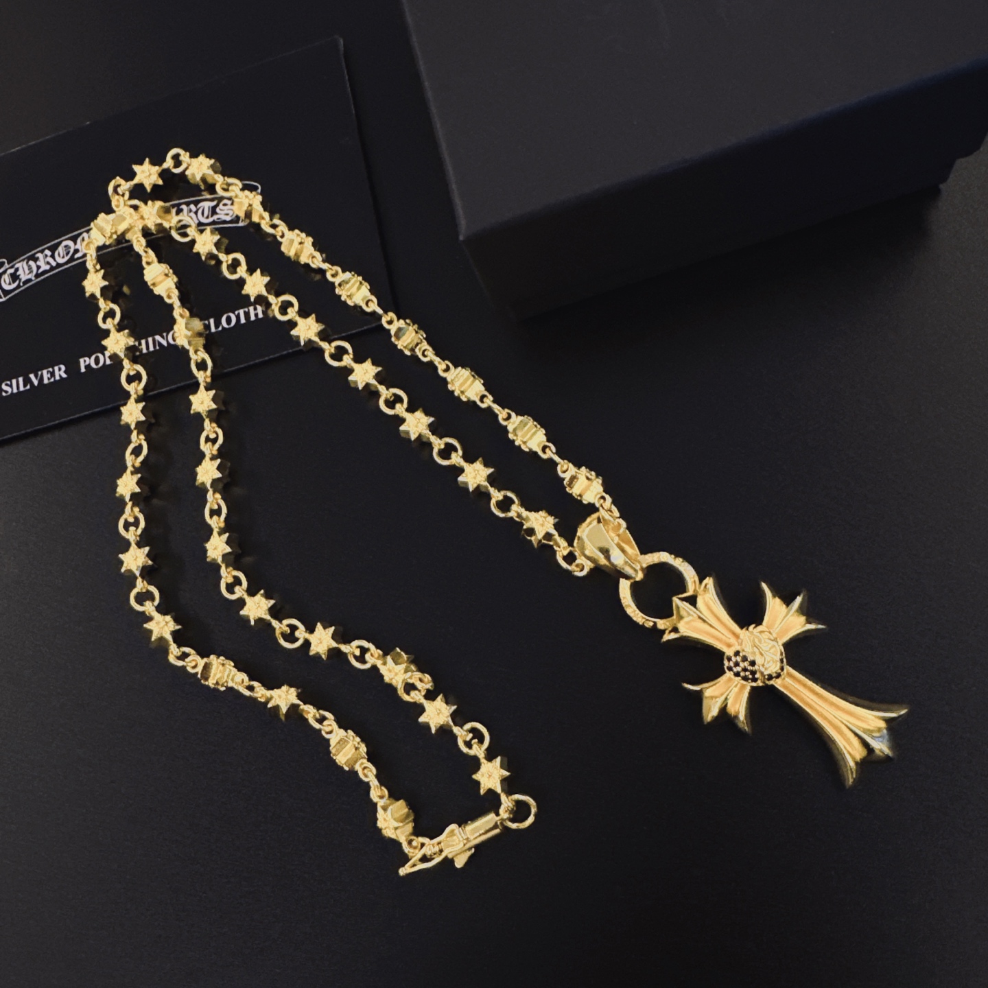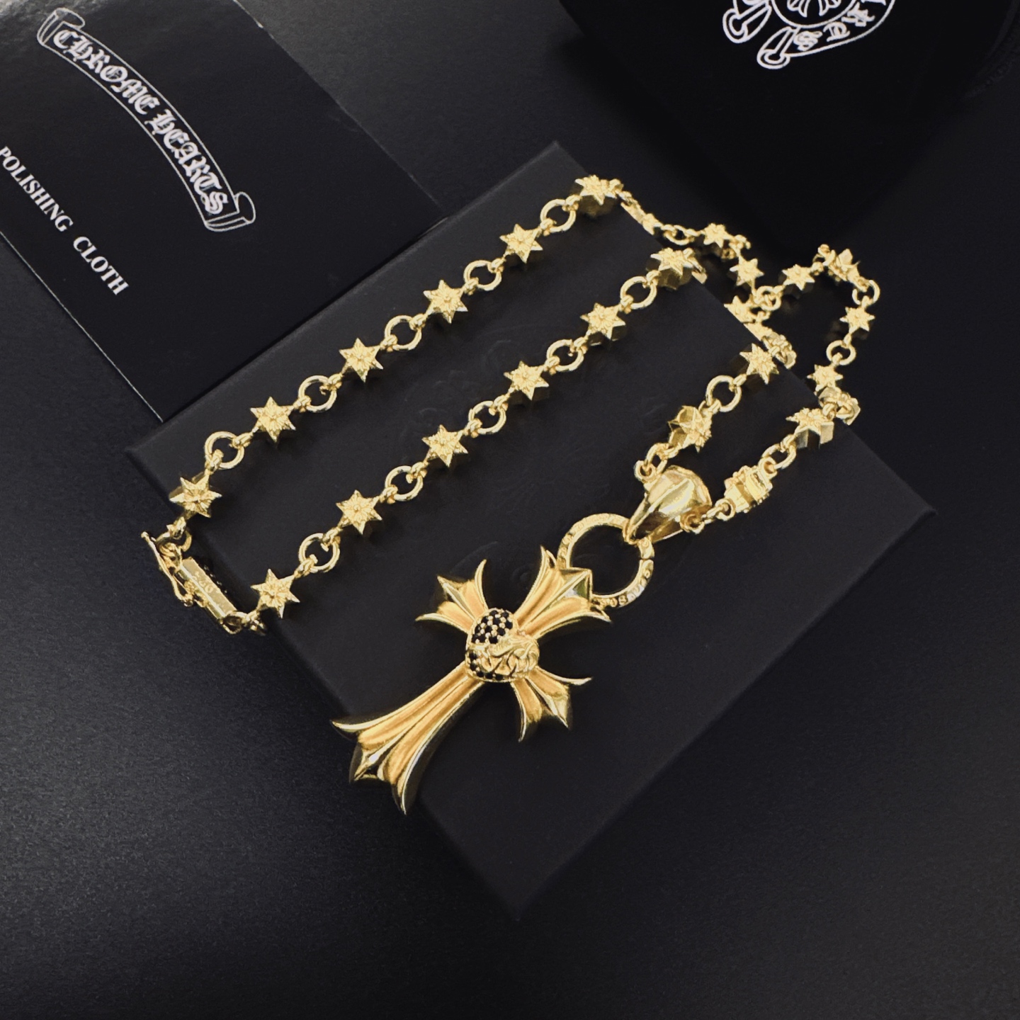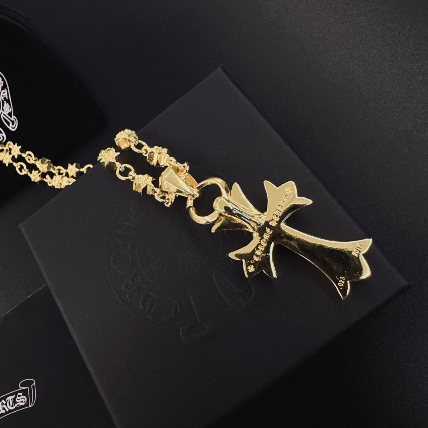 這款首飾是AAAAA 1:1 質量(非常棒). 使用了和原版一模一樣的材料. 商標部分也保持了和鉻心/Chrome Hearts一樣. 圖片拍攝是實物首飾拍攝, 您所收到的實物保證和我們圖片一模一樣.