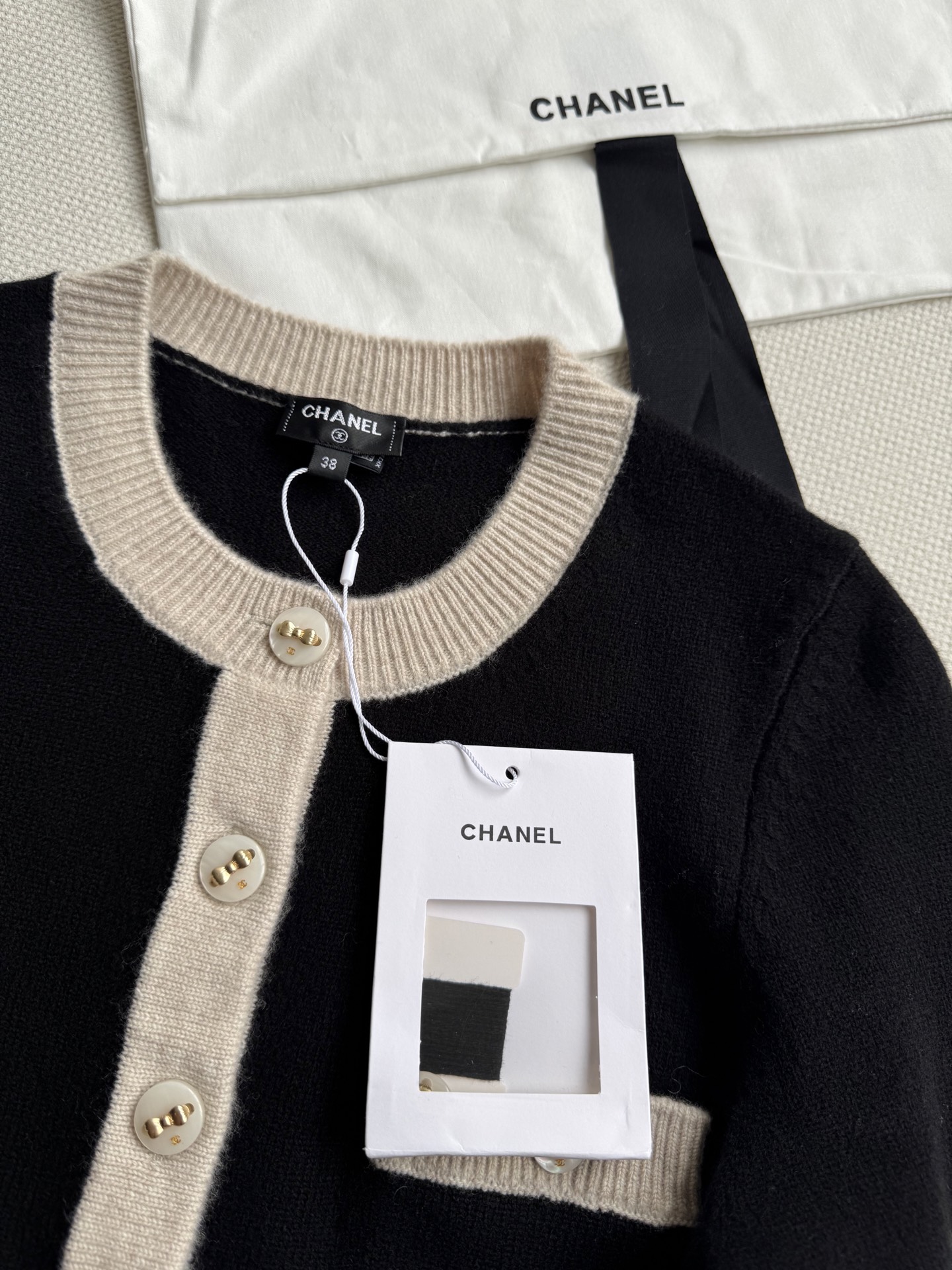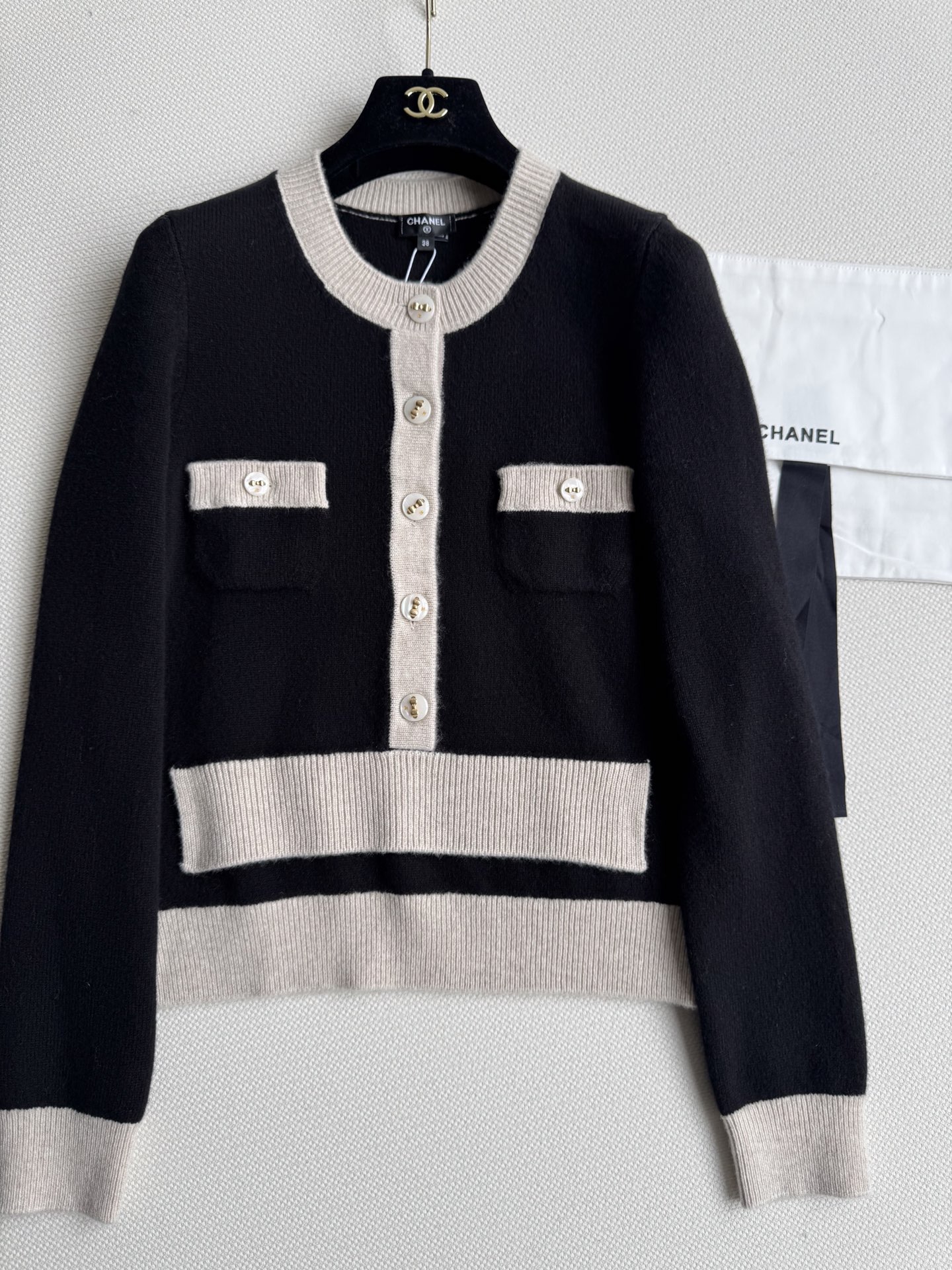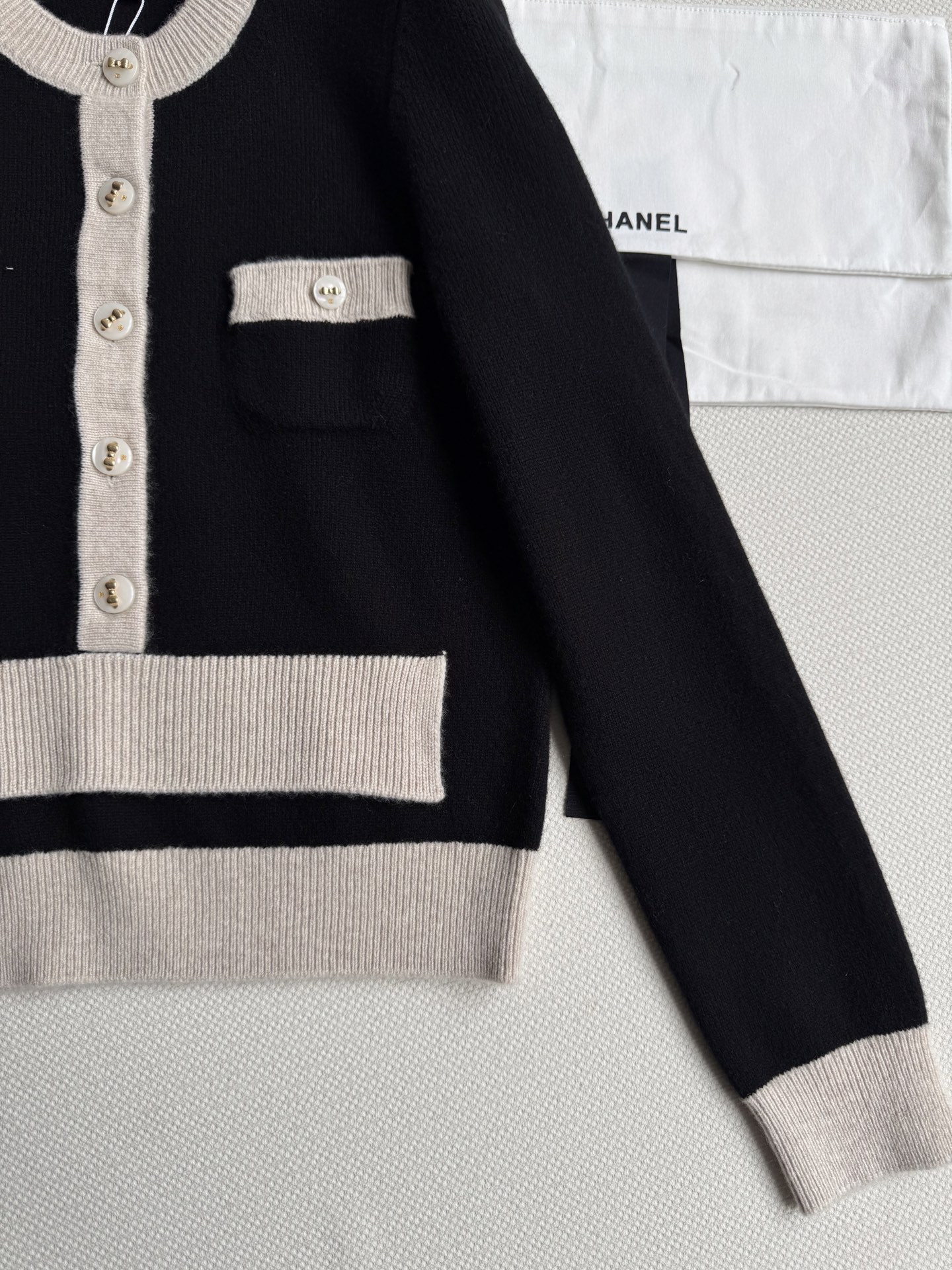 這款衣服是AAAAA 1:1 質量(非常棒). 使用了和原版一模一樣的材料. 商標部分也保持了和香奈兒/Chanel一樣. 圖片拍攝是實物衣服拍攝, 您所收到的實物保證和我們圖片一模一樣.