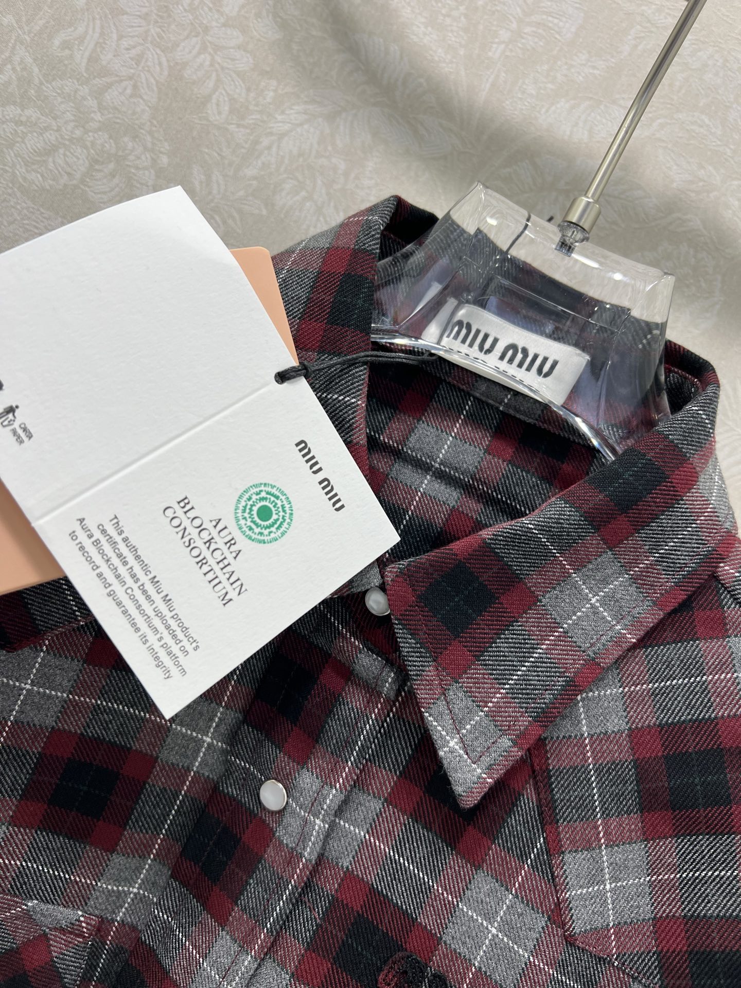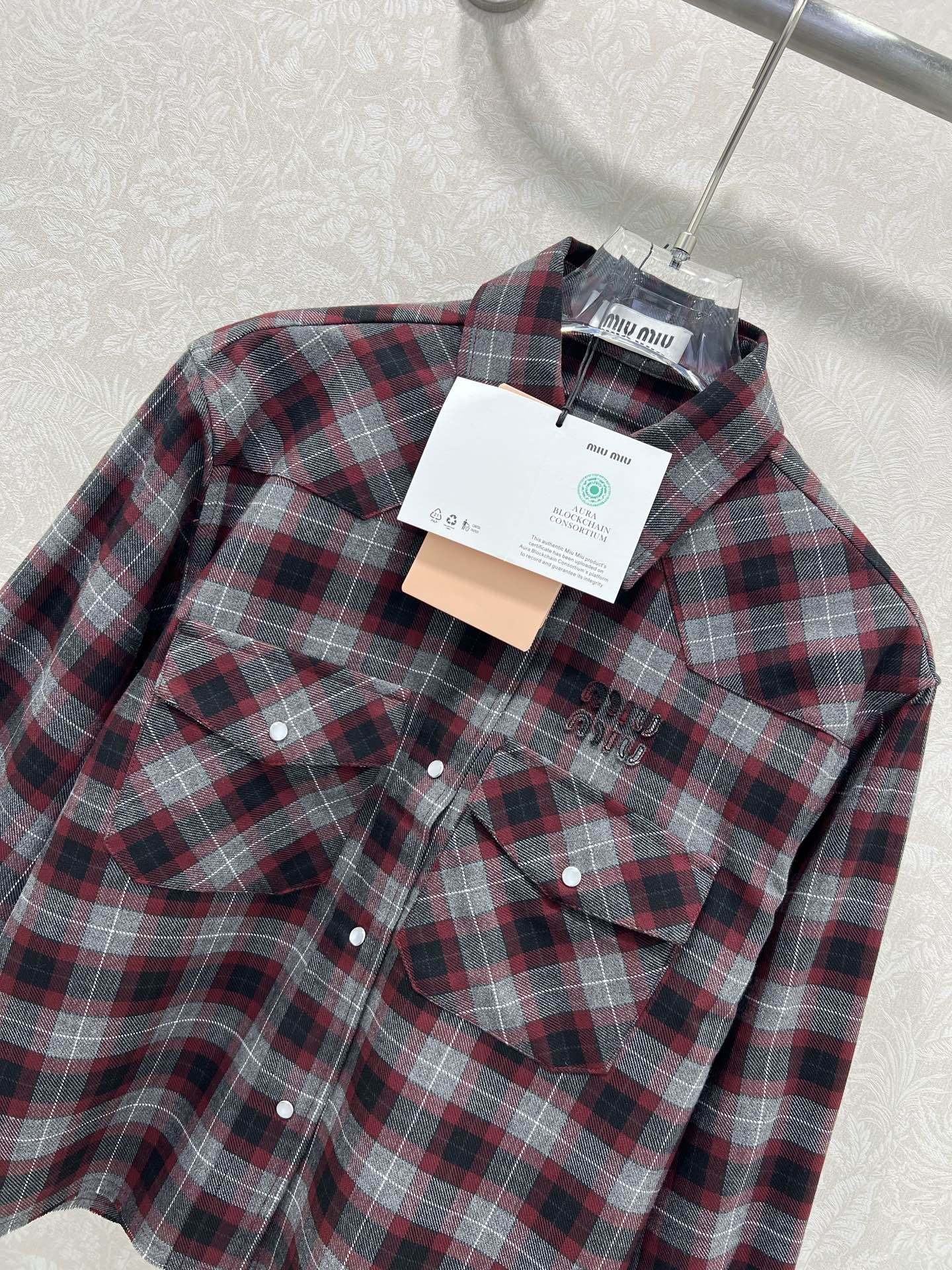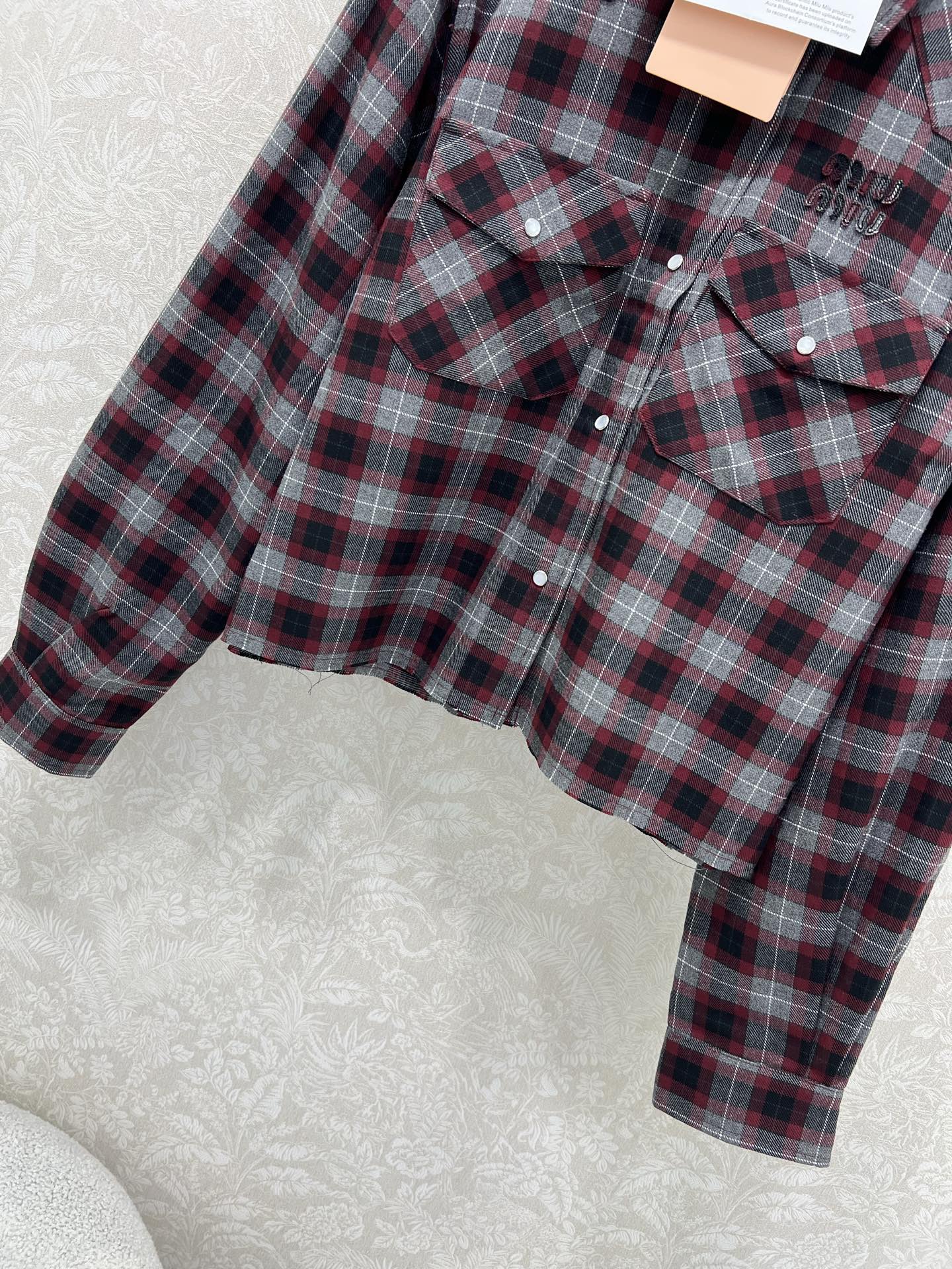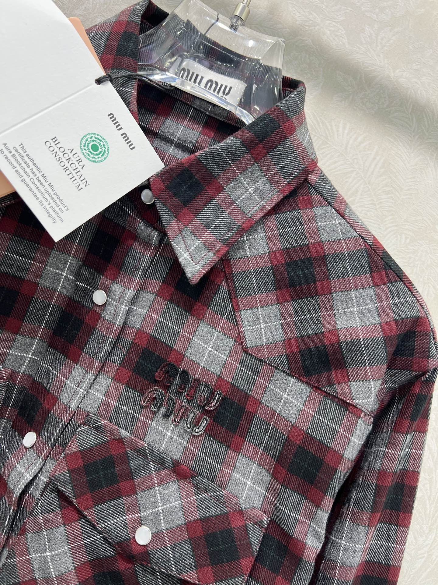 這款衣服是AAAAA 1:1 質量(非常棒). 使用了和原版一模一樣的材料. 商標部分也保持了和繆繆/Miu Miu一樣. 圖片拍攝是實物衣服拍攝, 您所收到的實物保證和我們圖片一模一樣.
