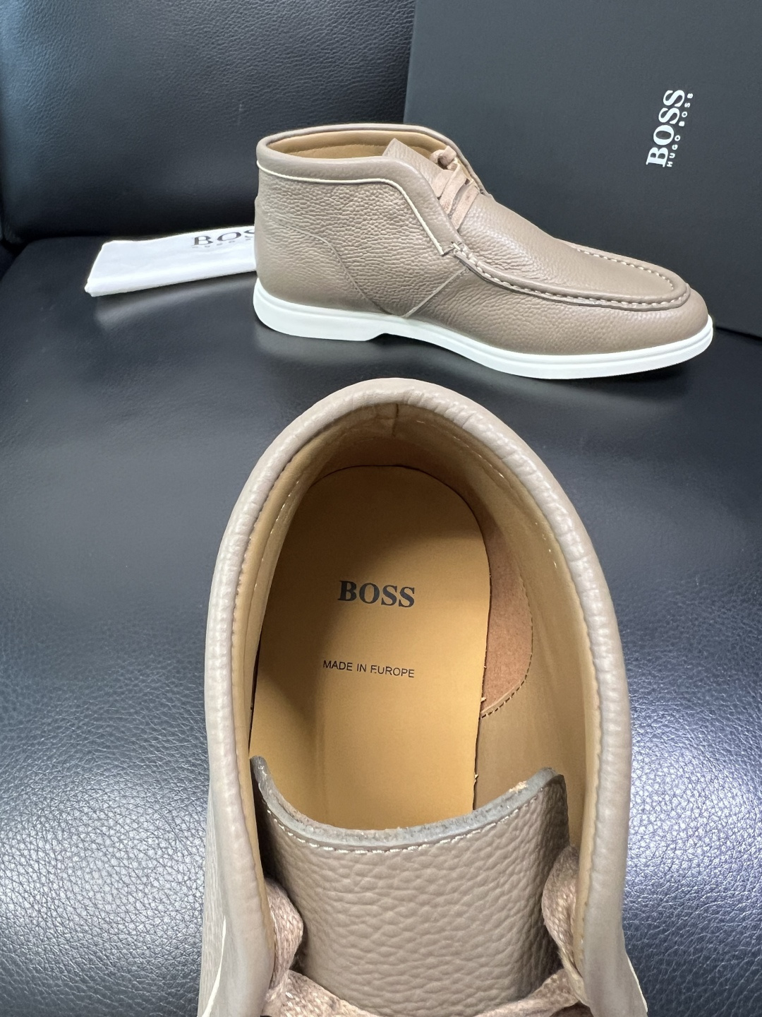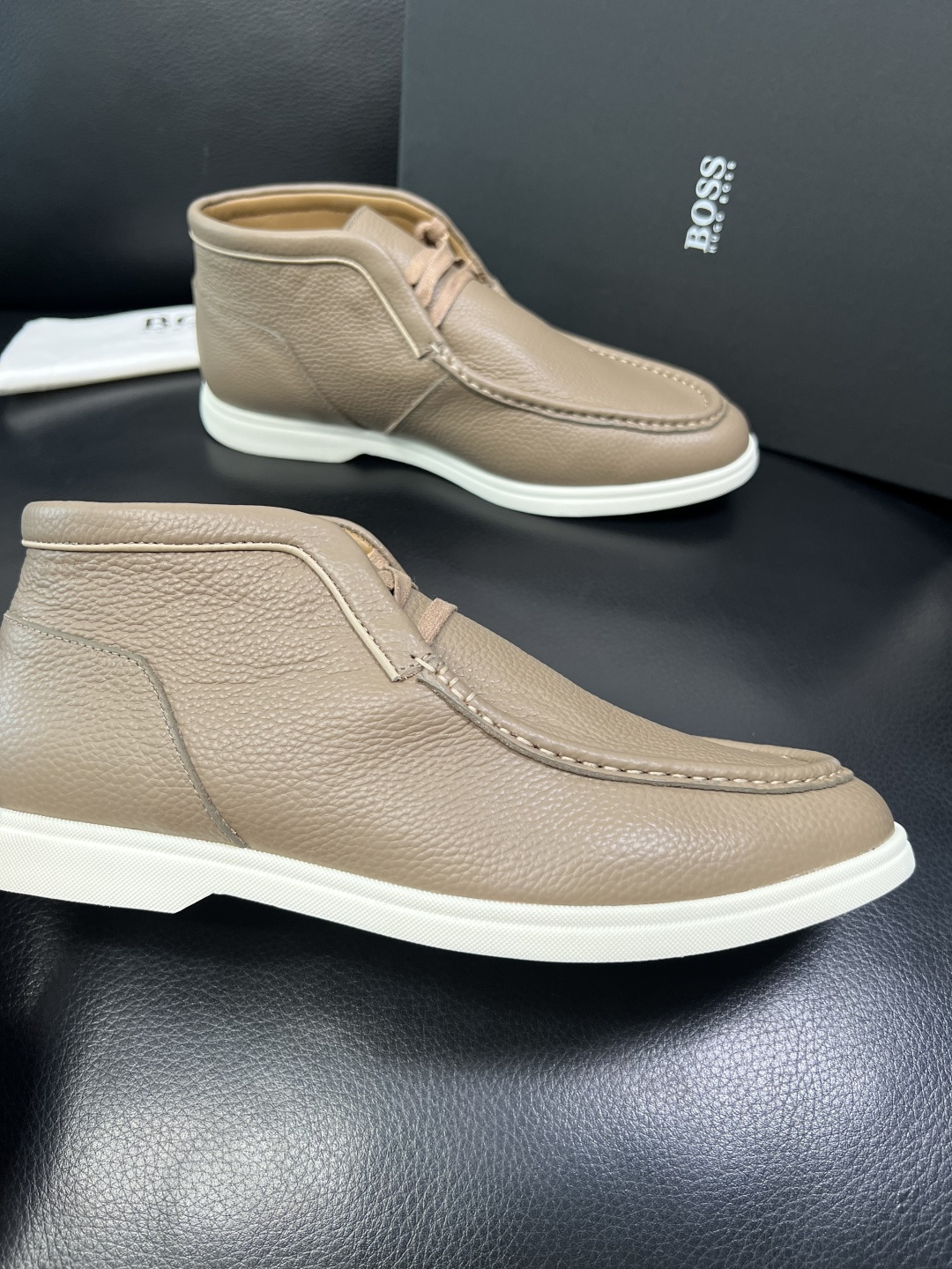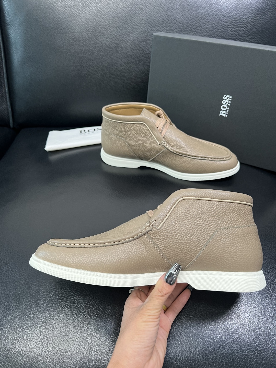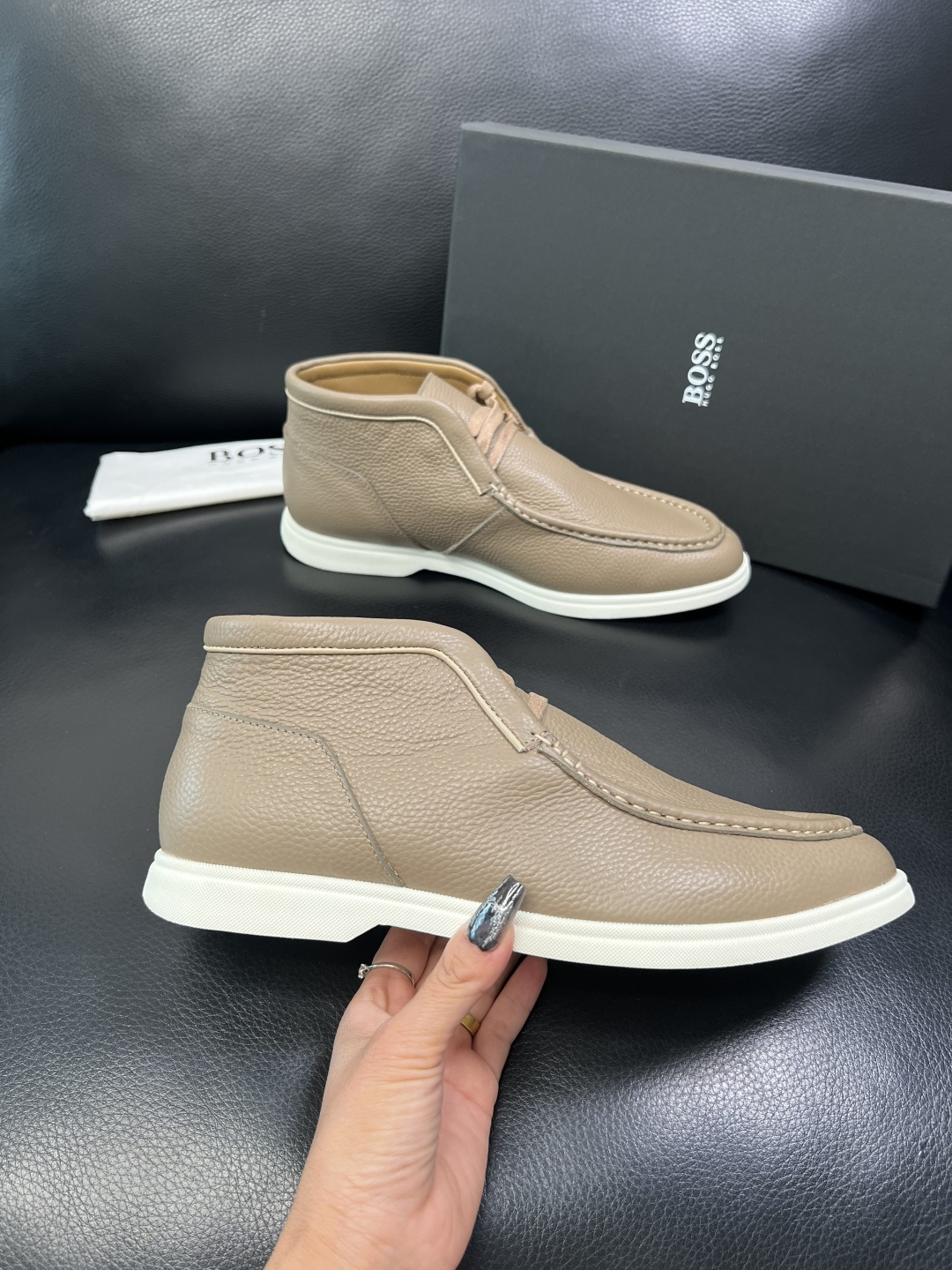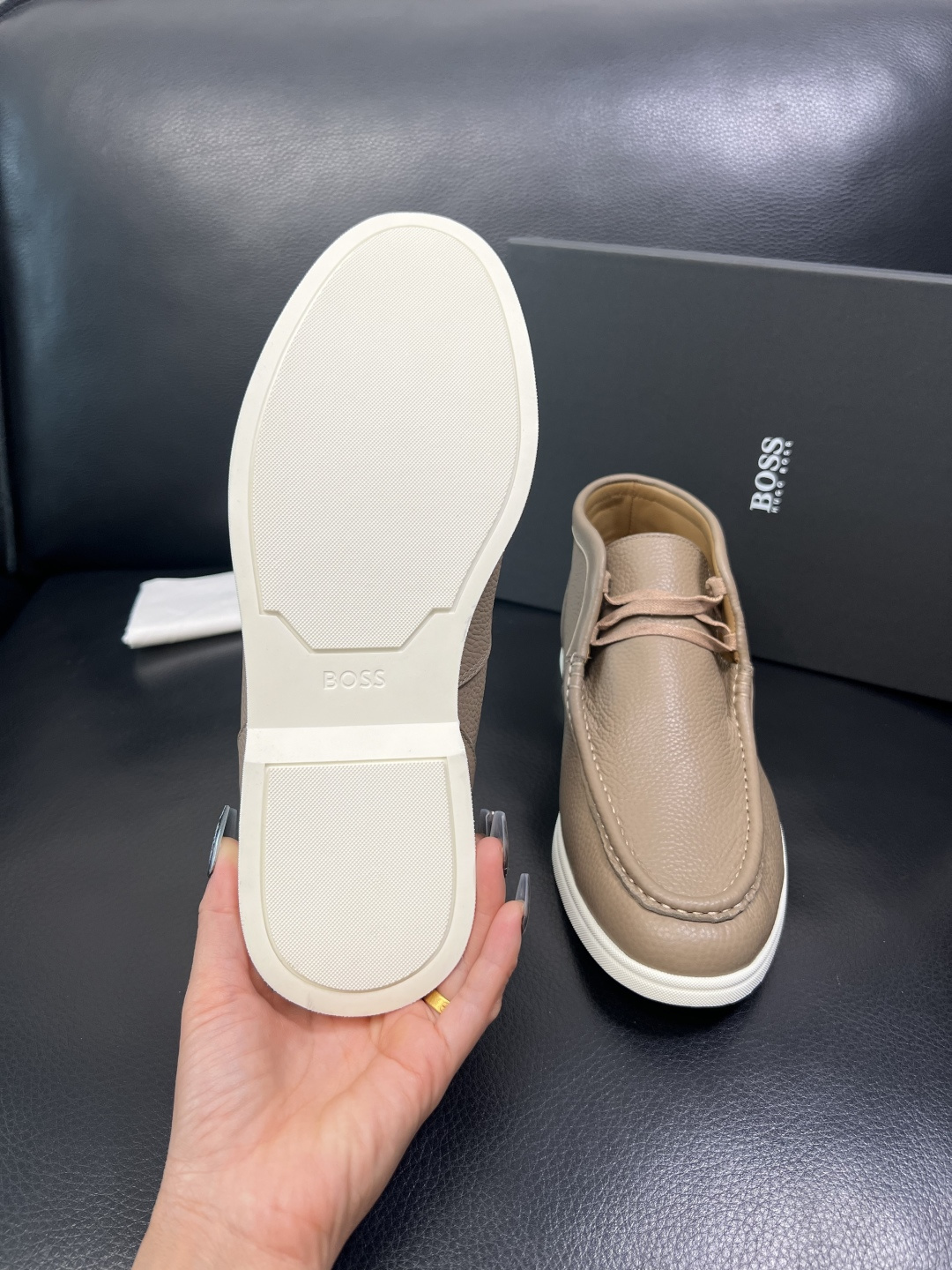 這款鞋子是AAAAA 1:1 質量(非常棒). 使用了和原版一模一樣的材料. 商標部分也保持了和BOSS一樣. 圖片拍攝是實物鞋子拍攝, 您所收到的實物保證和我們圖片一模一樣.