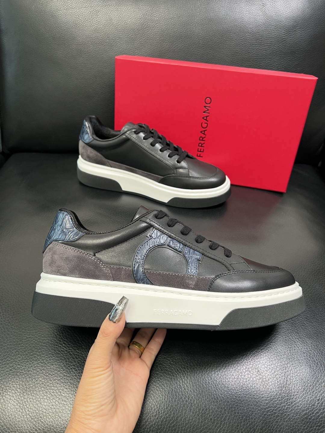 這款鞋子是AAAAA 1:1 質量(非常棒). 使用了和原版一模一樣的材料. 商標部分也保持了和菲拉格慕/Salvatore Ferragamo一樣. 圖片拍攝是實物鞋子拍攝, 您所收到的實物保證和我們圖片一模一樣.