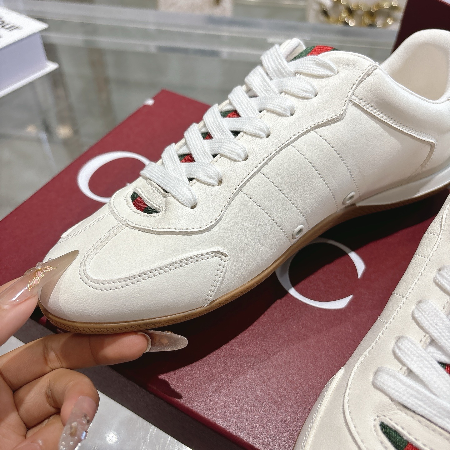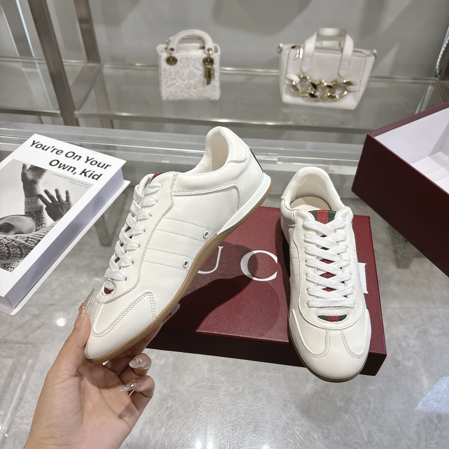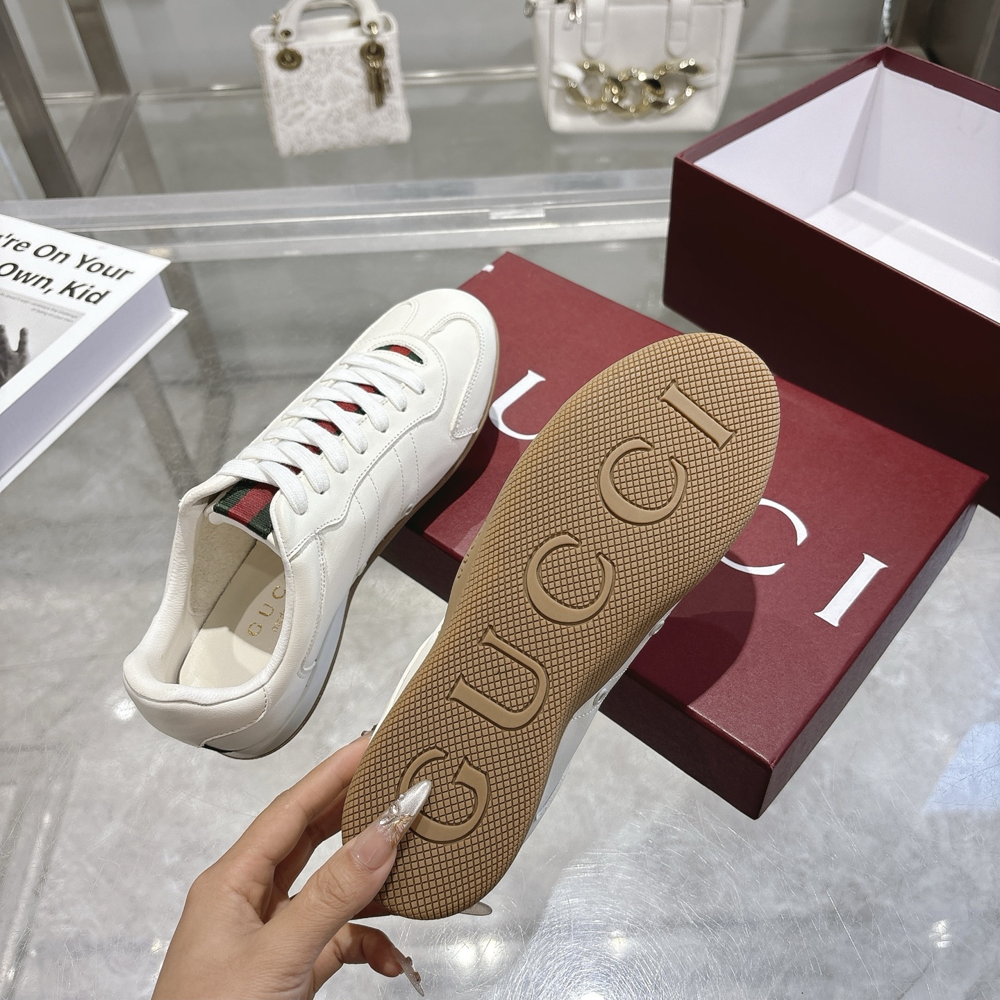 這款鞋子是AAAAA 1:1 質量(非常棒). 使用了和原版一模一樣的材料. 商標部分也保持了和古奇/Gucci一樣. 圖片拍攝是實物鞋子拍攝, 您所收到的實物保證和我們圖片一模一樣.