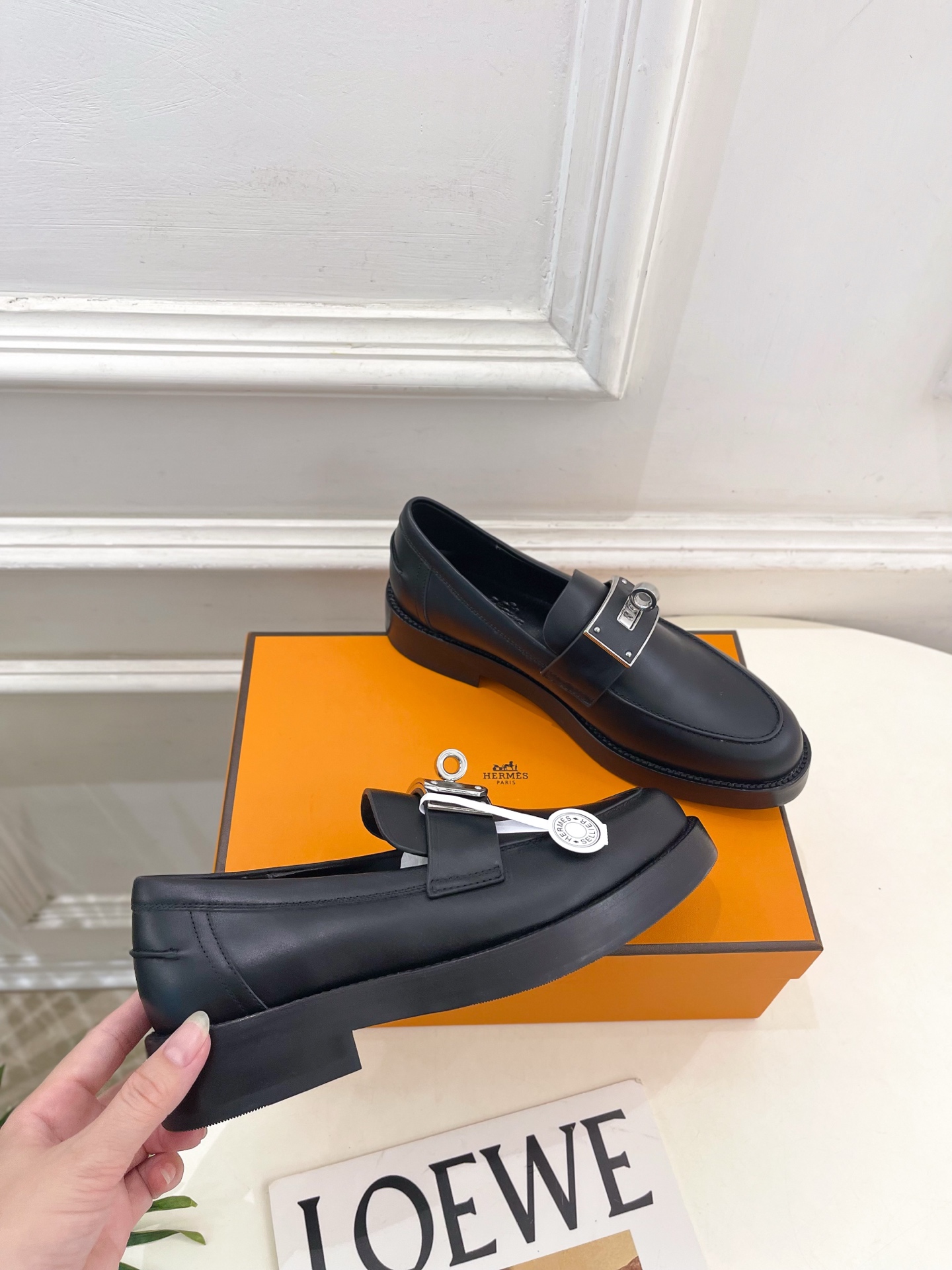 這款鞋子是AAAAA 1:1 質量(非常棒). 使用了和原版一模一樣的材料. 商標部分也保持了和愛馬仕/Hermes一樣. 圖片拍攝是實物鞋子拍攝, 您所收到的實物保證和我們圖片一模一樣.