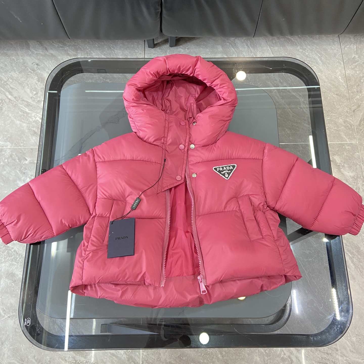 這款children's clothes是AAAAA 1:1 質量(非常棒). 使用了和原版一模一樣的材料. 商標部分也保持了和普拉達/Prada一樣. 圖片拍攝是實物children's clothes拍攝, 您所收到的實物保證和我們圖片一模一樣.