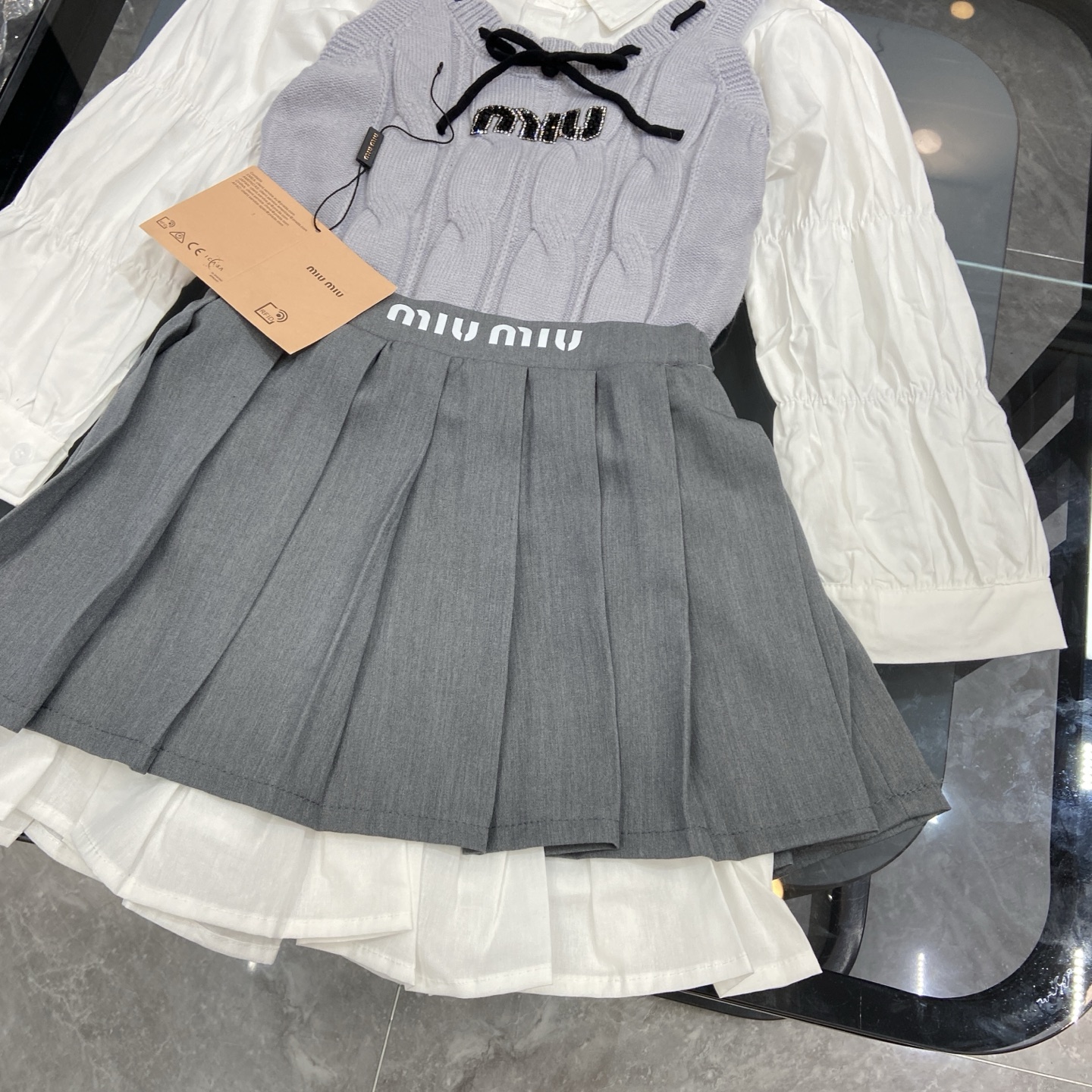 這款children's clothes是AAAAA 1:1 質量(非常棒). 使用了和原版一模一樣的材料. 商標部分也保持了和繆繆/Miu Miu一樣. 圖片拍攝是實物children's clothes拍攝, 您所收到的實物保證和我們圖片一模一樣.