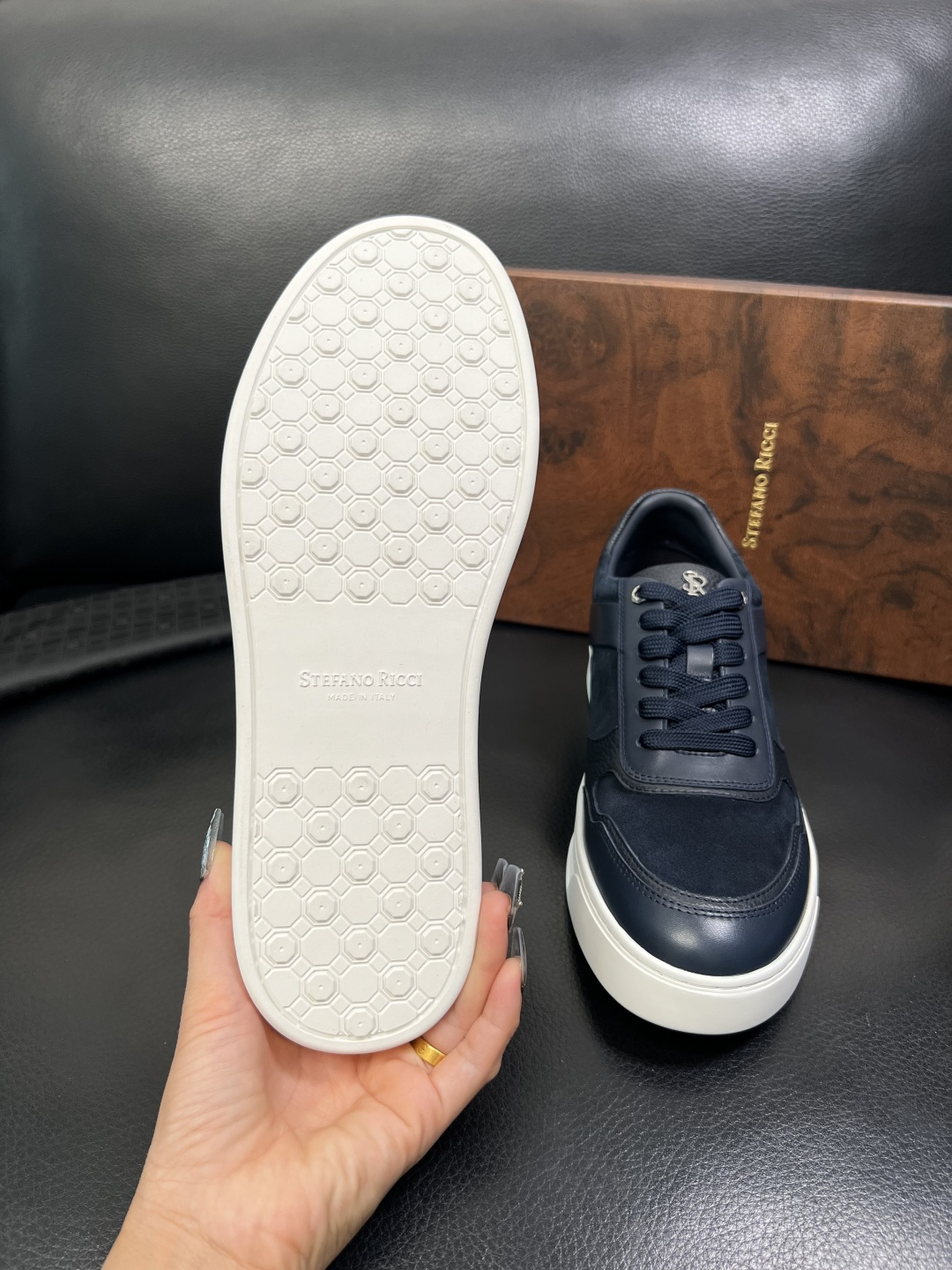 這款鞋子是AAAAA 1:1 質量(非常棒). 使用了和原版一模一樣的材料. 商標部分也保持了和Stefano Ricci一樣. 圖片拍攝是實物鞋子拍攝, 您所收到的實物保證和我們圖片一模一樣.