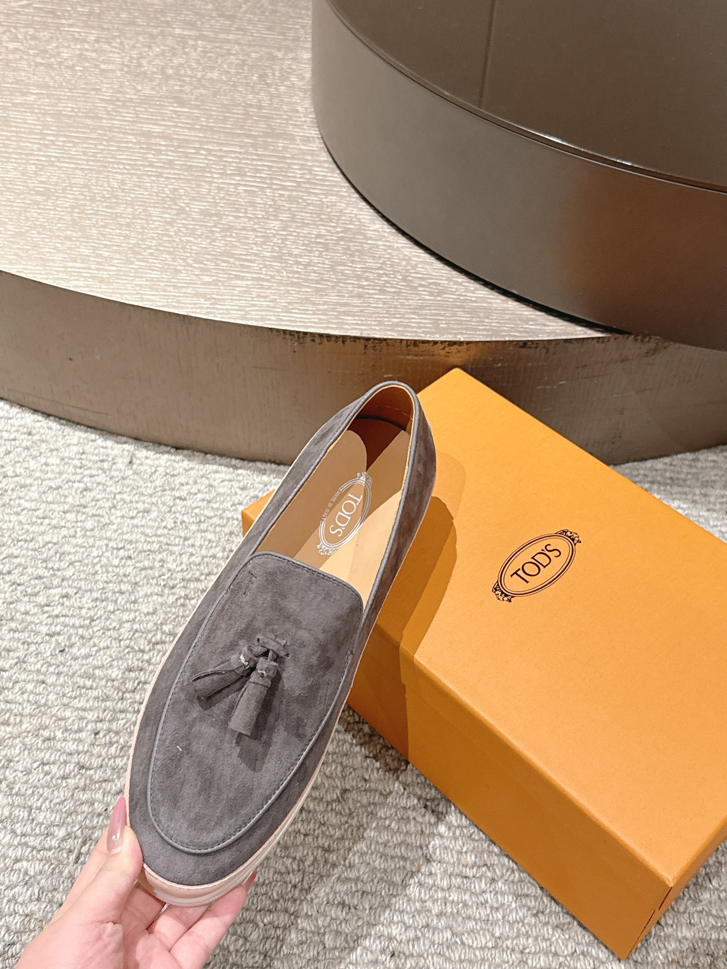 這款鞋子是AAAAA 1:1 質量(非常棒). 使用了和原版一模一樣的材料. 商標部分也保持了和托德的/Tod's一樣. 圖片拍攝是實物鞋子拍攝, 您所收到的實物保證和我們圖片一模一樣.