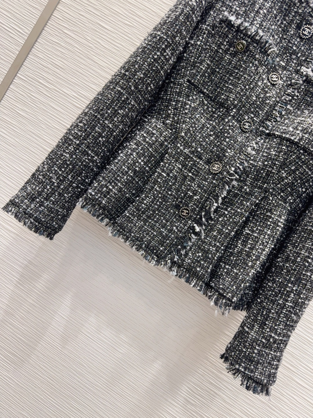 這款衣服是AAAAA 1:1 質量(非常棒). 使用了和原版一模一樣的材料. 商標部分也保持了和香奈兒/Chanel一樣. 圖片拍攝是實物衣服拍攝, 您所收到的實物保證和我們圖片一模一樣.