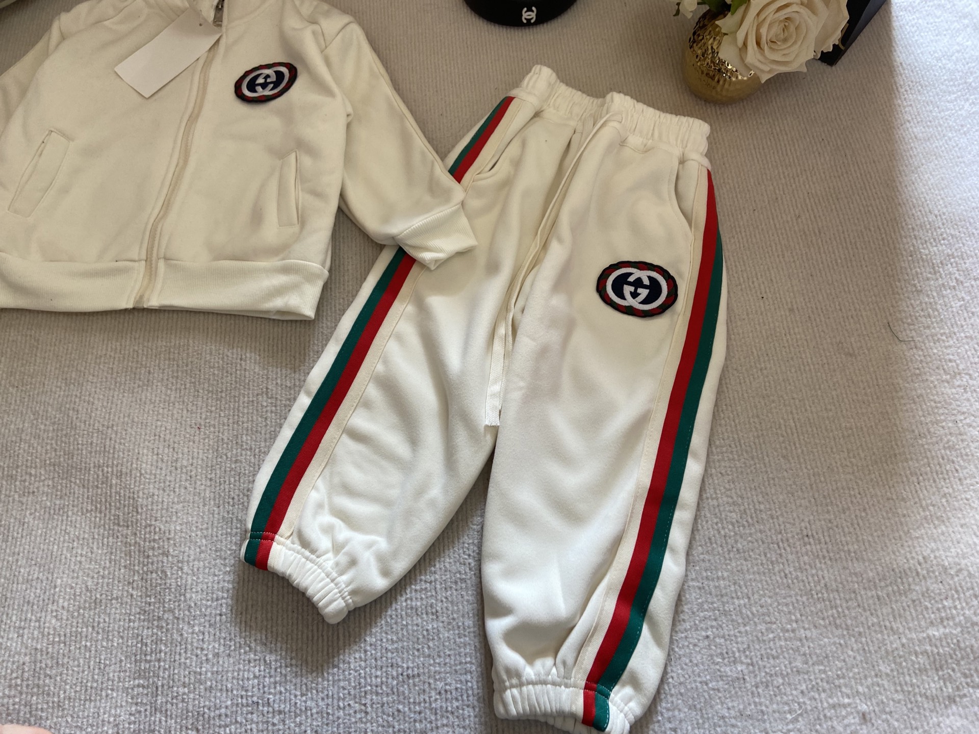 這款children's clothes是AAAAA 1:1 質量(非常棒). 使用了和原版一模一樣的材料. 商標部分也保持了和古奇/Gucci一樣. 圖片拍攝是實物children's clothes拍攝, 您所收到的實物保證和我們圖片一模一樣.