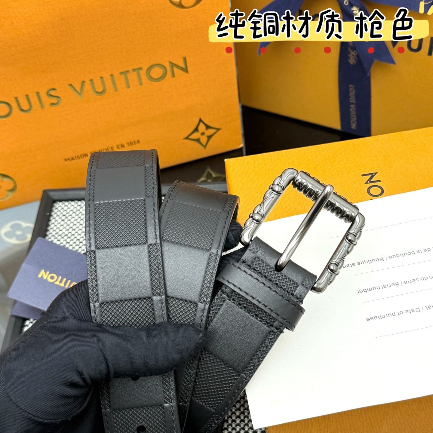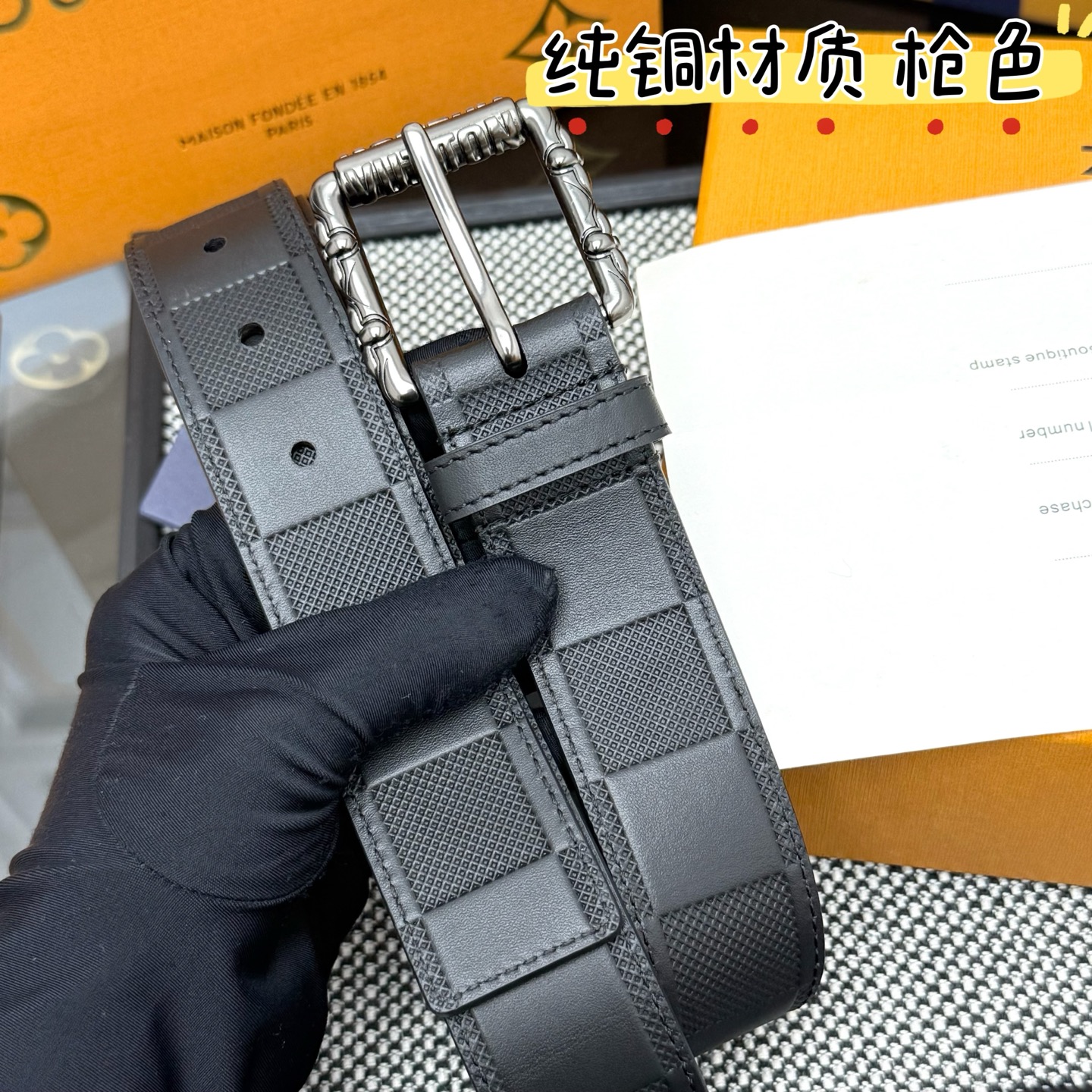 這款皮帶是AAAAA 1:1 質量(非常棒). 使用了和原版一模一樣的材料. 商標部分也保持了和路易威登/Louis Vuitton一樣. 圖片拍攝是實物皮帶拍攝, 您所收到的實物保證和我們圖片一模一樣.