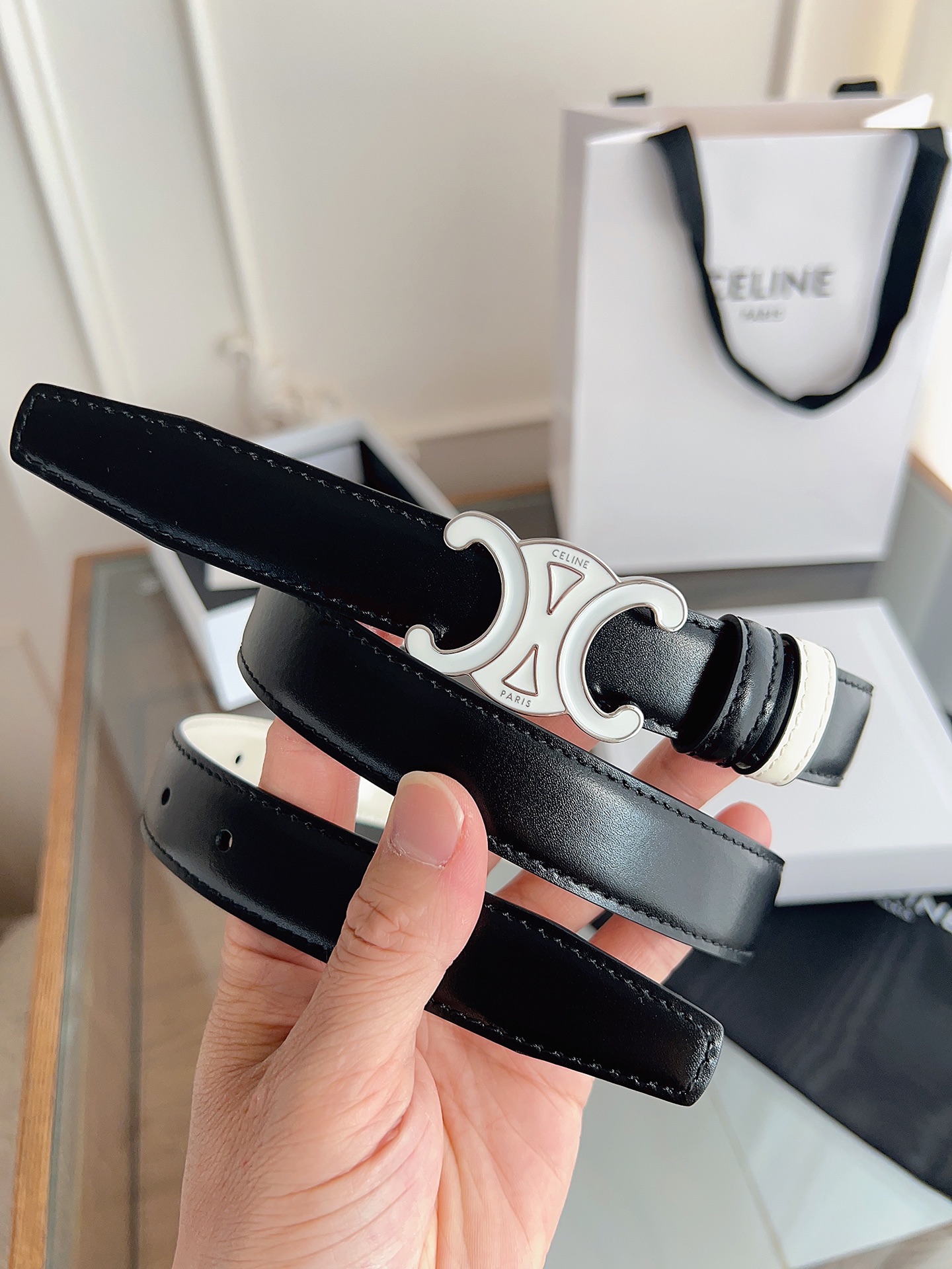 這款皮帶是AAAAA 1:1 質量(非常棒). 使用了和原版一模一樣的材料. 商標部分也保持了和思琳/赛琳/Celine一樣. 圖片拍攝是實物皮帶拍攝, 您所收到的實物保證和我們圖片一模一樣.
