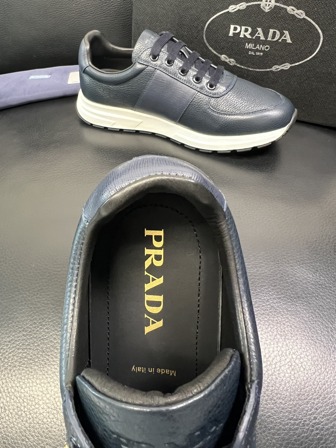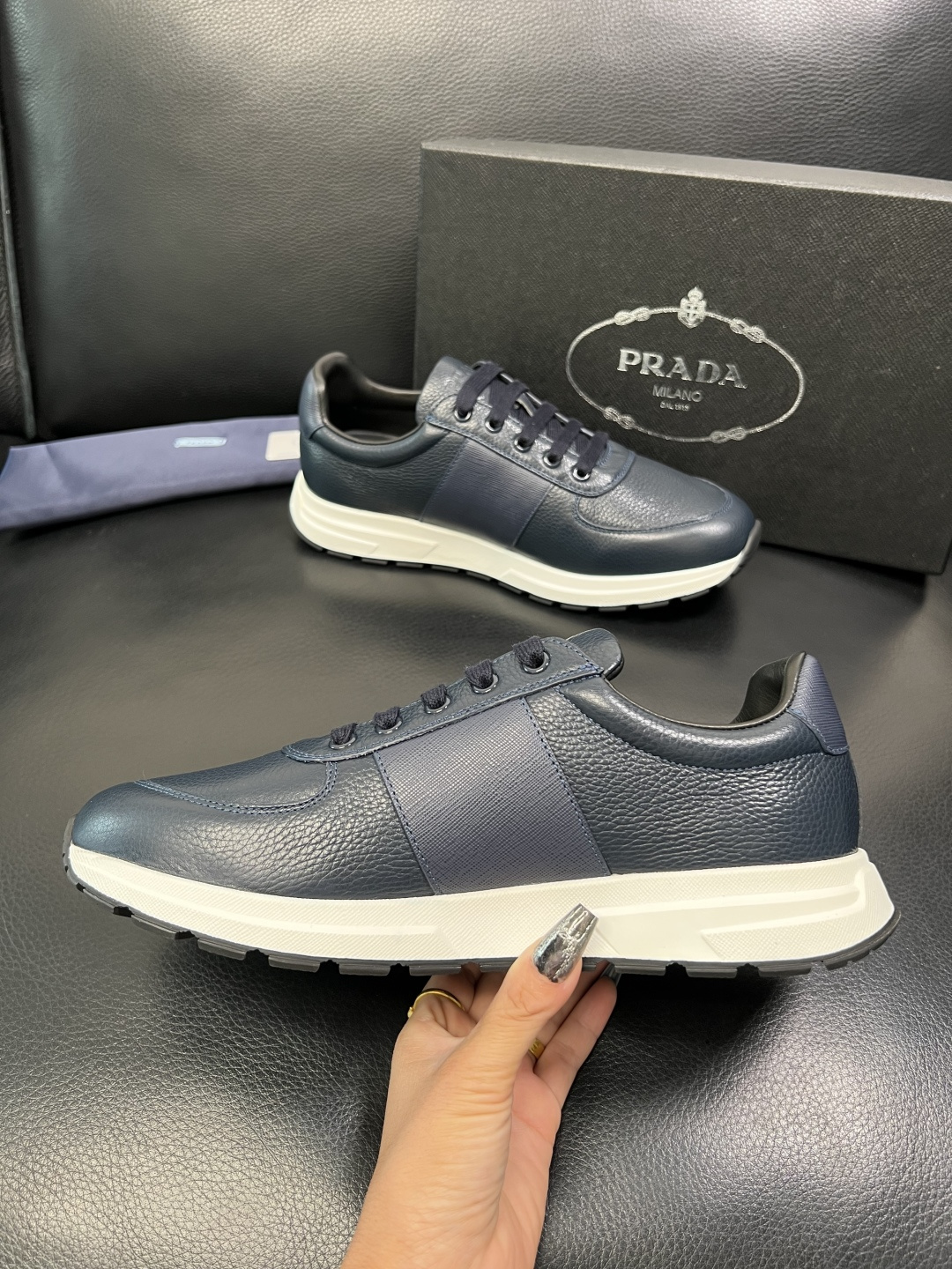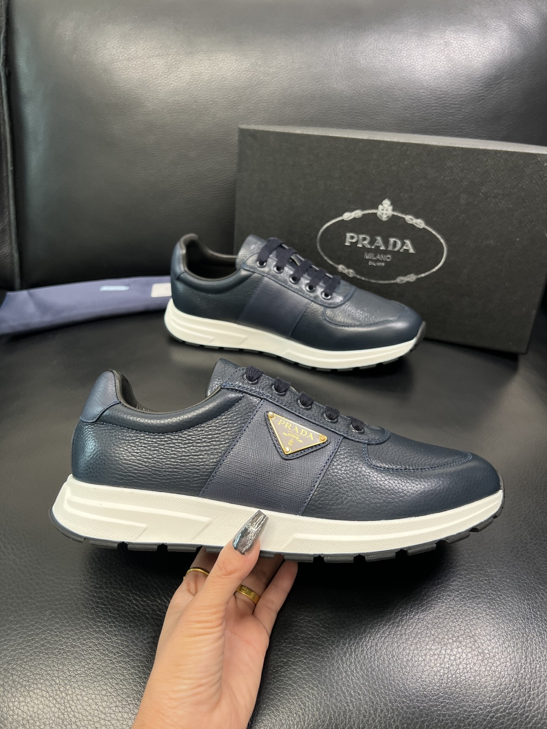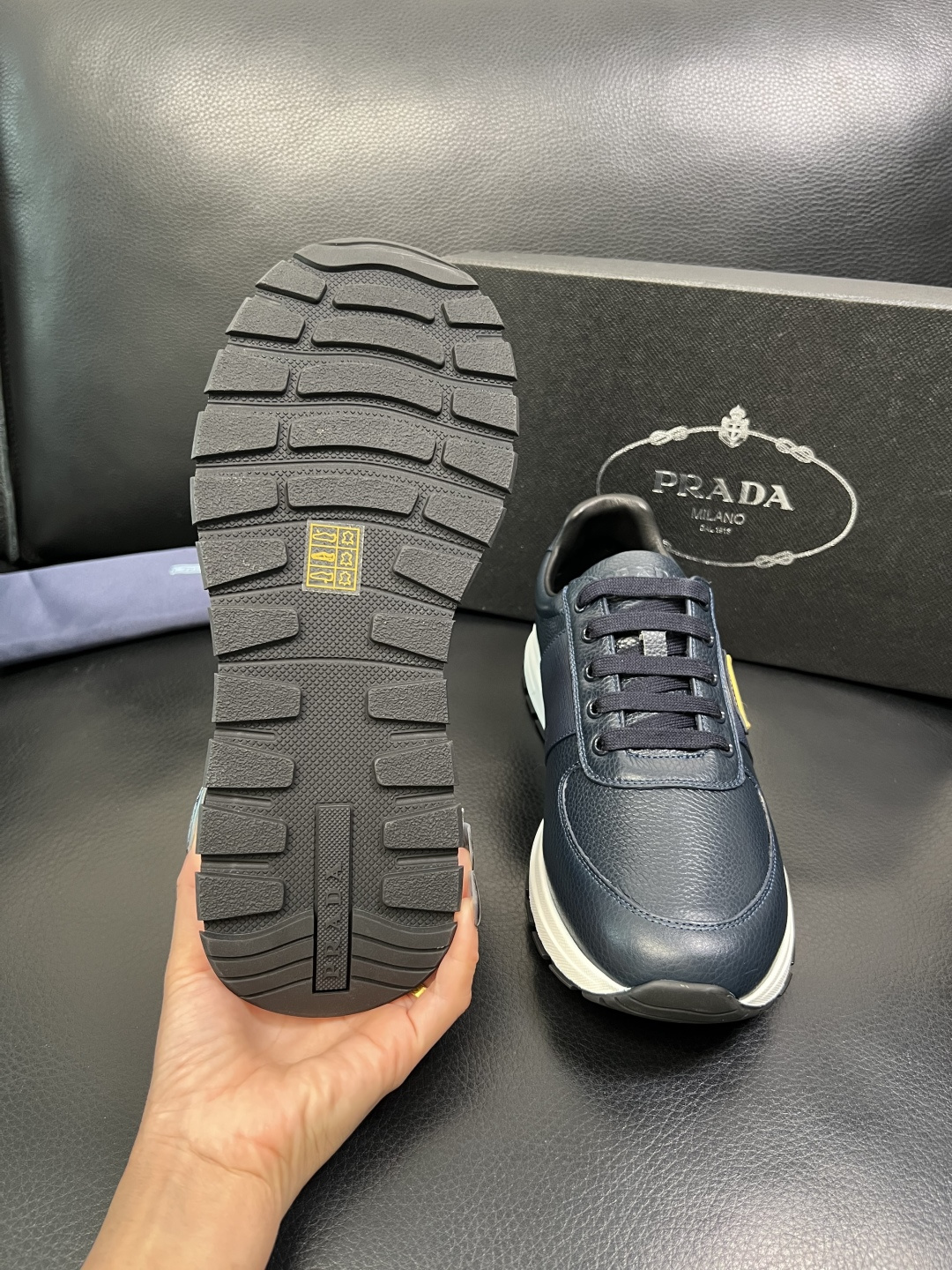 這款鞋子是AAAAA 1:1 質量(非常棒). 使用了和原版一模一樣的材料. 商標部分也保持了和普拉達/Prada一樣. 圖片拍攝是實物鞋子拍攝, 您所收到的實物保證和我們圖片一模一樣.