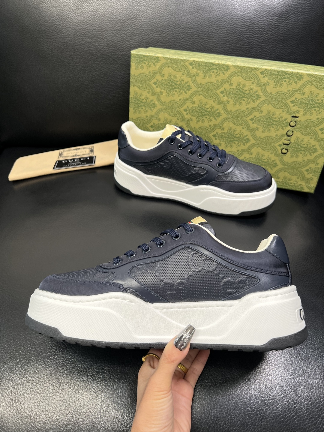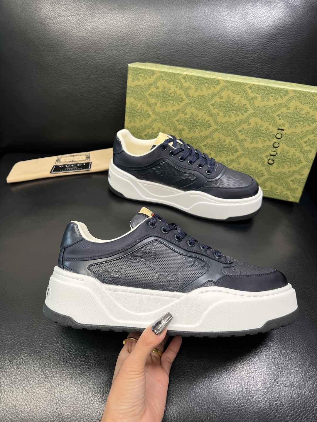 這款鞋子是AAAAA 1:1 質量(非常棒). 使用了和原版一模一樣的材料. 商標部分也保持了和古奇/Gucci一樣. 圖片拍攝是實物鞋子拍攝, 您所收到的實物保證和我們圖片一模一樣.