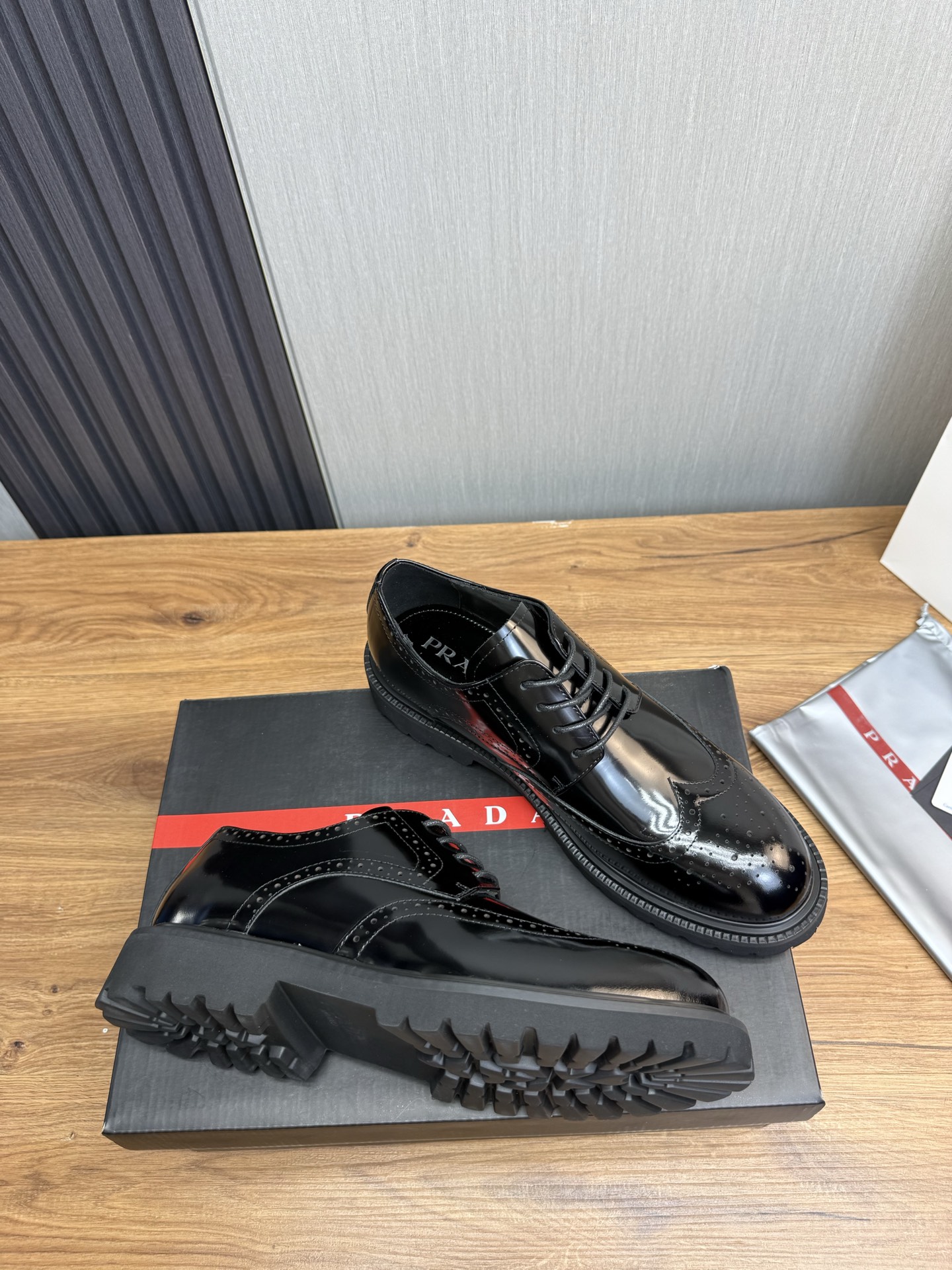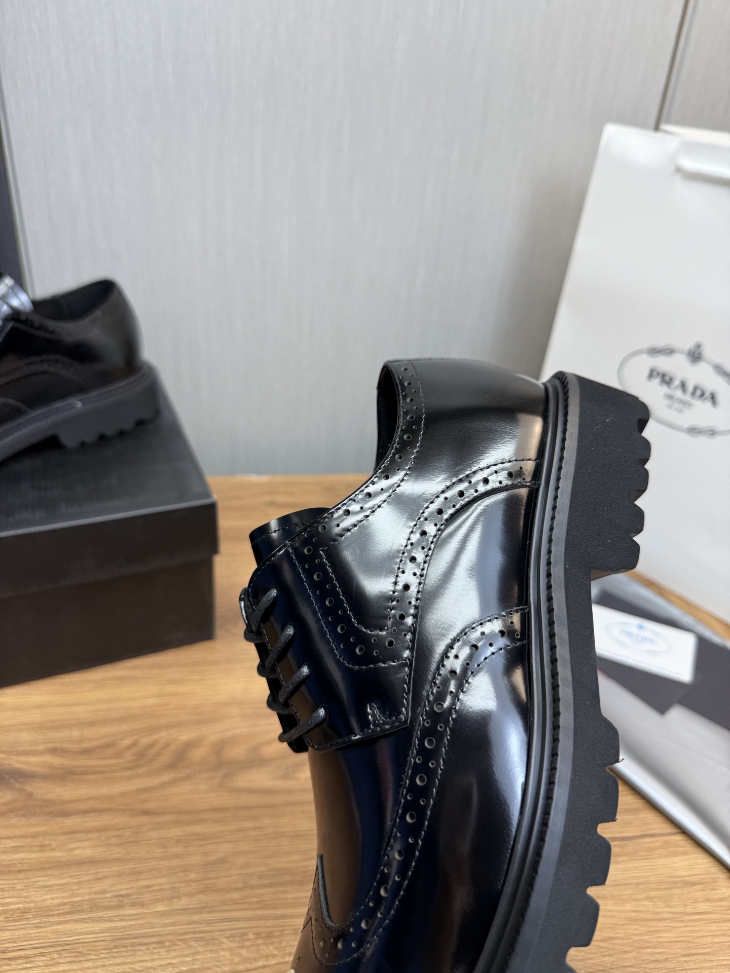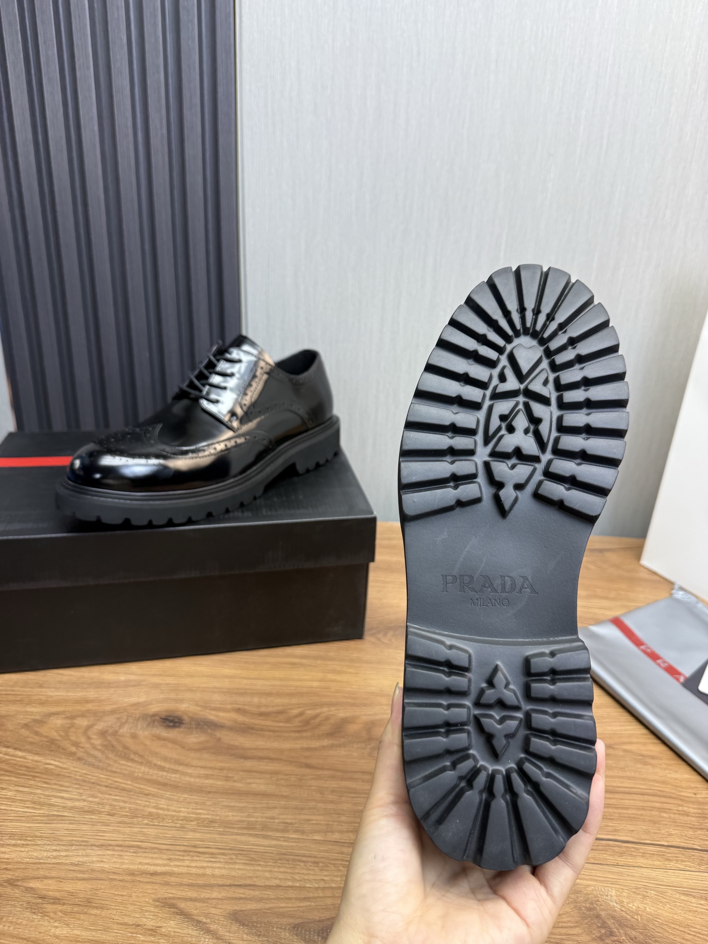 這款鞋子是AAAAA 1:1 質量(非常棒). 使用了和原版一模一樣的材料. 商標部分也保持了和普拉達/Prada一樣. 圖片拍攝是實物鞋子拍攝, 您所收到的實物保證和我們圖片一模一樣.