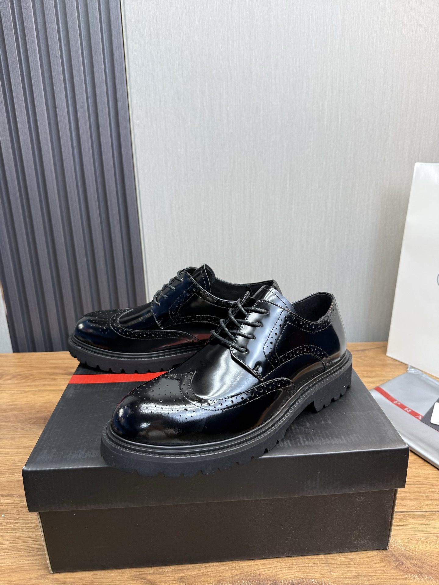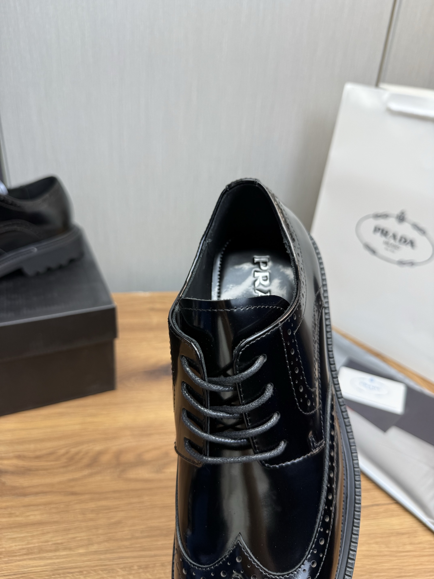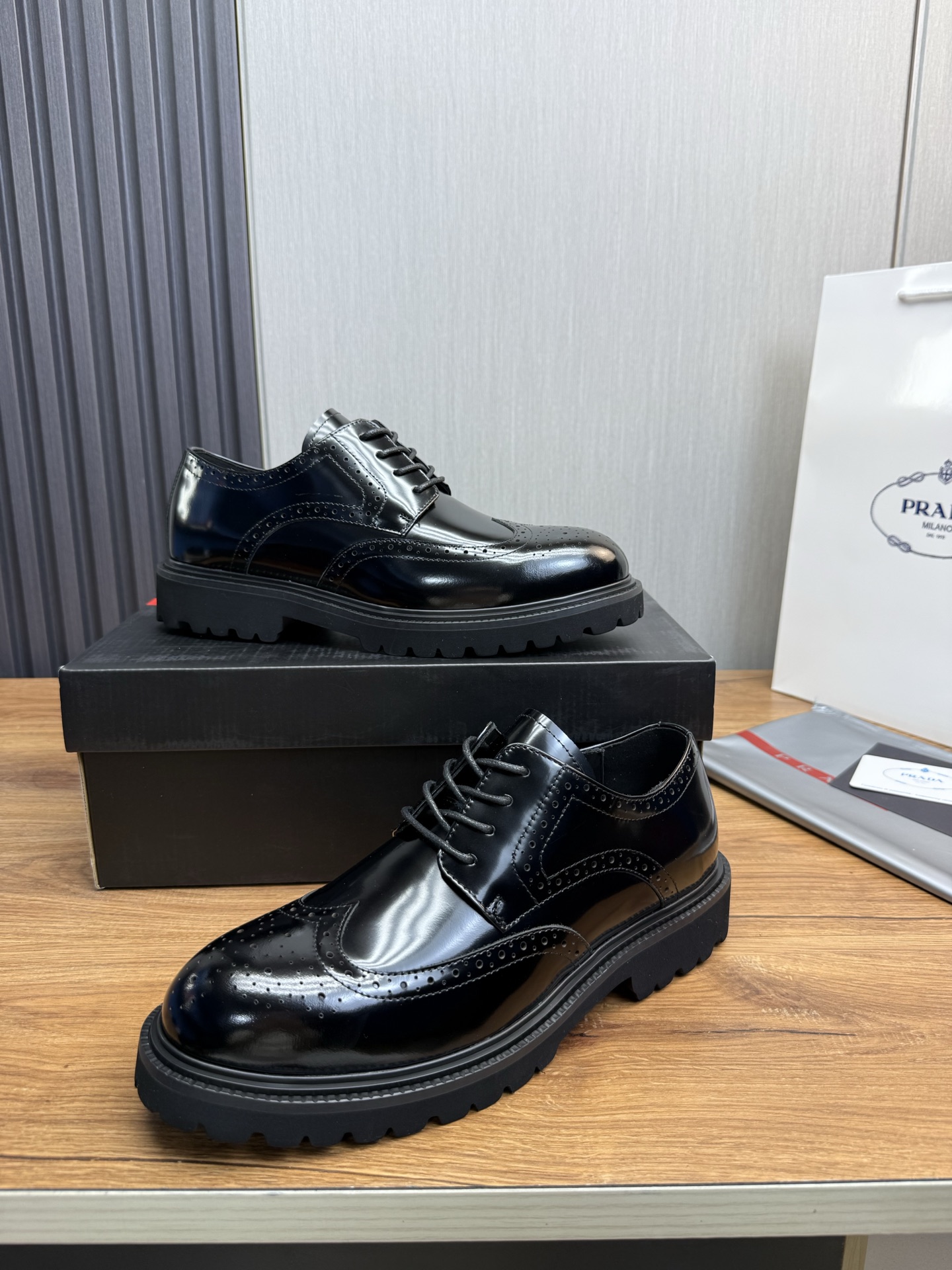 這款鞋子是AAAAA 1:1 質量(非常棒). 使用了和原版一模一樣的材料. 商標部分也保持了和普拉達/Prada一樣. 圖片拍攝是實物鞋子拍攝, 您所收到的實物保證和我們圖片一模一樣.