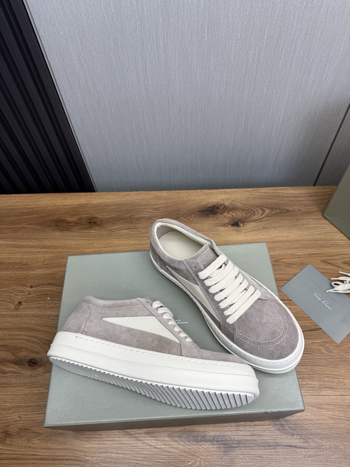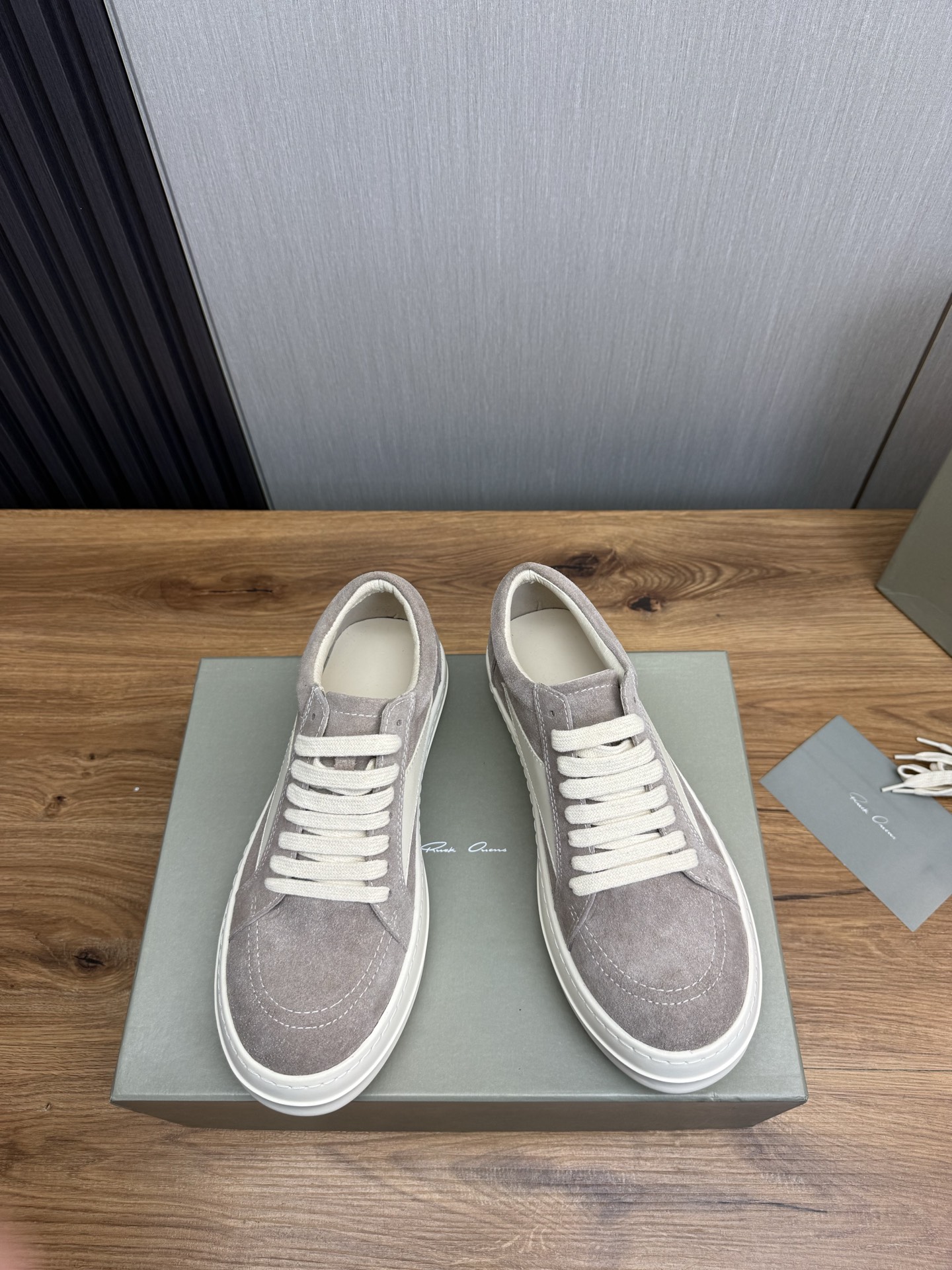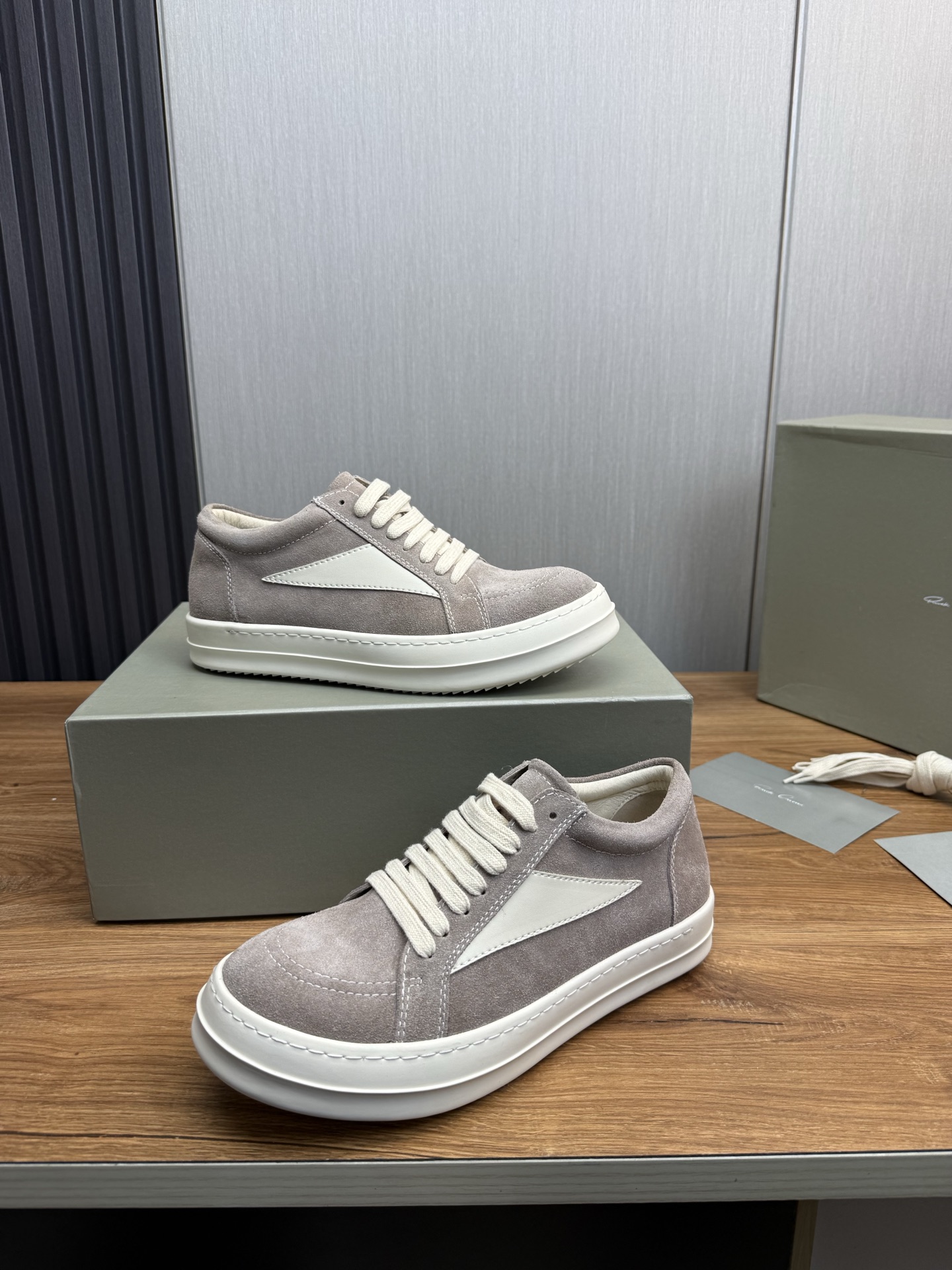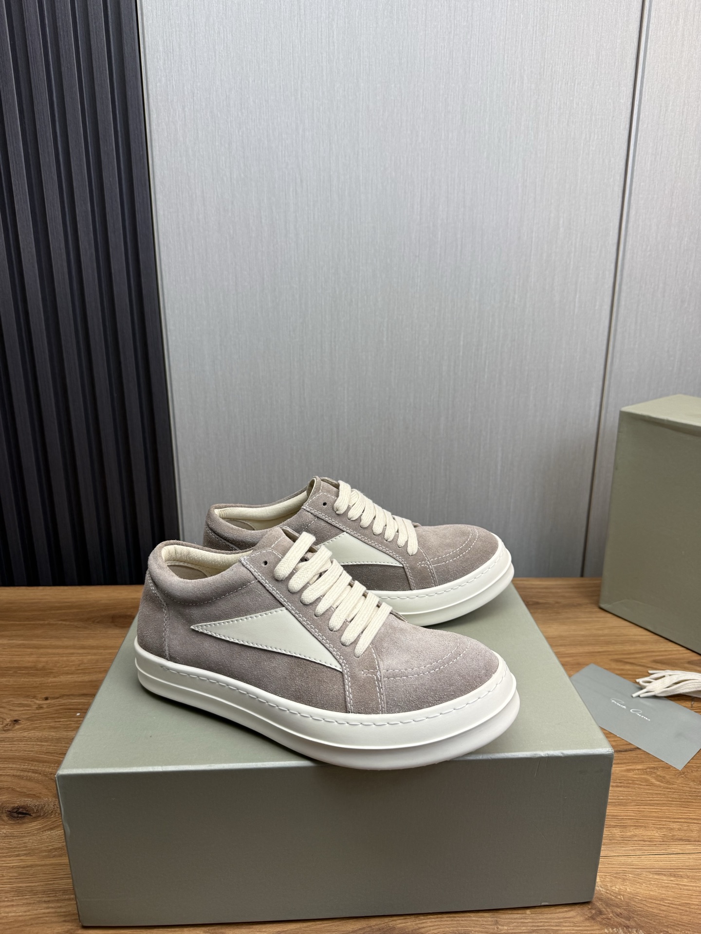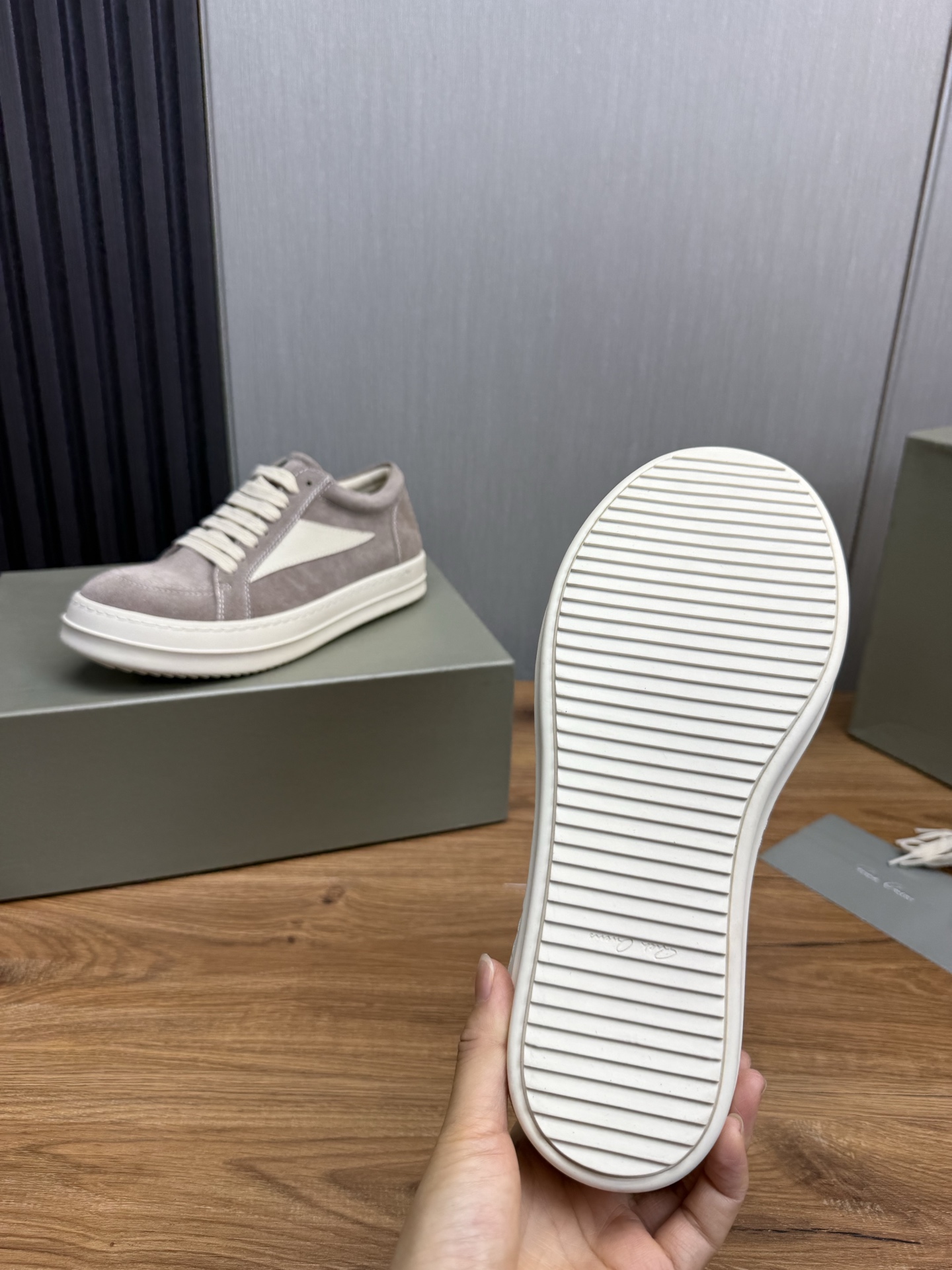 這款鞋子是AAAAA 1:1 質量(非常棒). 使用了和原版一模一樣的材料. 商標部分也保持了和里克·歐文斯/Rick Owens一樣. 圖片拍攝是實物鞋子拍攝, 您所收到的實物保證和我們圖片一模一樣.