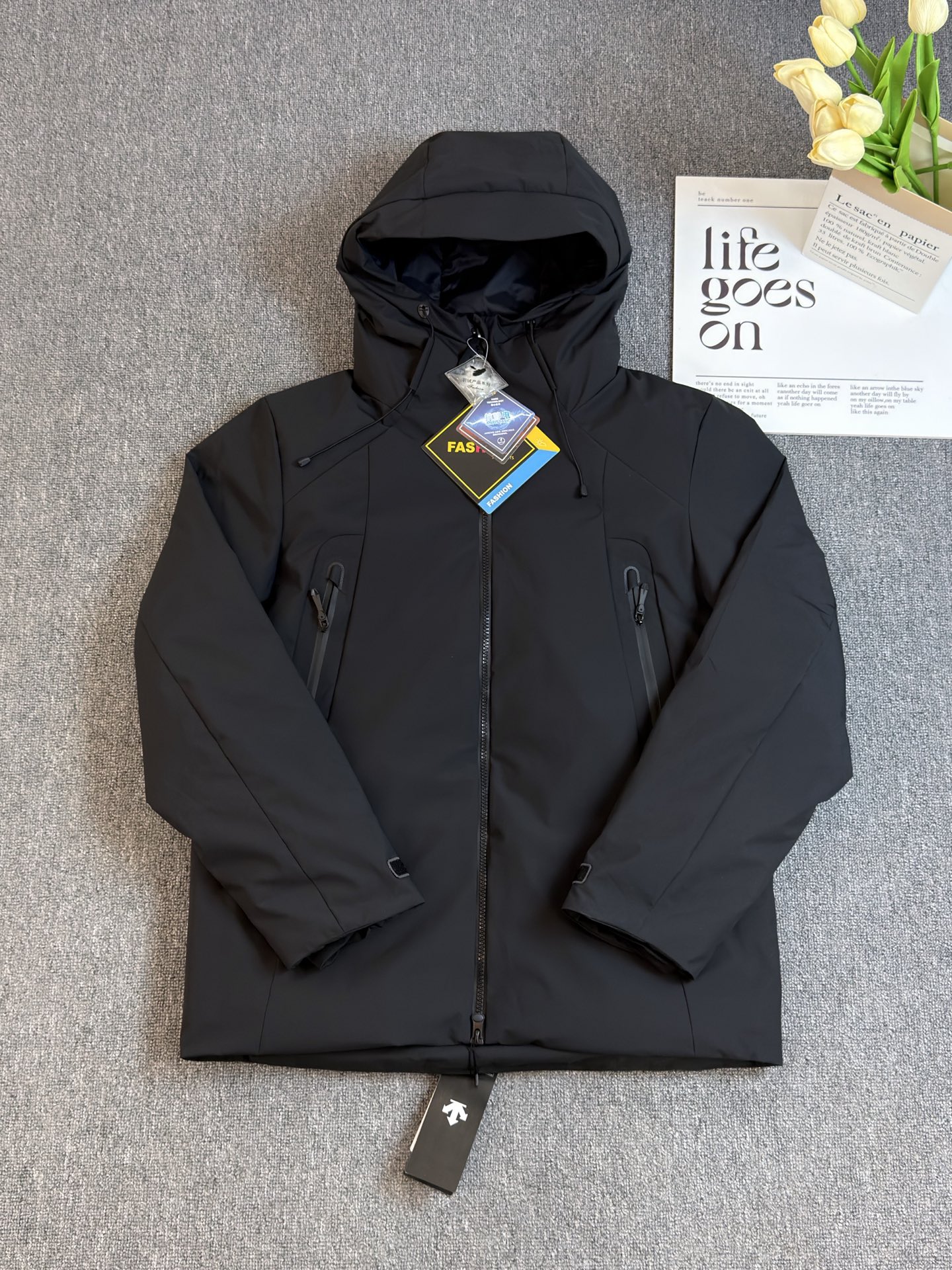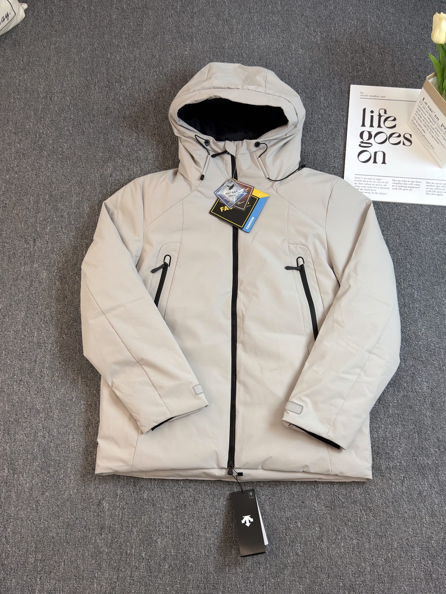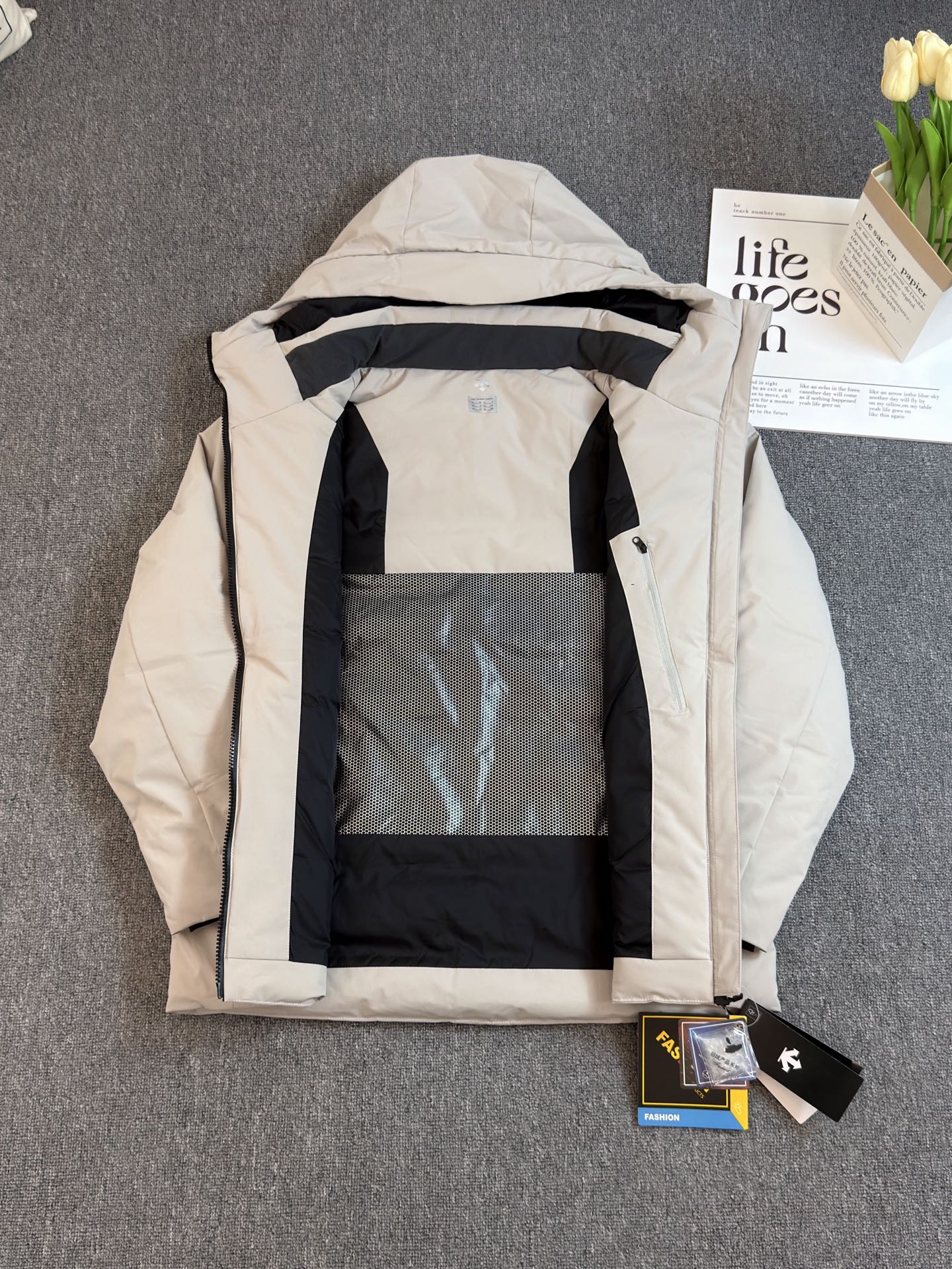 這款衣服是AAAAA 1:1 質量(非常棒). 使用了和原版一模一樣的材料. 商標部分也保持了和Descente一樣. 圖片拍攝是實物衣服拍攝, 您所收到的實物保證和我們圖片一模一樣.