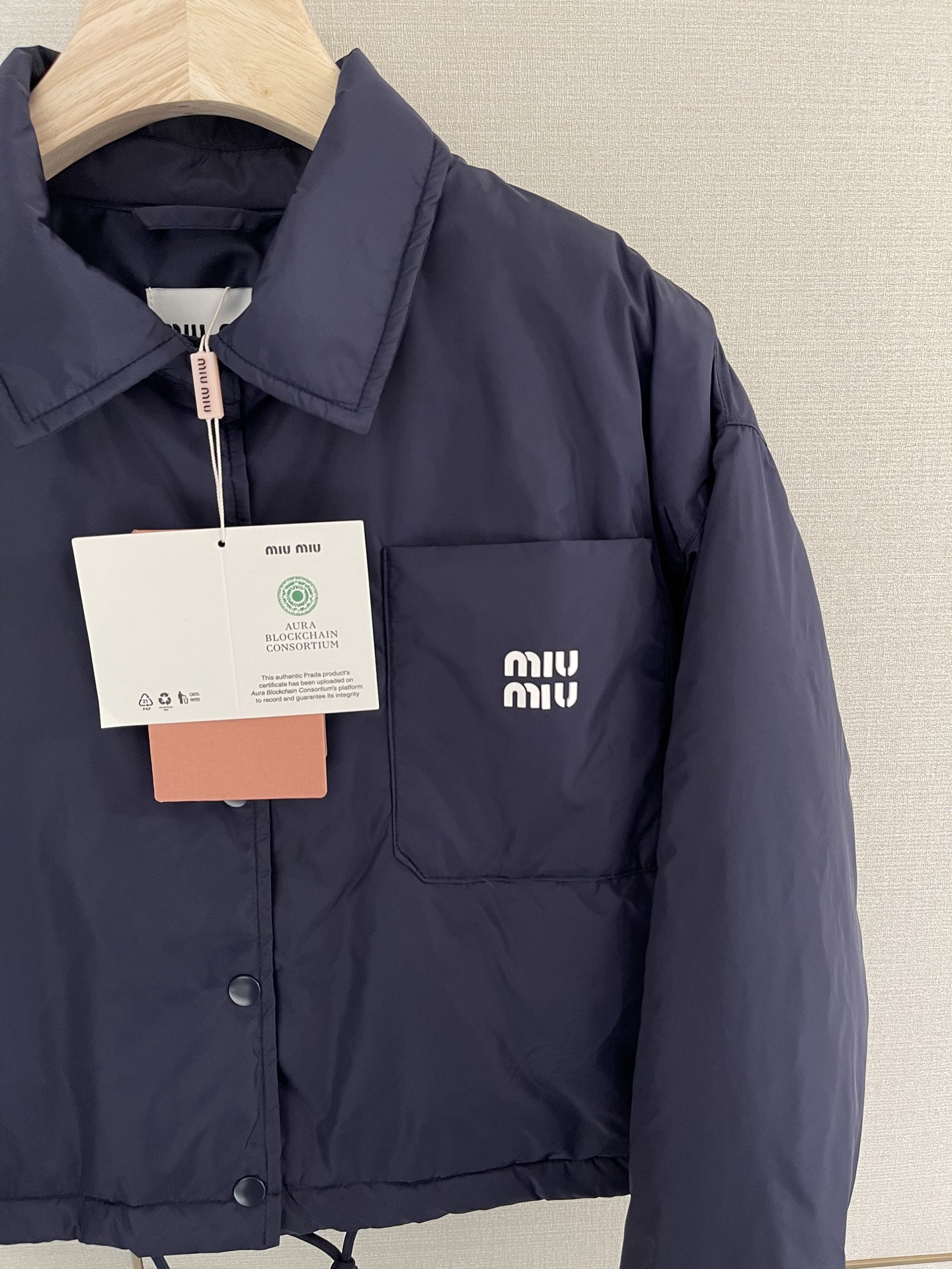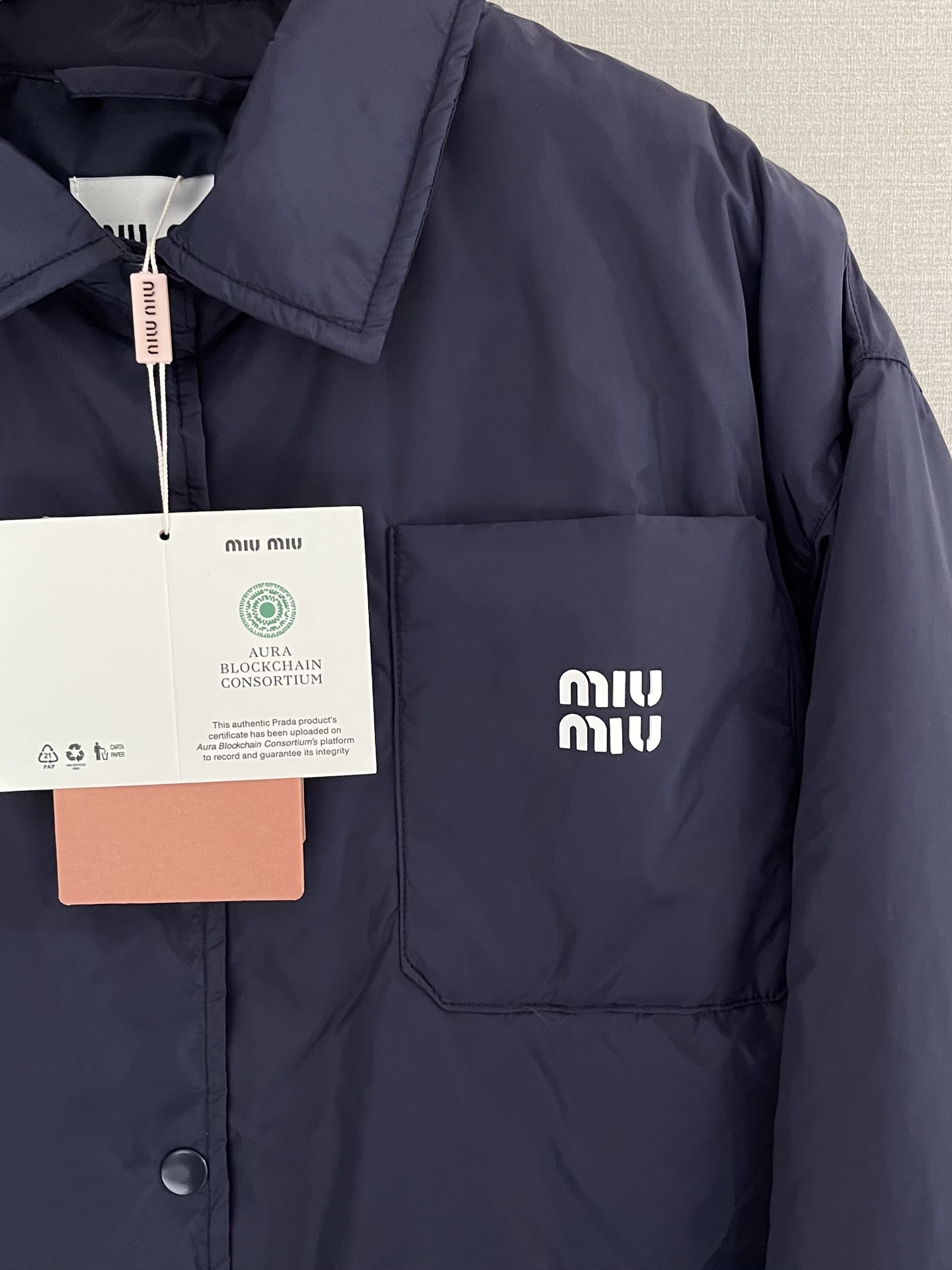 這款衣服是AAAAA 1:1 質量(非常棒). 使用了和原版一模一樣的材料. 商標部分也保持了和繆繆/Miu Miu一樣. 圖片拍攝是實物衣服拍攝, 您所收到的實物保證和我們圖片一模一樣.