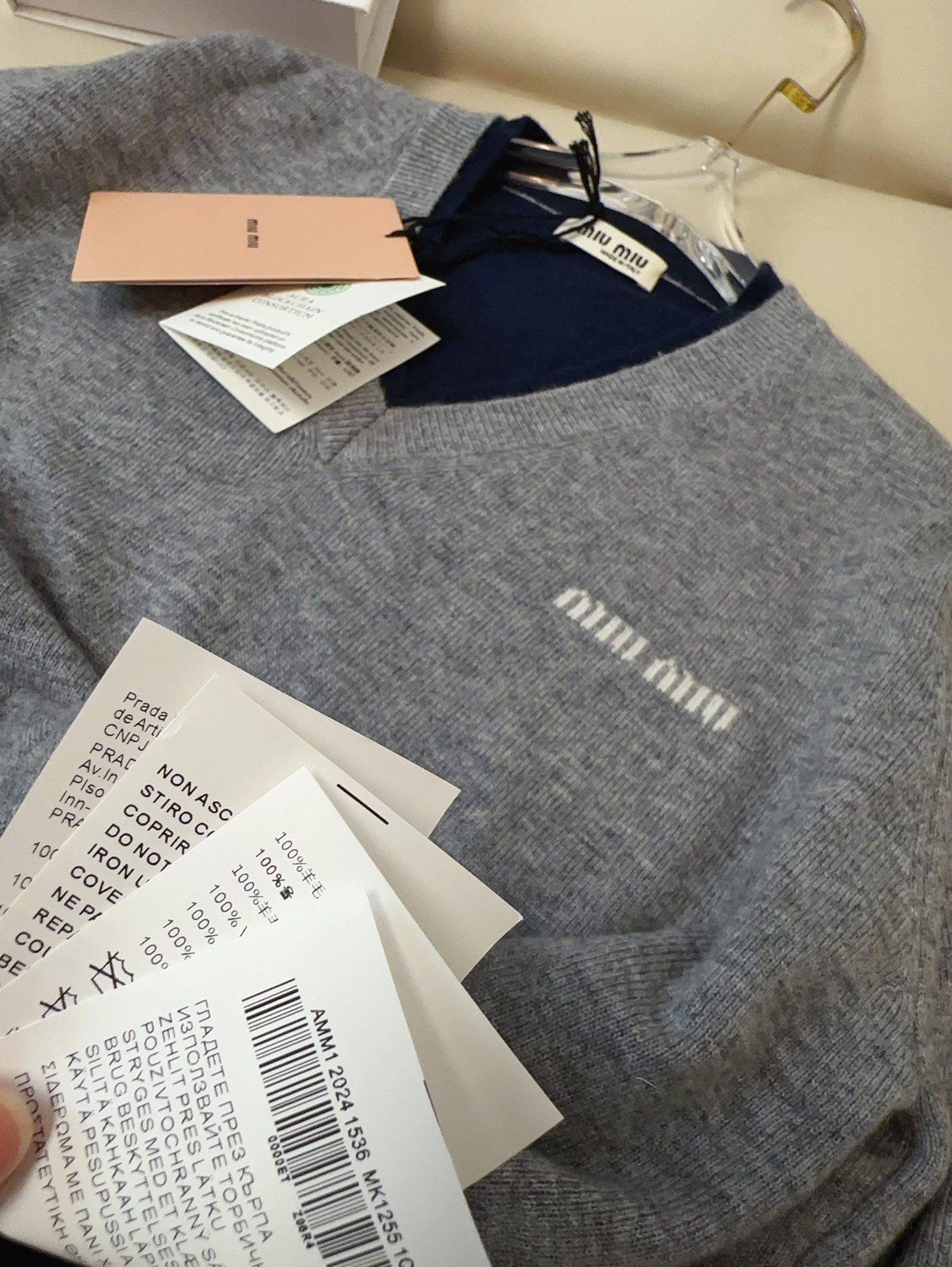 這款衣服是AAAAA 1:1 質量(非常棒). 使用了和原版一模一樣的材料. 商標部分也保持了和繆繆/Miu Miu一樣. 圖片拍攝是實物衣服拍攝, 您所收到的實物保證和我們圖片一模一樣.