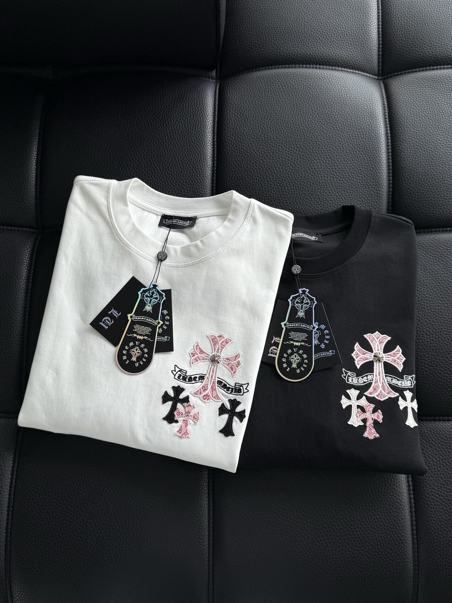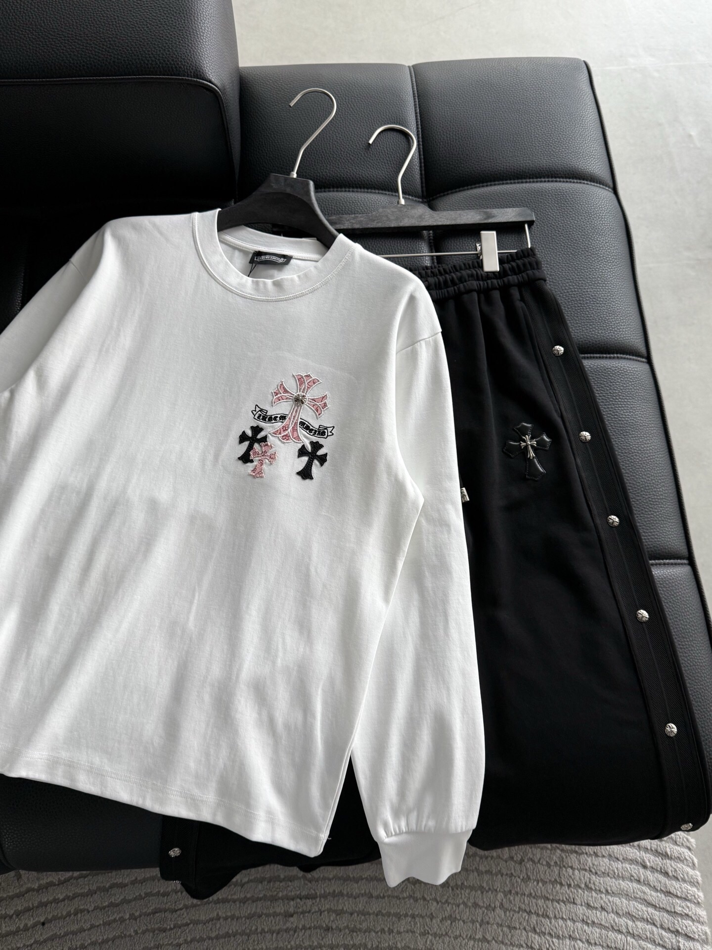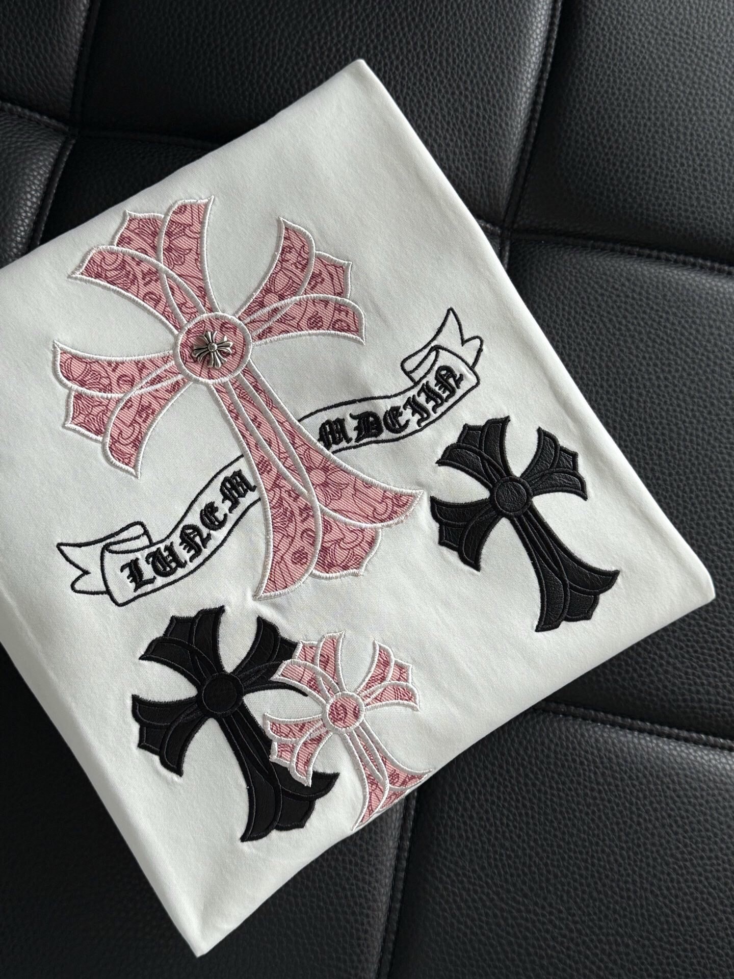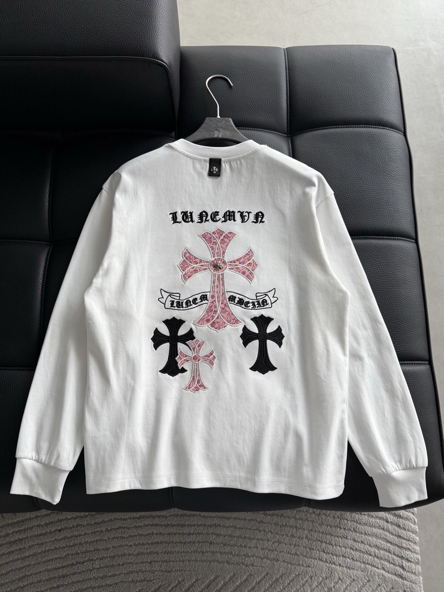 這款衣服是AAAAA 1:1 質量(非常棒). 使用了和原版一模一樣的材料. 商標部分也保持了和鉻心/Chrome Hearts一樣. 圖片拍攝是實物衣服拍攝, 您所收到的實物保證和我們圖片一模一樣.
