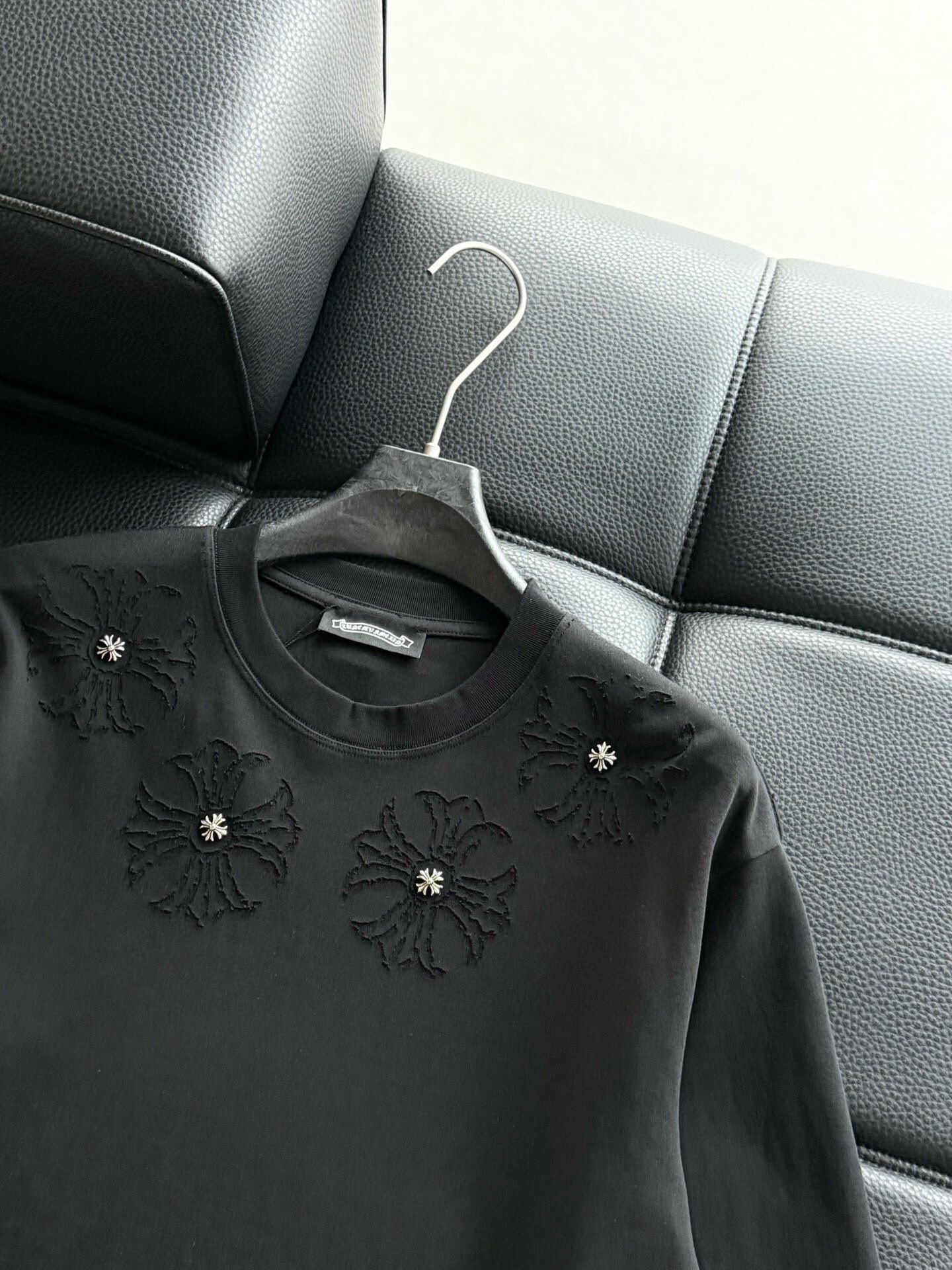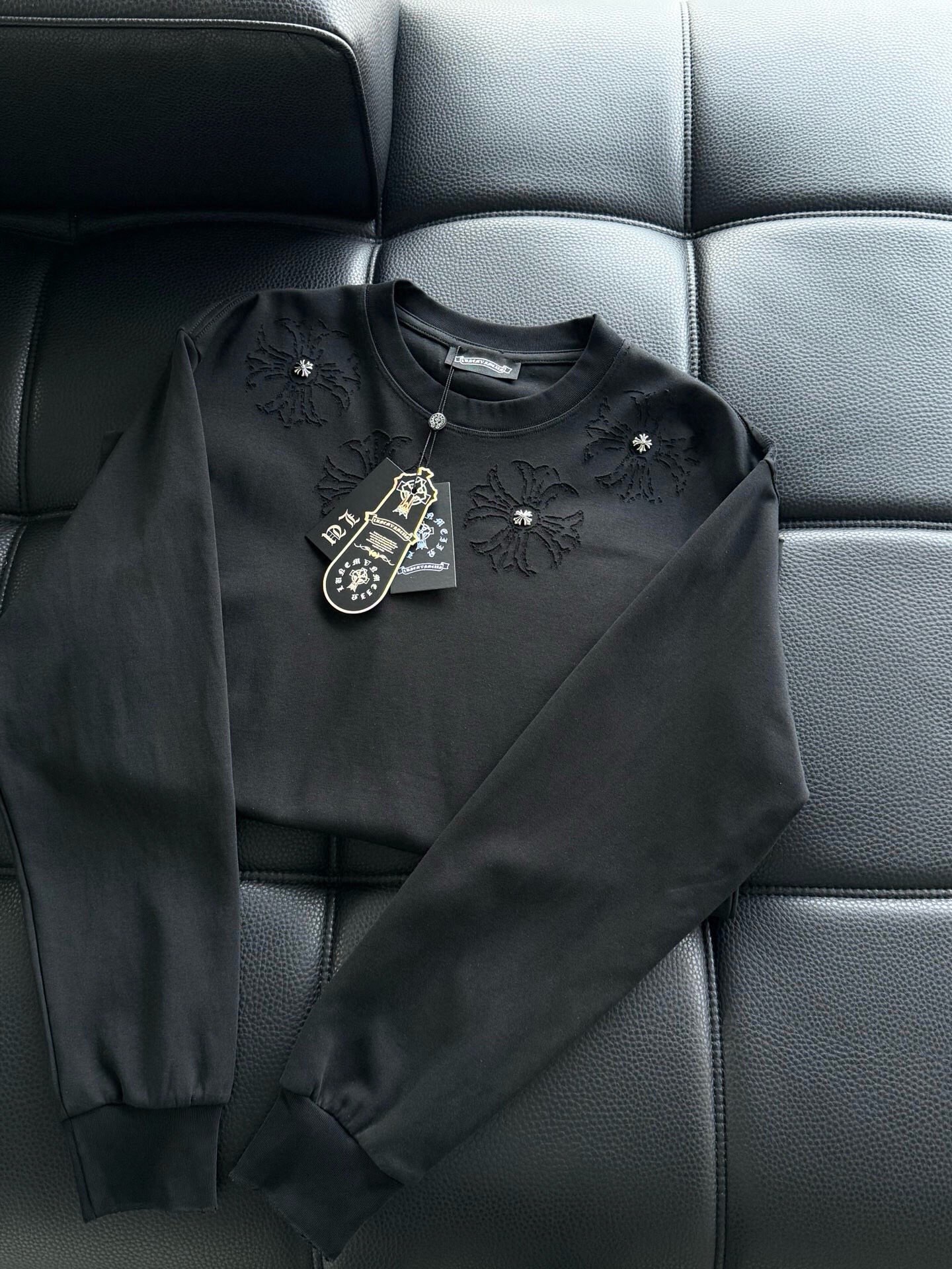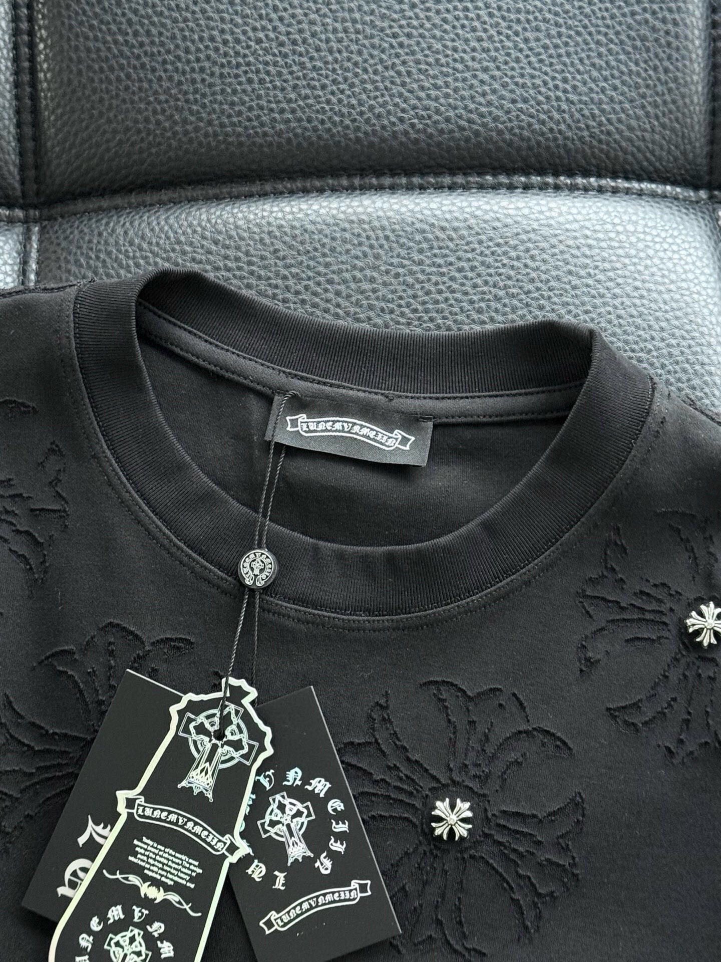這款衣服是AAAAA 1:1 質量(非常棒). 使用了和原版一模一樣的材料. 商標部分也保持了和鉻心/Chrome Hearts一樣. 圖片拍攝是實物衣服拍攝, 您所收到的實物保證和我們圖片一模一樣.