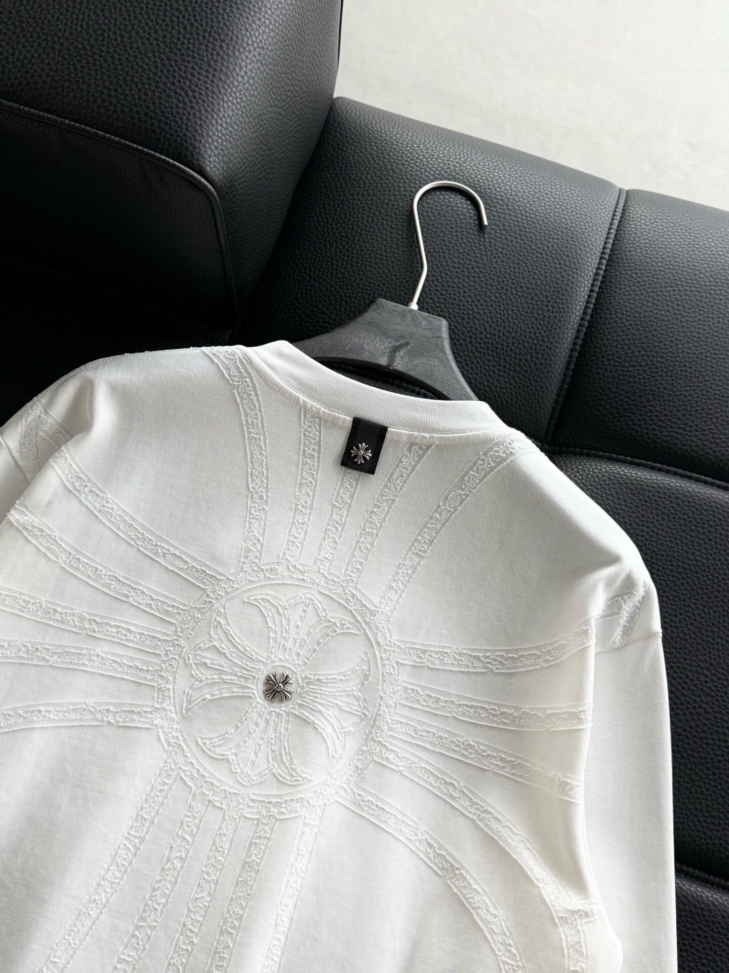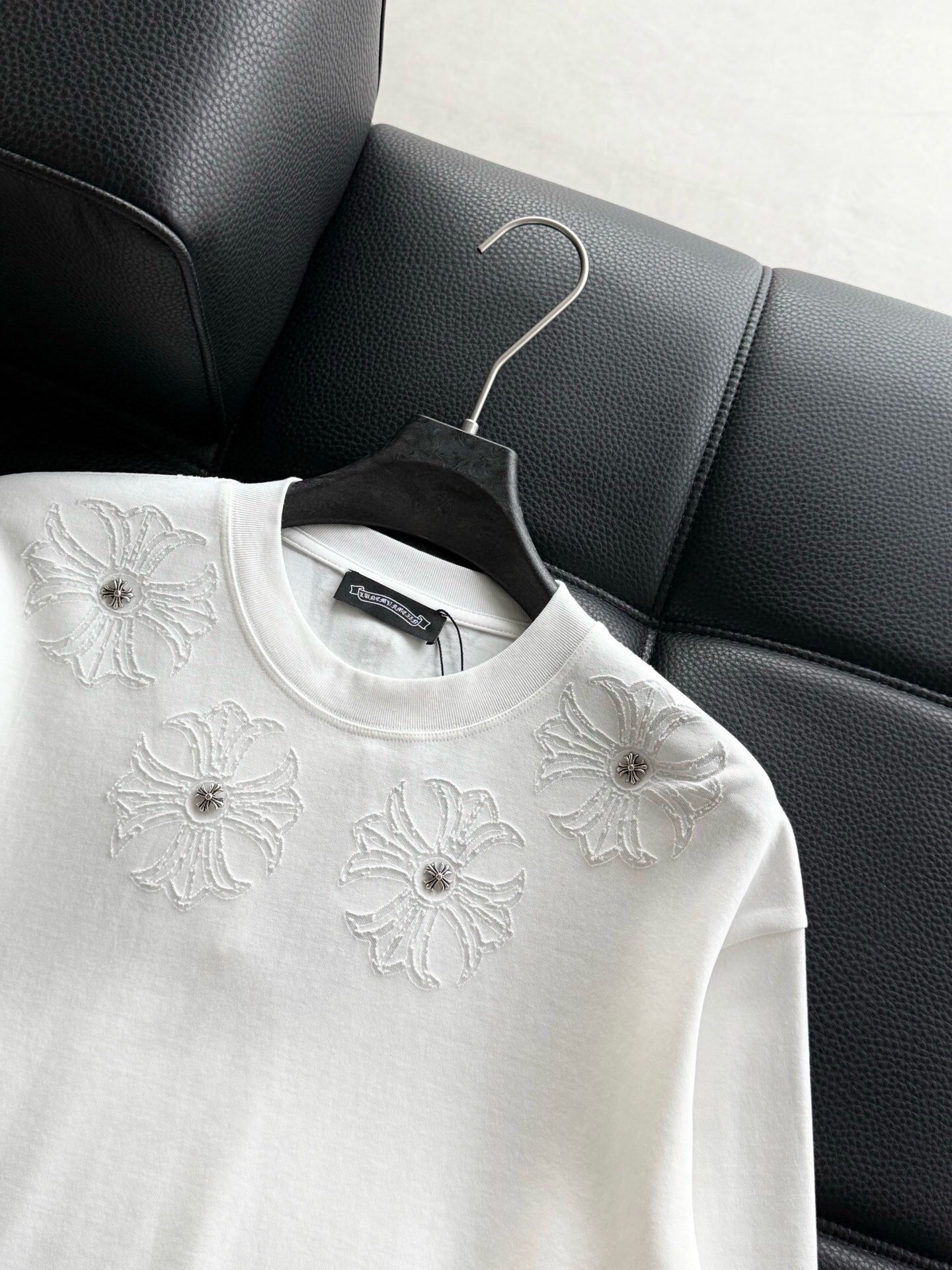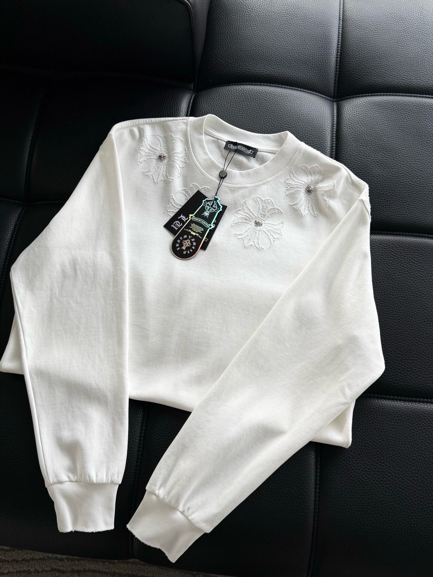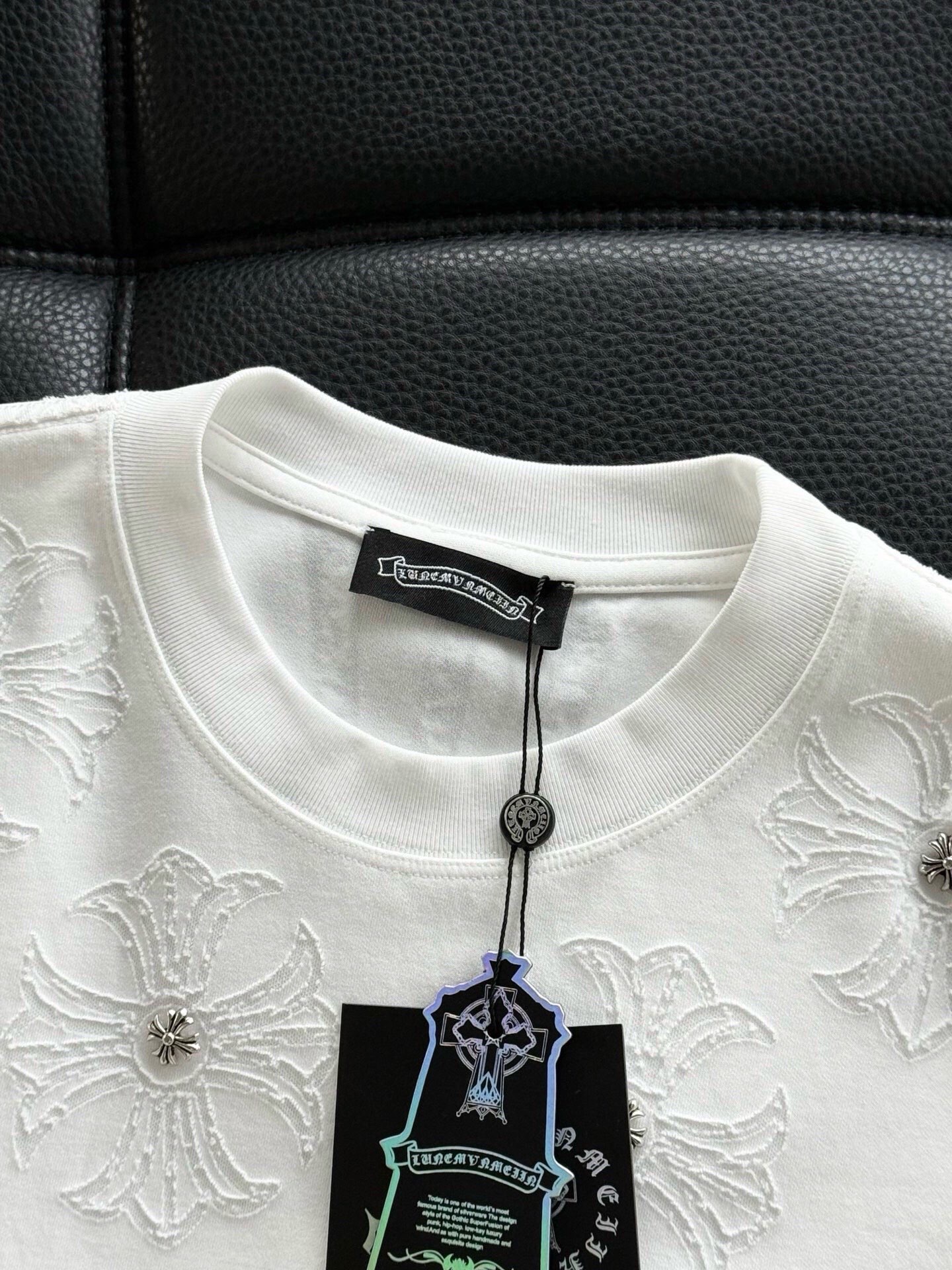 這款衣服是AAAAA 1:1 質量(非常棒). 使用了和原版一模一樣的材料. 商標部分也保持了和鉻心/Chrome Hearts一樣. 圖片拍攝是實物衣服拍攝, 您所收到的實物保證和我們圖片一模一樣.