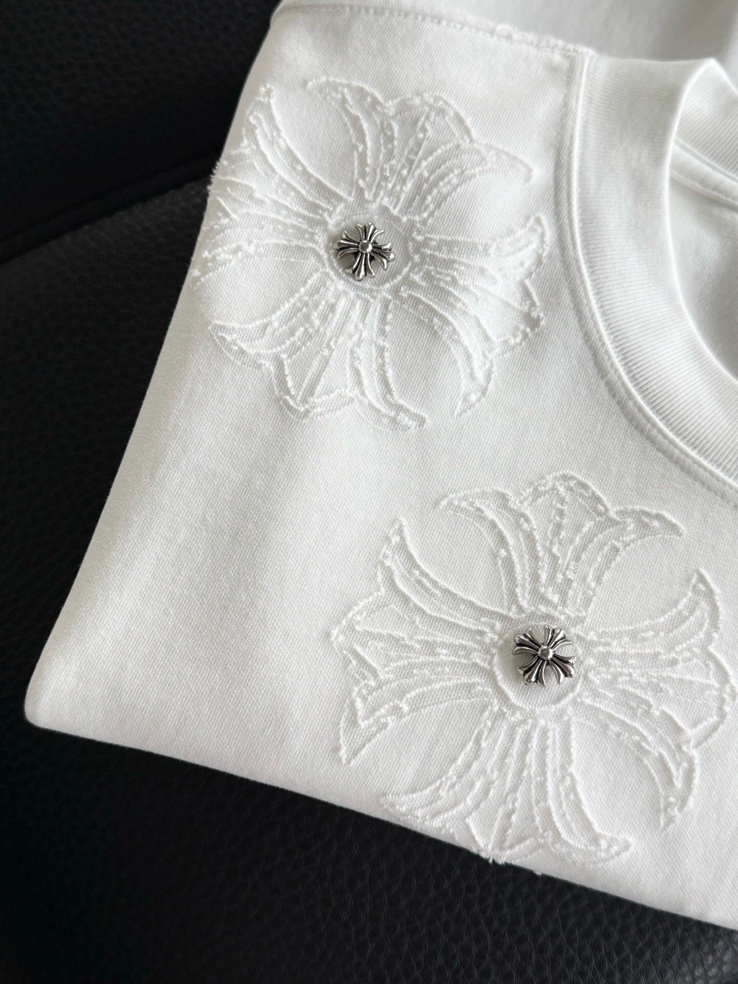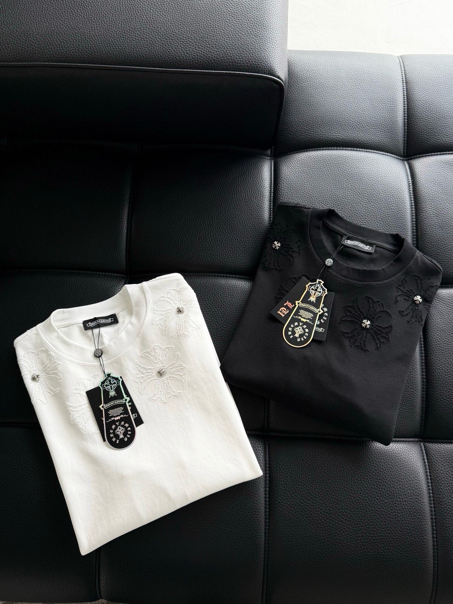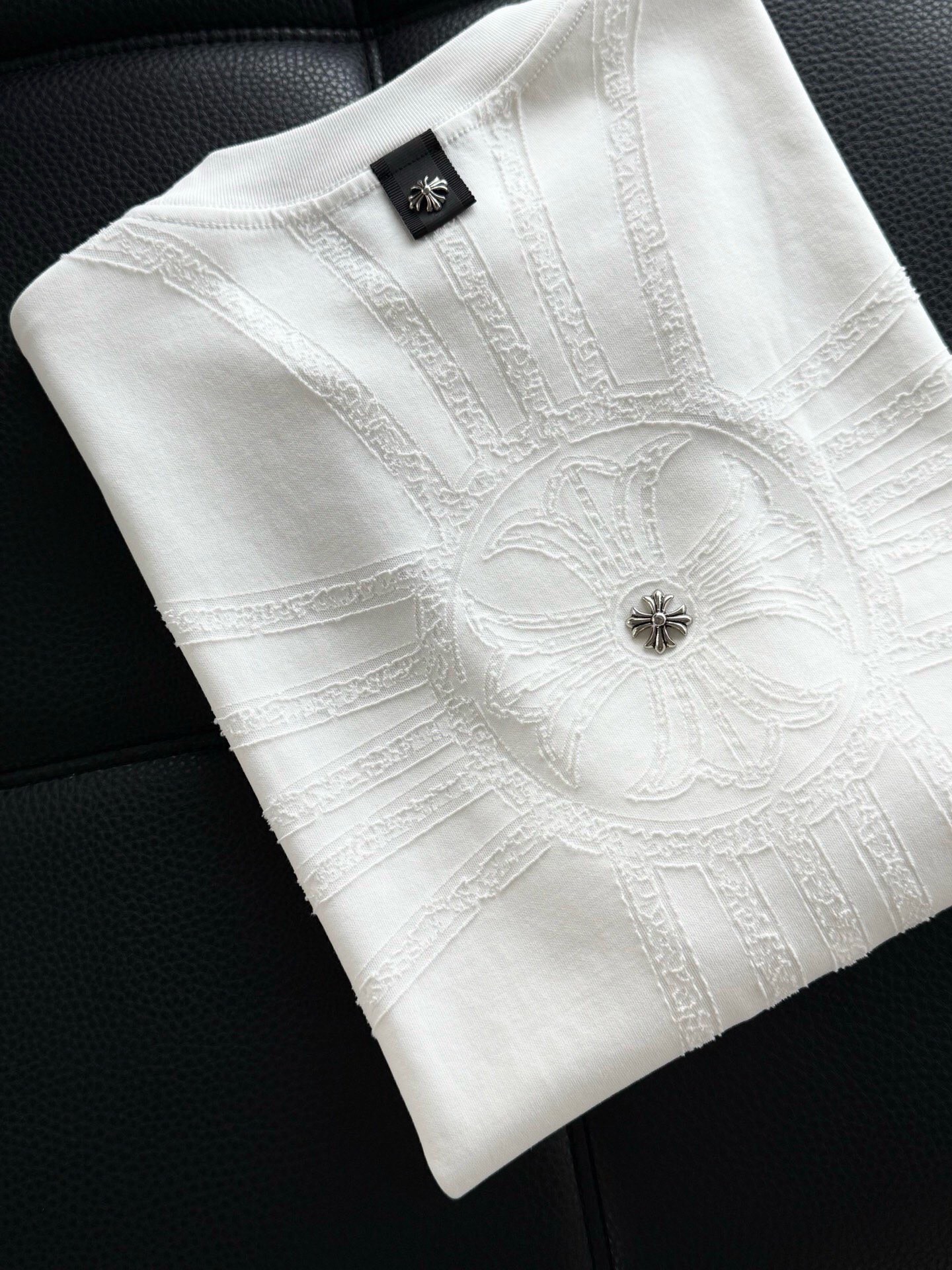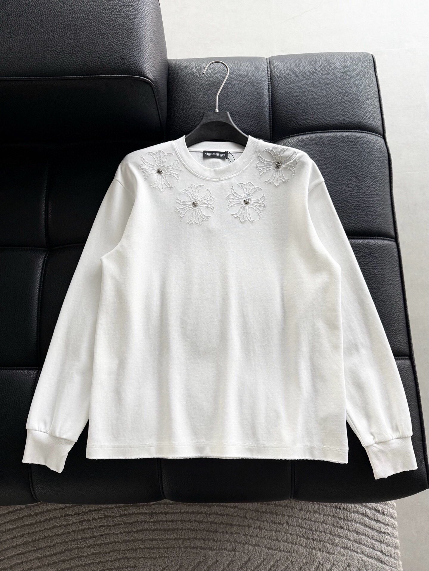 這款衣服是AAAAA 1:1 質量(非常棒). 使用了和原版一模一樣的材料. 商標部分也保持了和鉻心/Chrome Hearts一樣. 圖片拍攝是實物衣服拍攝, 您所收到的實物保證和我們圖片一模一樣.