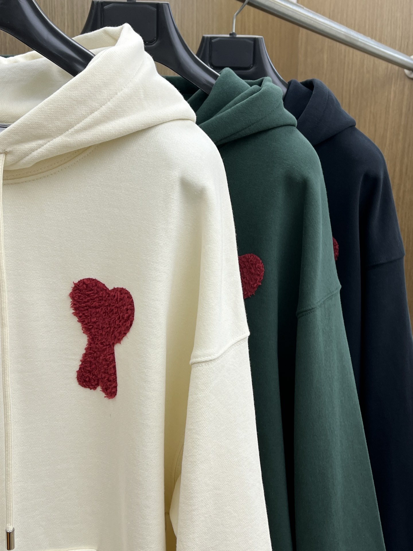 這款衣服是AAAAA 1:1 質量(非常棒). 使用了和原版一模一樣的材料. 商標部分也保持了和Ami一樣. 圖片拍攝是實物衣服拍攝, 您所收到的實物保證和我們圖片一模一樣.