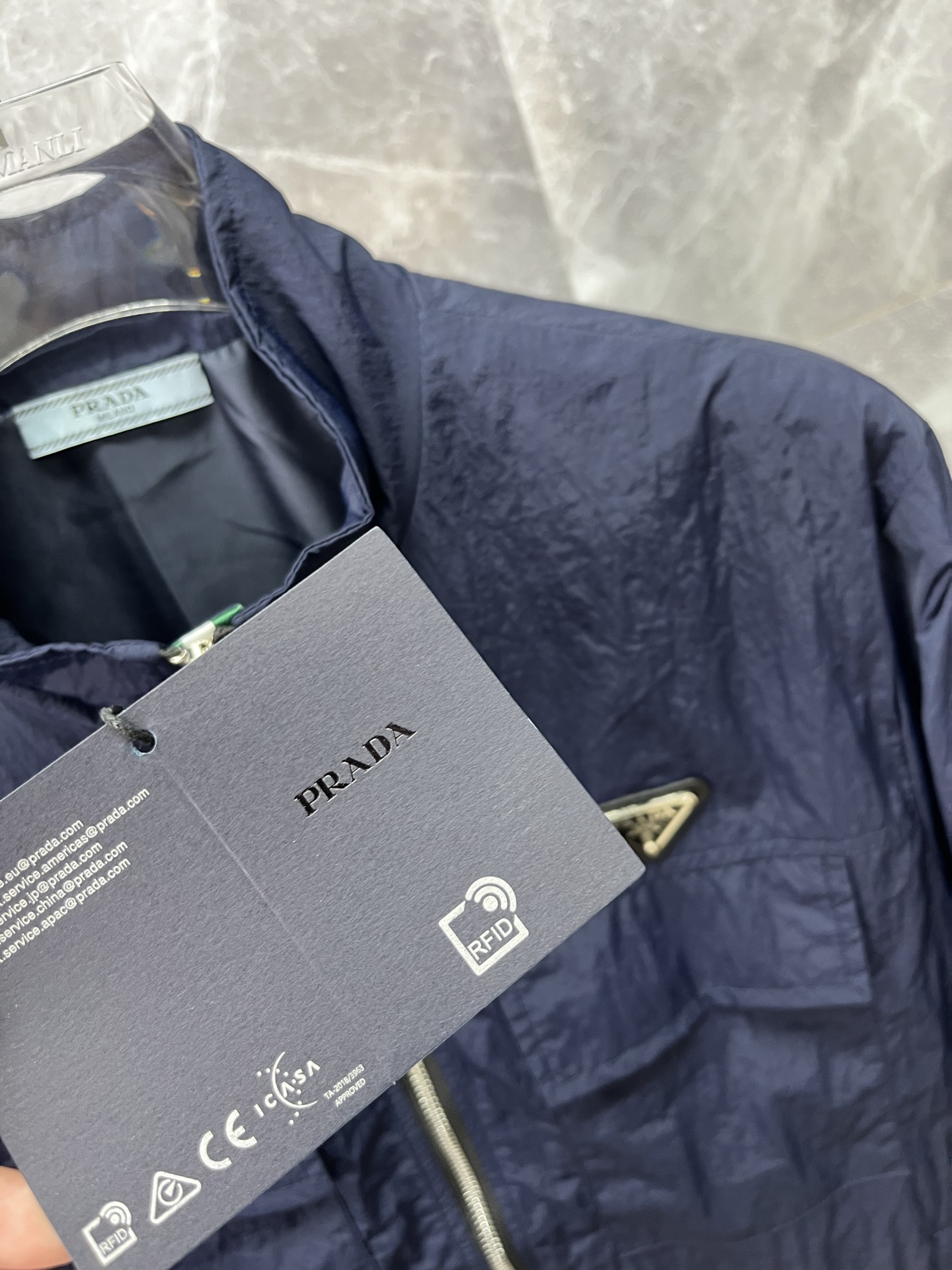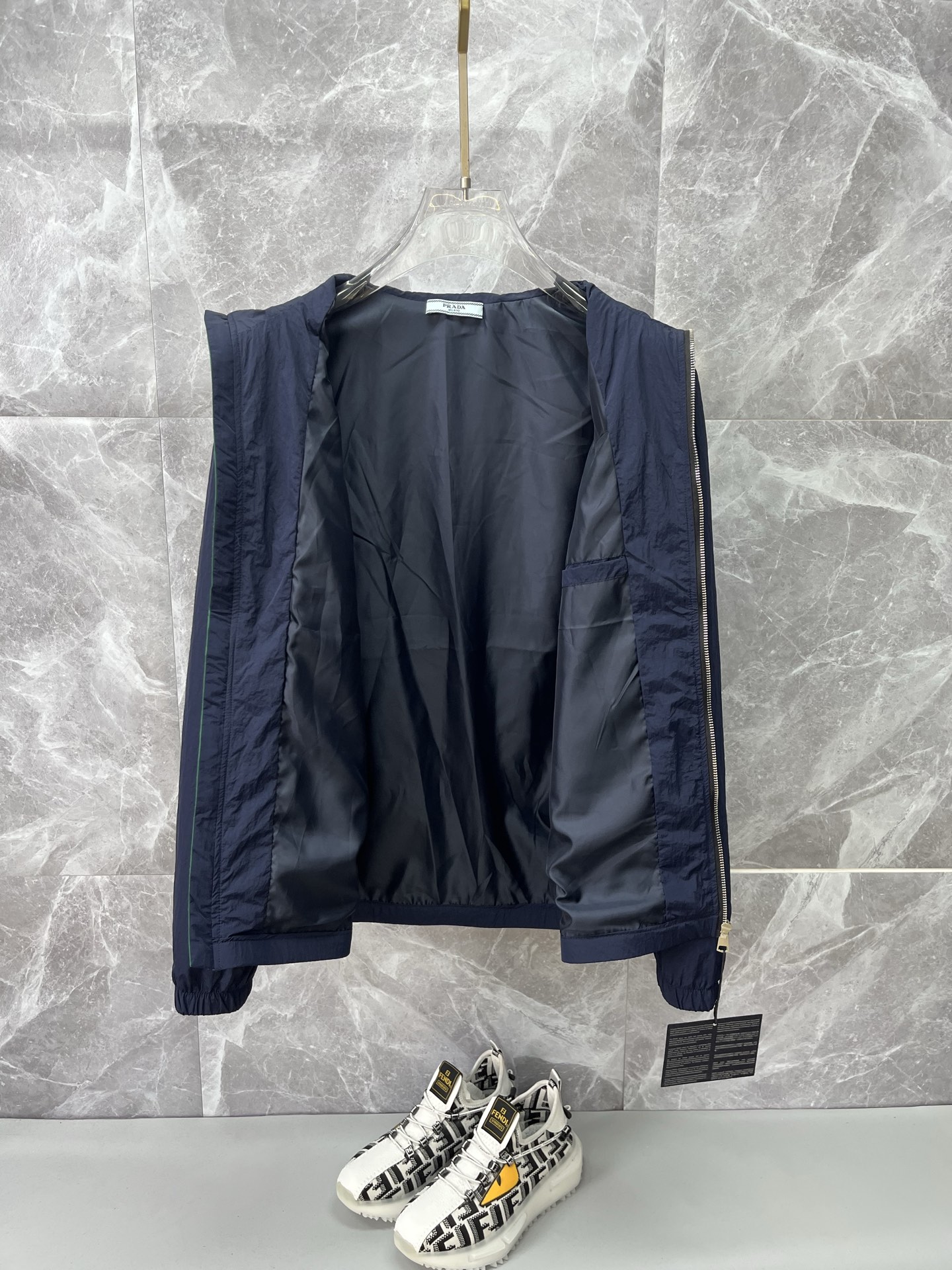 這款衣服是AAAAA 1:1 質量(非常棒). 使用了和原版一模一樣的材料. 商標部分也保持了和普拉達/Prada一樣. 圖片拍攝是實物衣服拍攝, 您所收到的實物保證和我們圖片一模一樣.