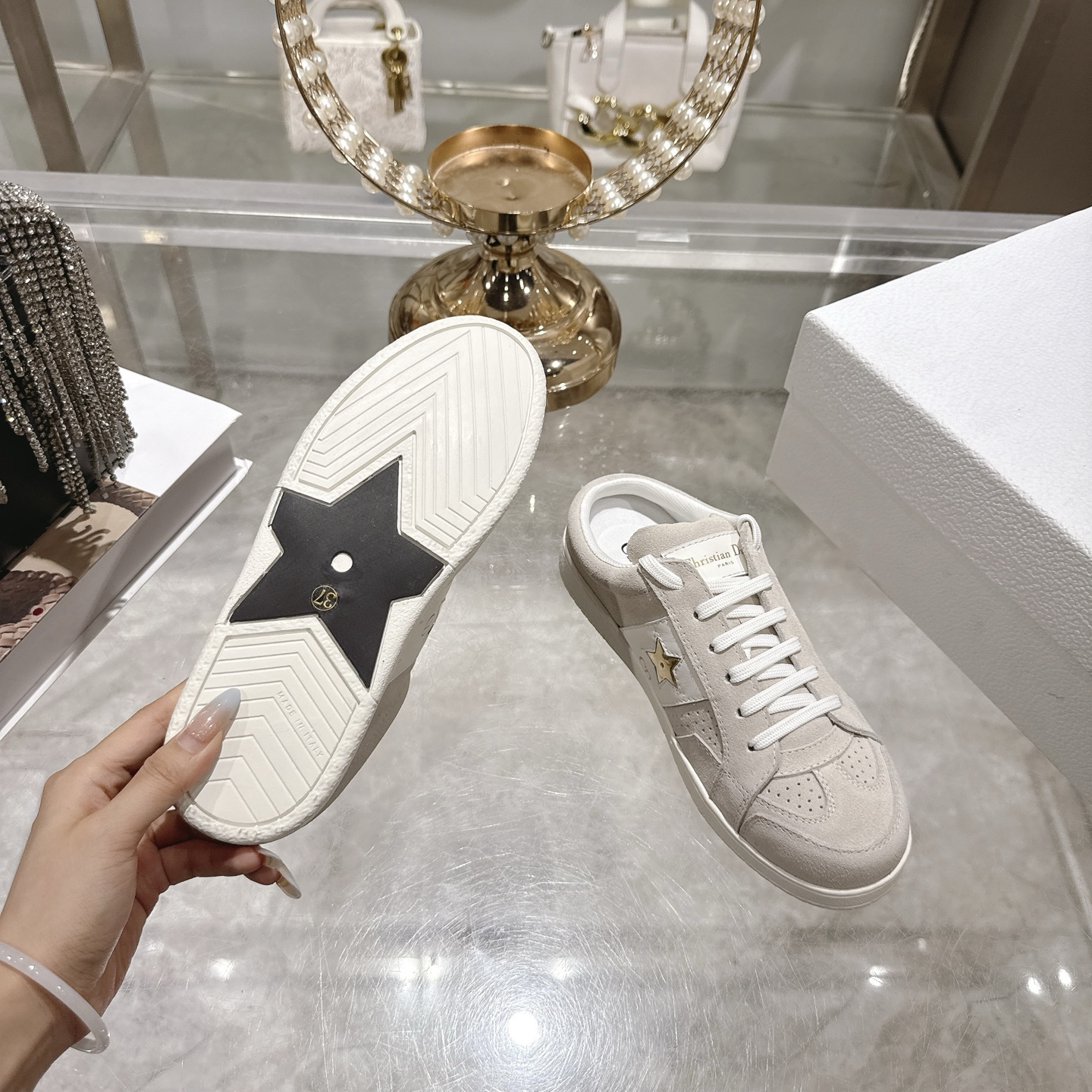 這款鞋子是AAAAA 1:1 質量(非常棒). 使用了和原版一模一樣的材料. 商標部分也保持了和迪奧/Dior一樣. 圖片拍攝是實物鞋子拍攝, 您所收到的實物保證和我們圖片一模一樣.