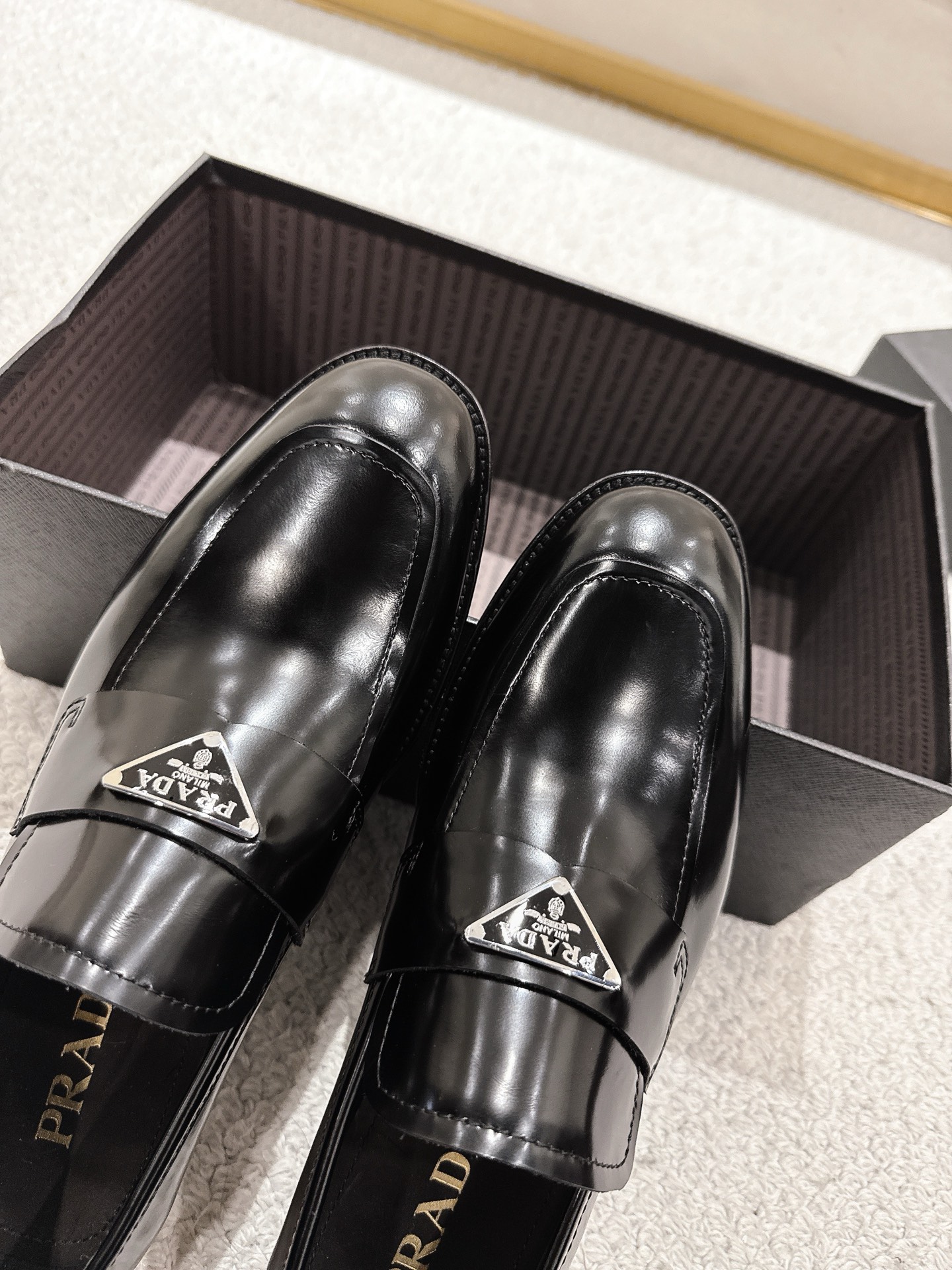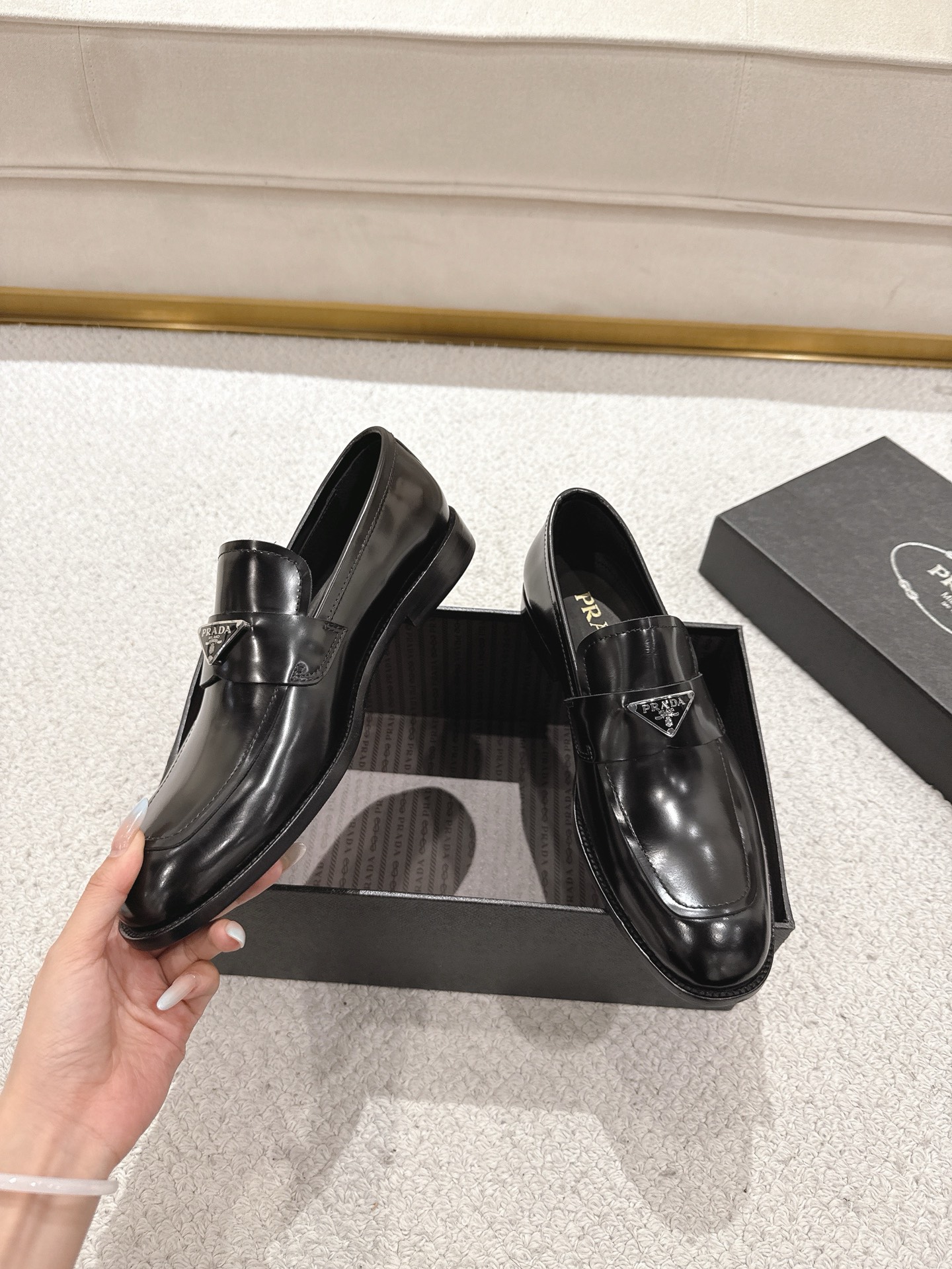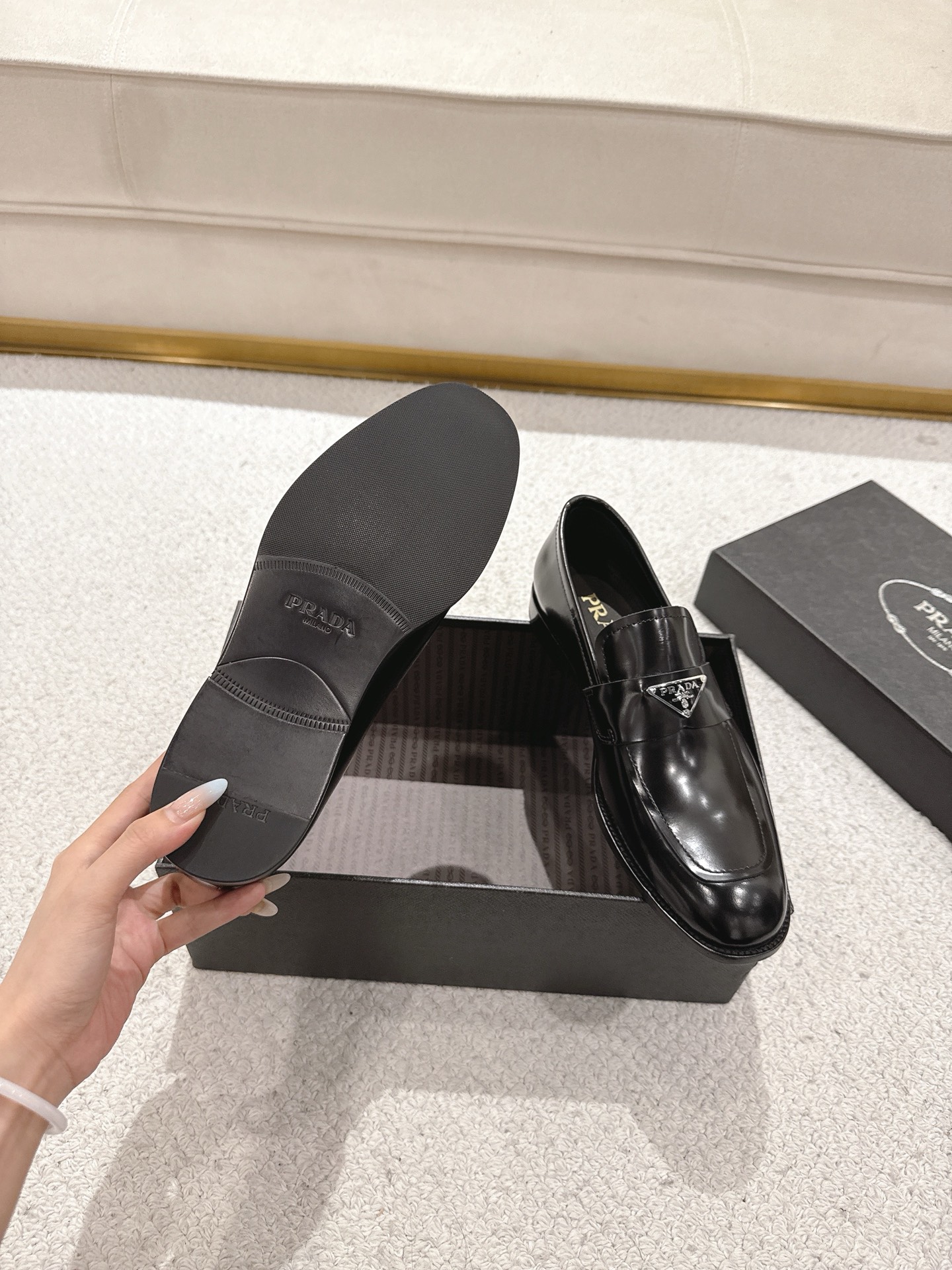 這款鞋子是AAAAA 1:1 質量(非常棒). 使用了和原版一模一樣的材料. 商標部分也保持了和普拉達/Prada一樣. 圖片拍攝是實物鞋子拍攝, 您所收到的實物保證和我們圖片一模一樣.
