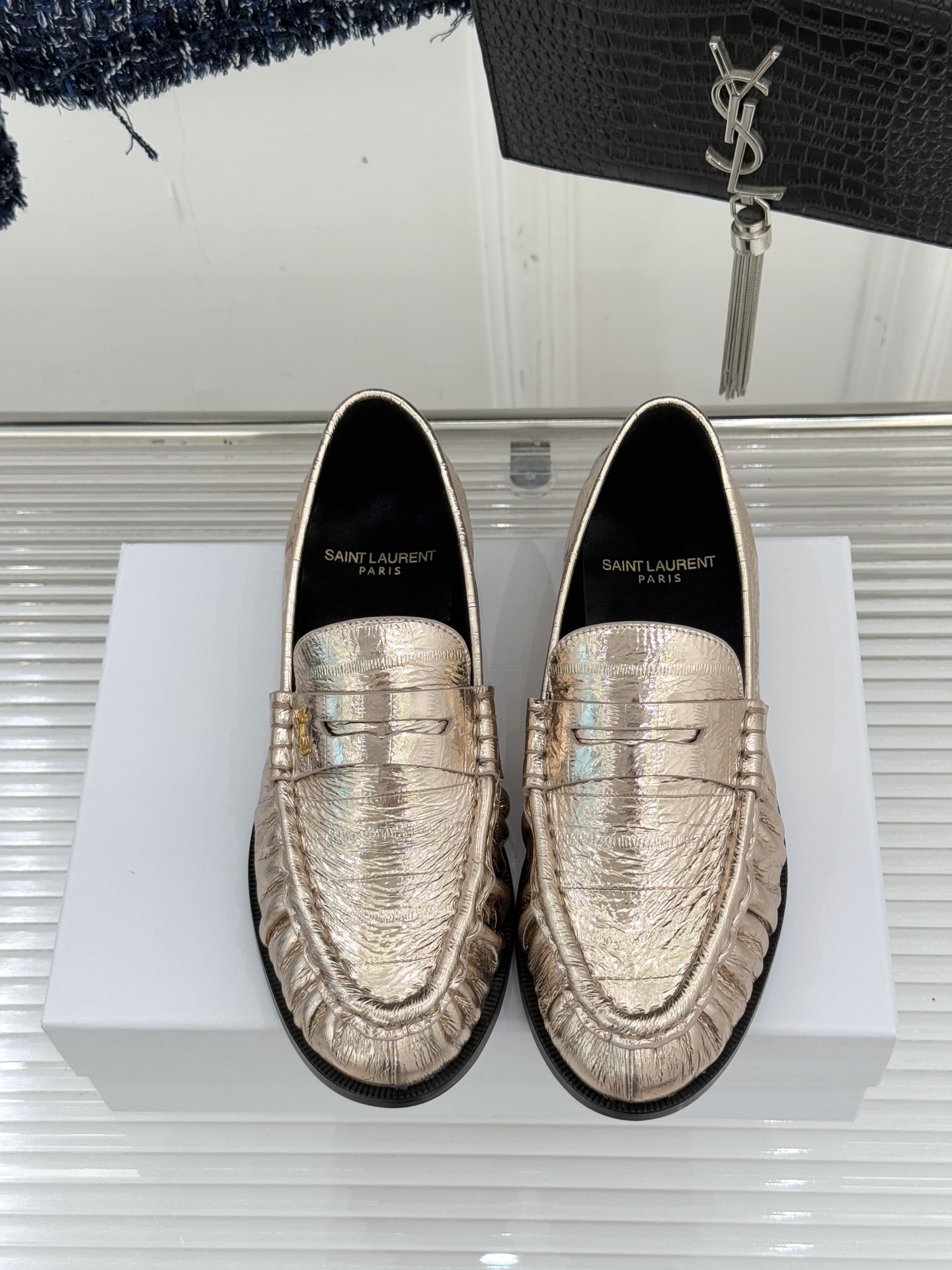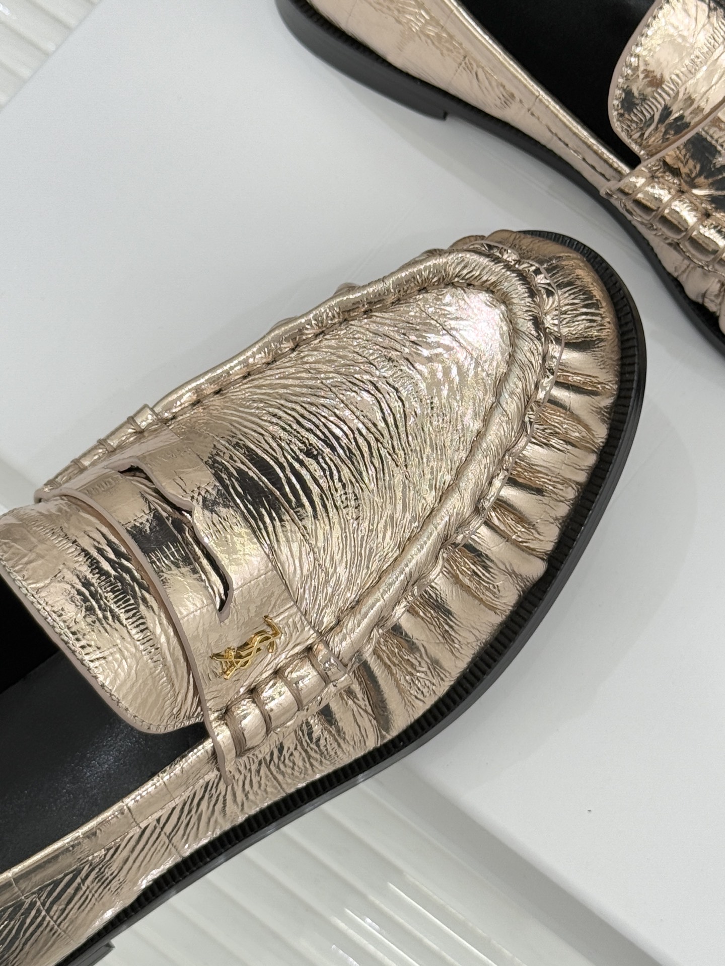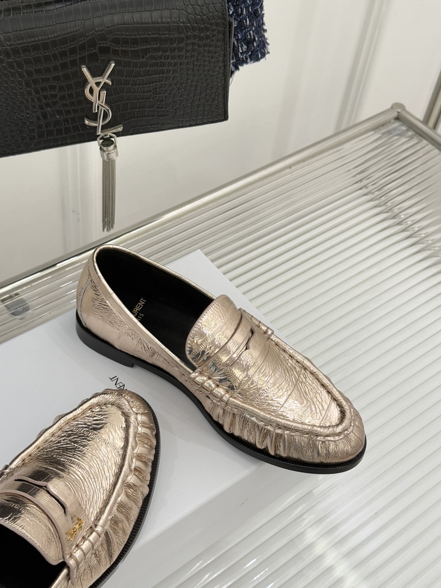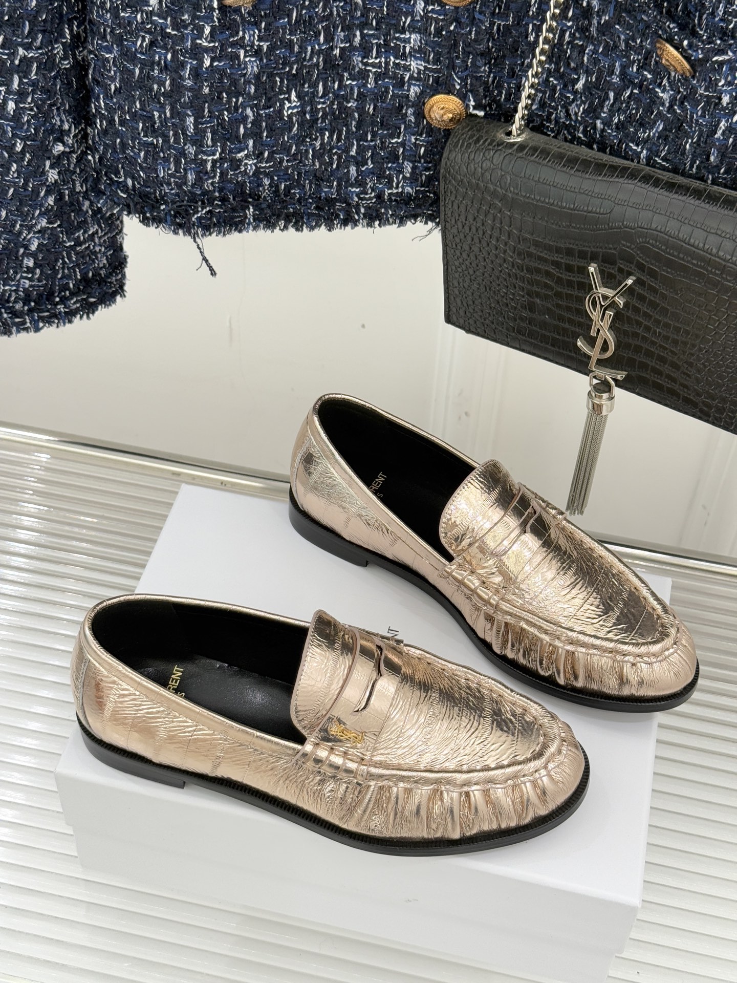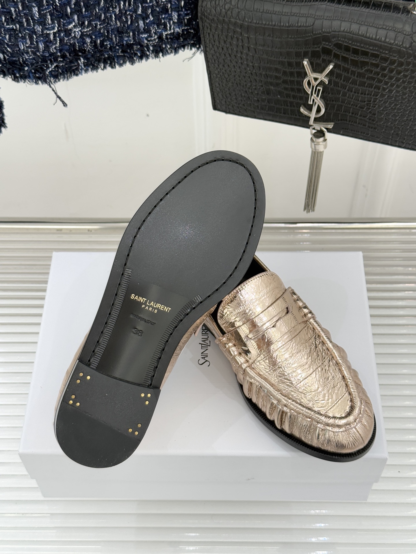 這款鞋子是AAAAA 1:1 質量(非常棒). 使用了和原版一模一樣的材料. 商標部分也保持了和聖羅蘭/Saint Laurent一樣. 圖片拍攝是實物鞋子拍攝, 您所收到的實物保證和我們圖片一模一樣.