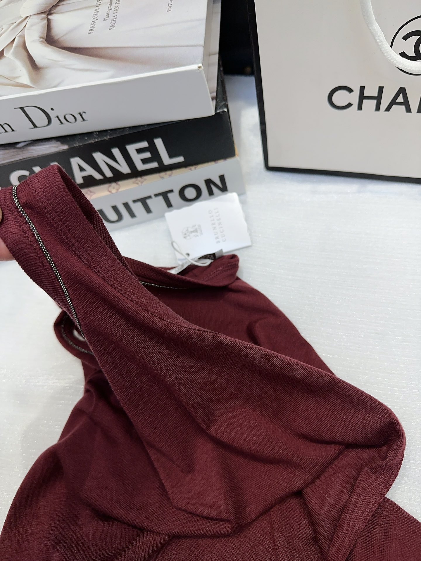這款衣服是AAAAA 1:1 質量(非常棒). 使用了和原版一模一樣的材料. 商標部分也保持了和Brunello Cucinelli一樣. 圖片拍攝是實物衣服拍攝, 您所收到的實物保證和我們圖片一模一樣.