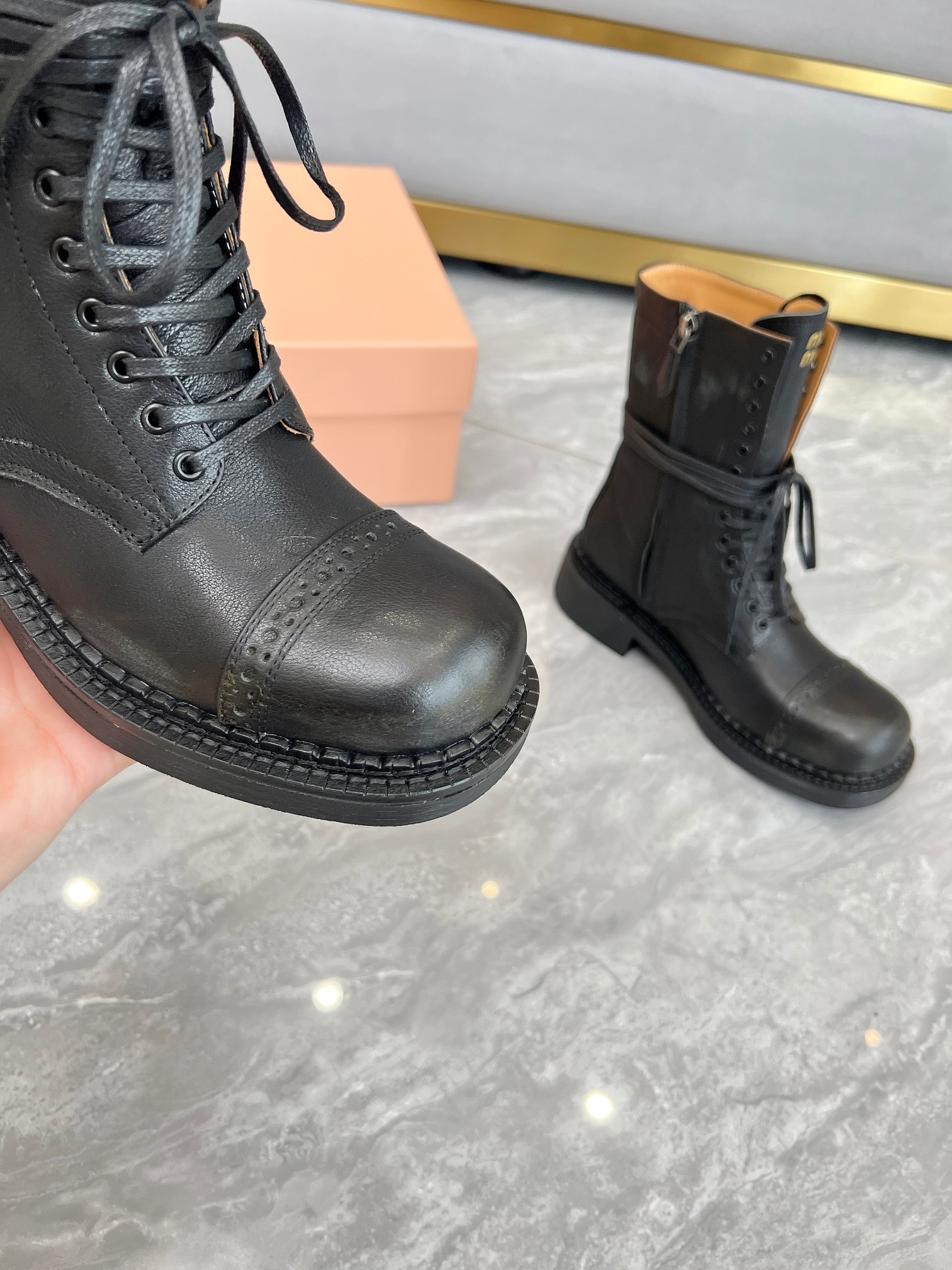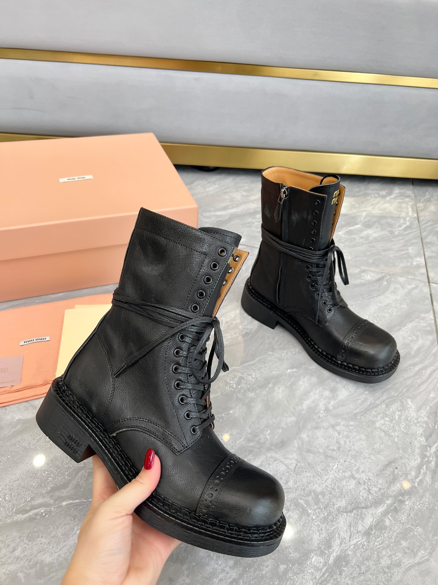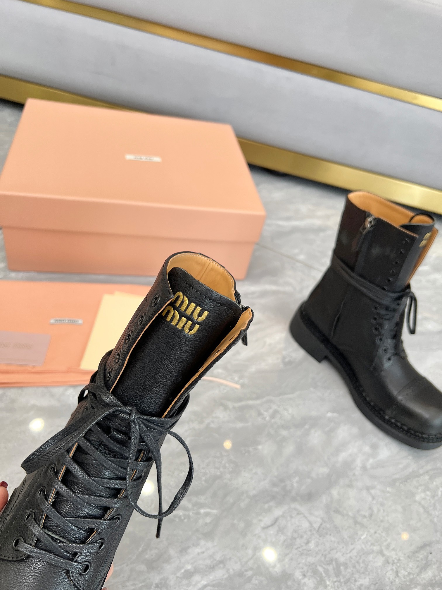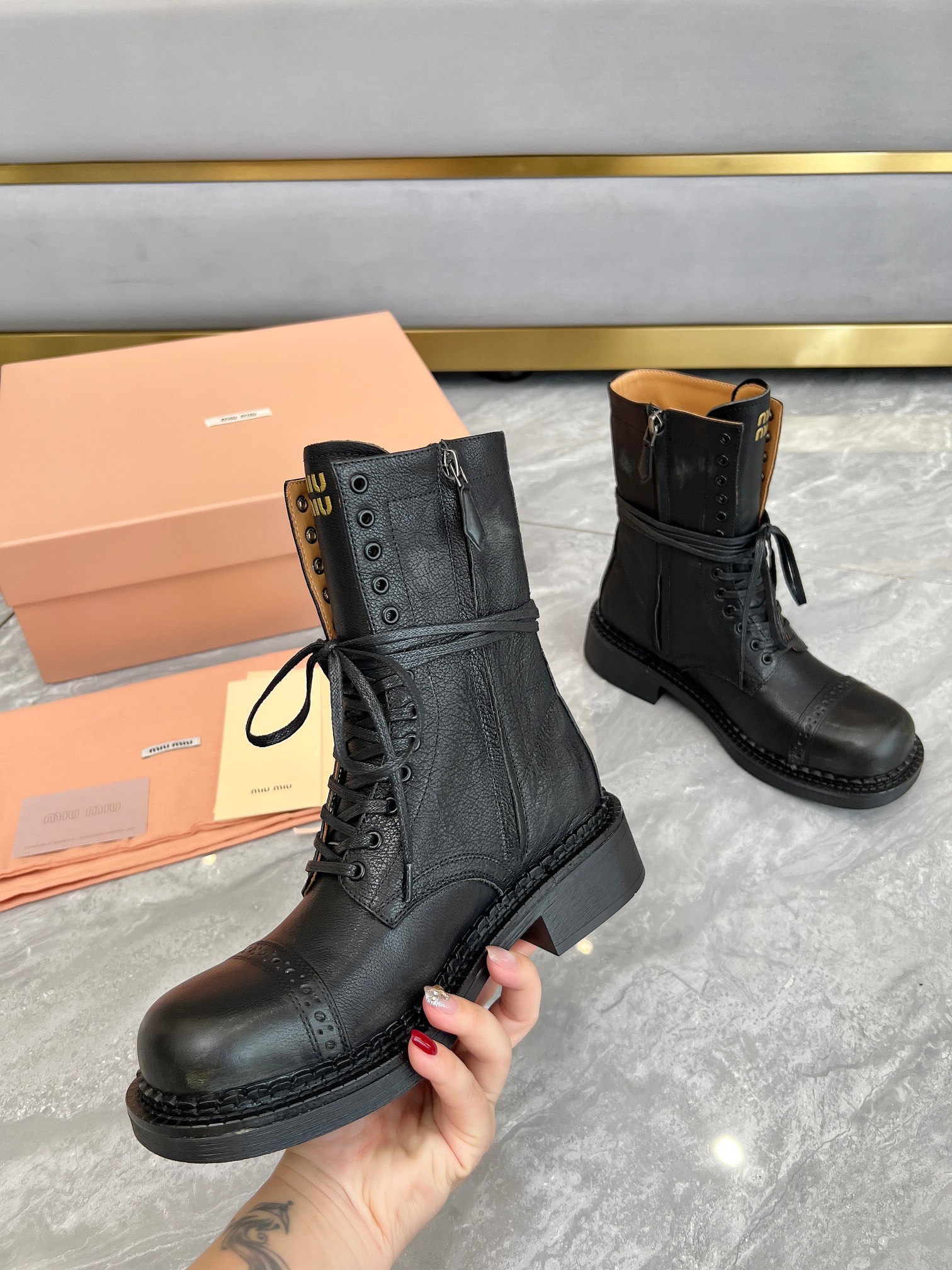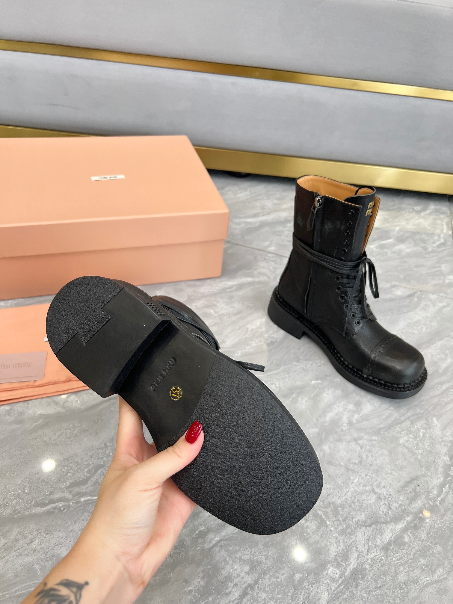 這款鞋子是AAAAA 1:1 質量(非常棒). 使用了和原版一模一樣的材料. 商標部分也保持了和繆繆/Miu Miu一樣. 圖片拍攝是實物鞋子拍攝, 您所收到的實物保證和我們圖片一模一樣.