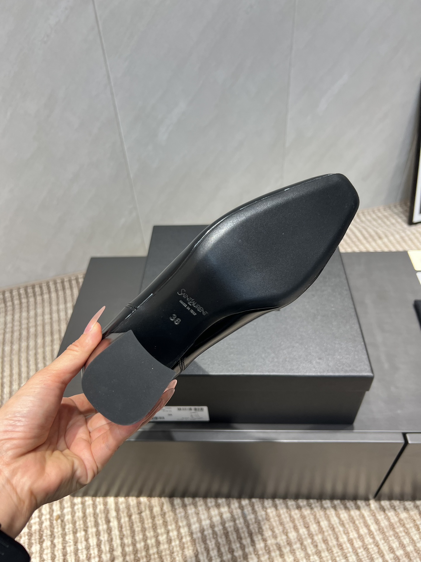這款鞋子是AAAAA 1:1 質量(非常棒). 使用了和原版一模一樣的材料. 商標部分也保持了和聖羅蘭/Saint Laurent一樣. 圖片拍攝是實物鞋子拍攝, 您所收到的實物保證和我們圖片一模一樣.