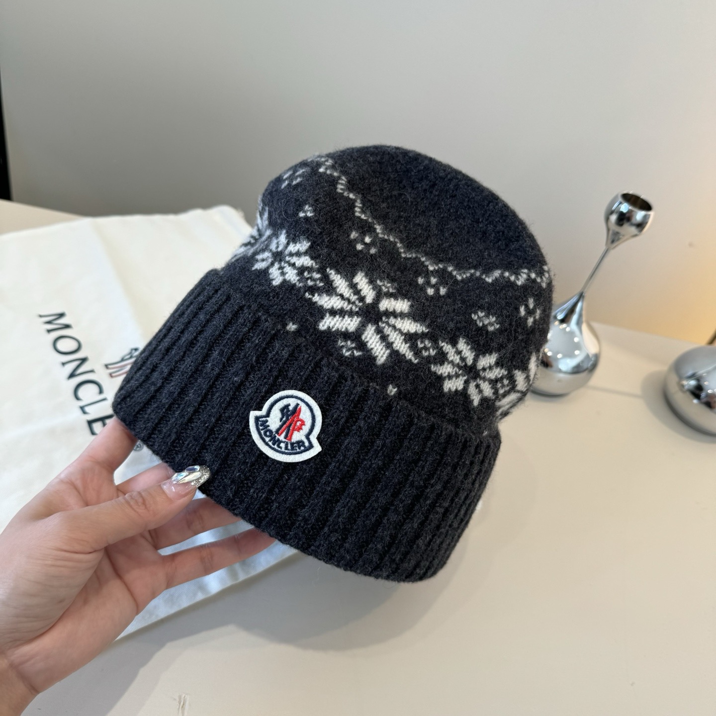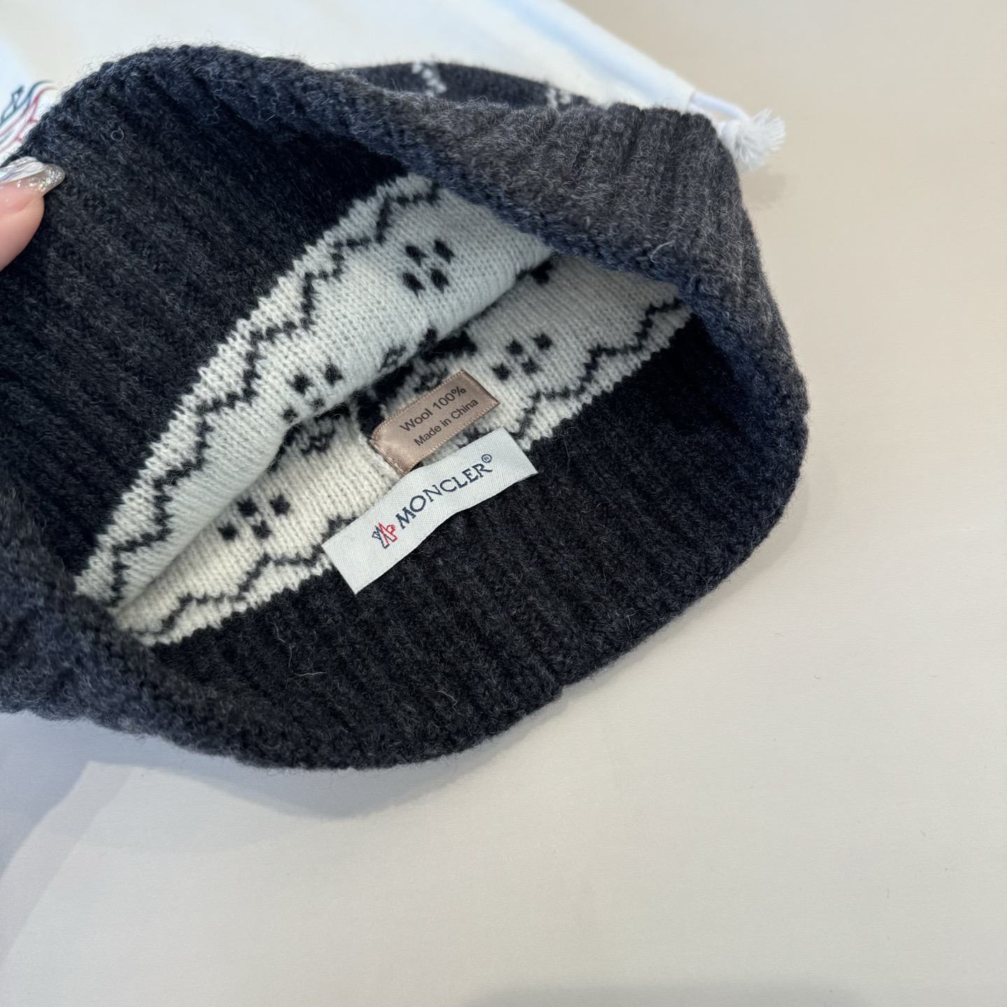 這款帽子是AAAAA 1:1 質量(非常棒). 使用了和原版一模一樣的材料. 商標部分也保持了和moncler一樣. 圖片拍攝是實物帽子拍攝, 您所收到的實物保證和我們圖片一模一樣.