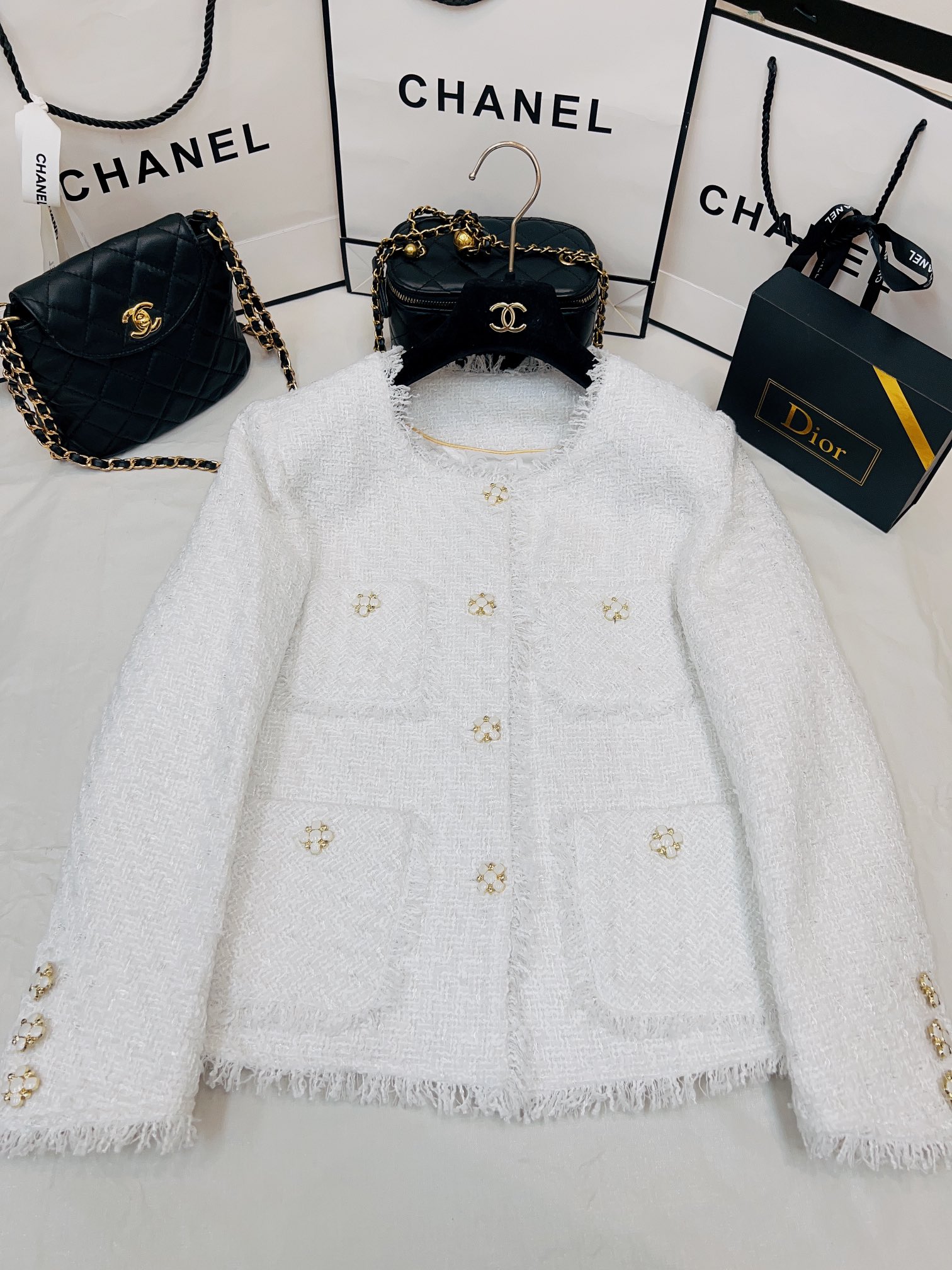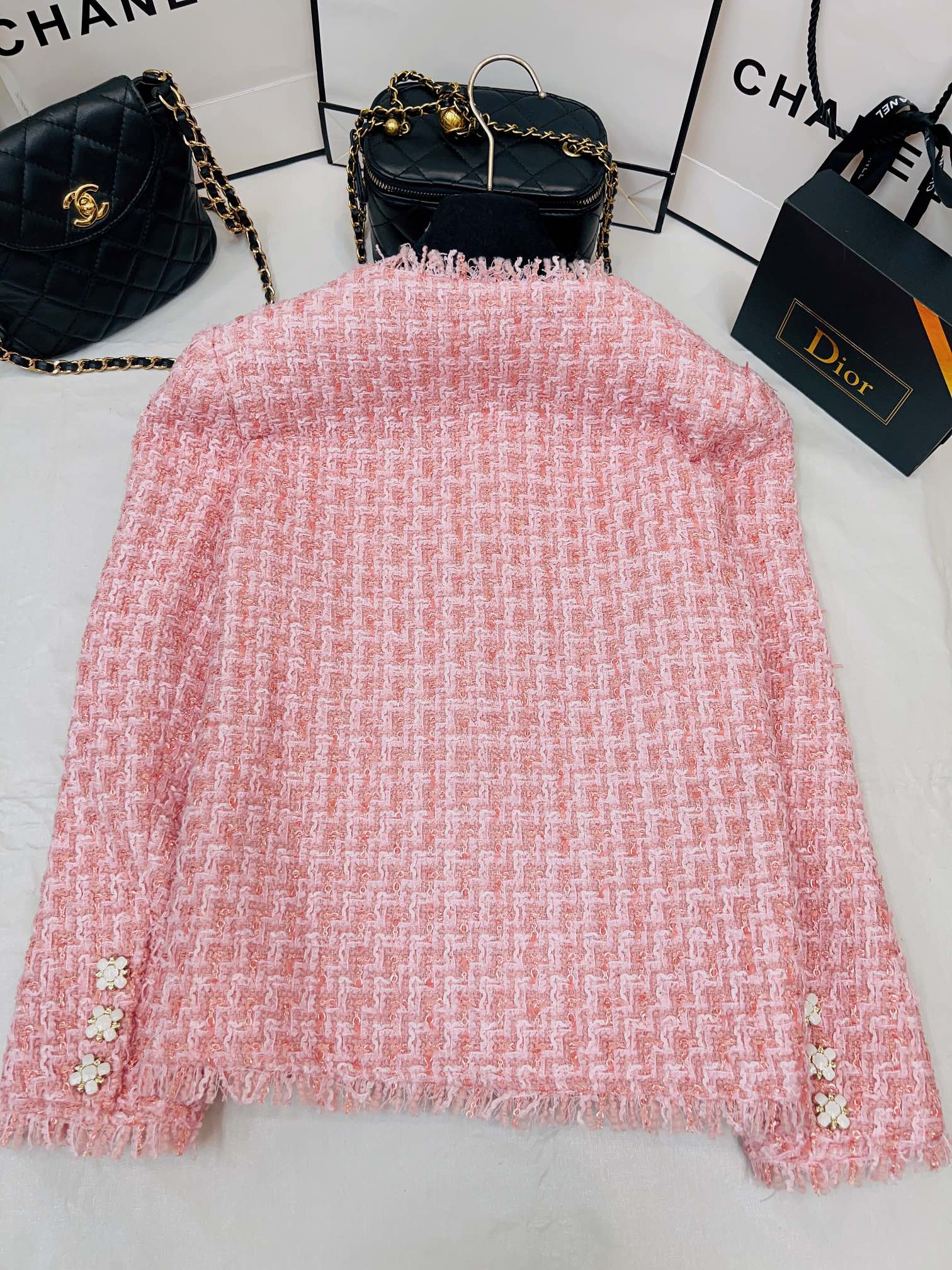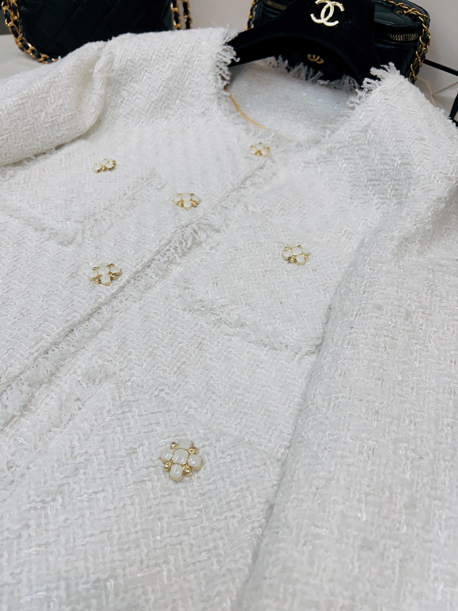 這款衣服是AAAAA 1:1 質量(非常棒). 使用了和原版一模一樣的材料. 商標部分也保持了和香奈兒/Chanel一樣. 圖片拍攝是實物衣服拍攝, 您所收到的實物保證和我們圖片一模一樣.