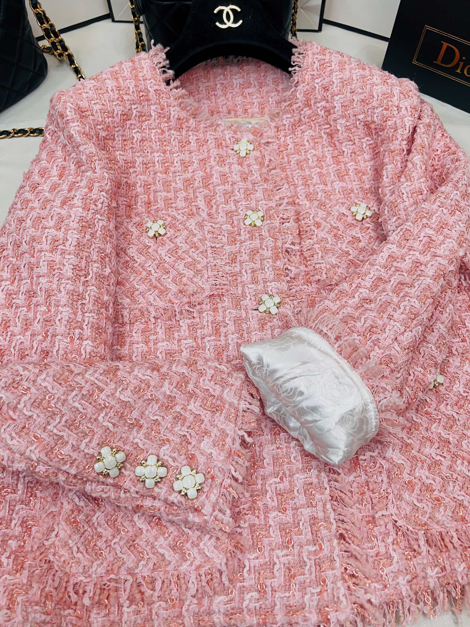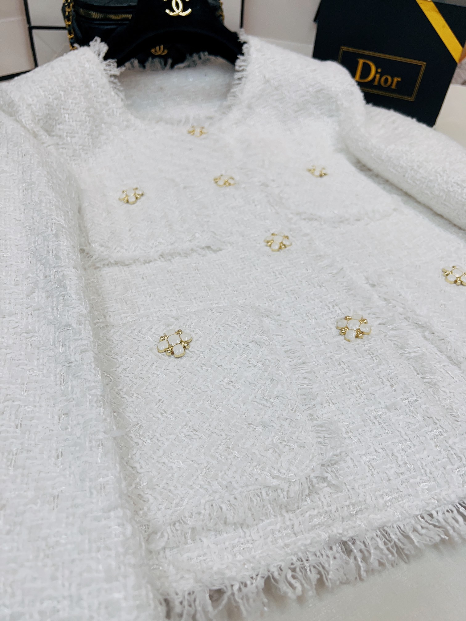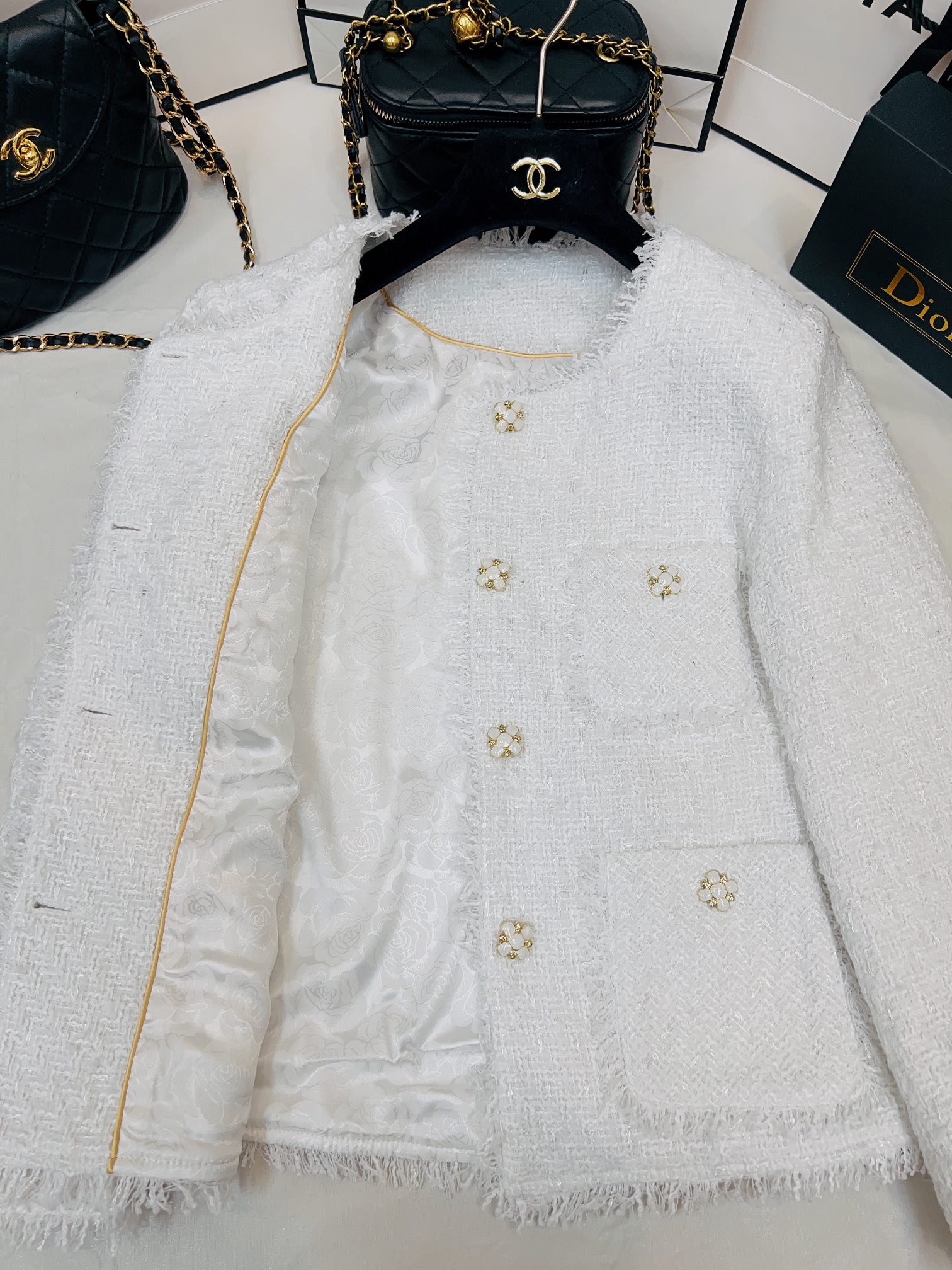 這款衣服是AAAAA 1:1 質量(非常棒). 使用了和原版一模一樣的材料. 商標部分也保持了和香奈兒/Chanel一樣. 圖片拍攝是實物衣服拍攝, 您所收到的實物保證和我們圖片一模一樣.