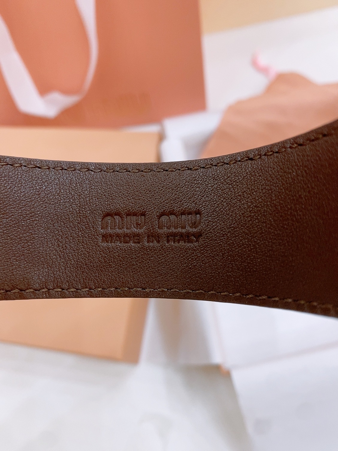 這款皮帶是AAAAA 1:1 質量(非常棒). 使用了和原版一模一樣的材料. 商標部分也保持了和繆繆/Miu Miu一樣. 圖片拍攝是實物皮帶拍攝, 您所收到的實物保證和我們圖片一模一樣.