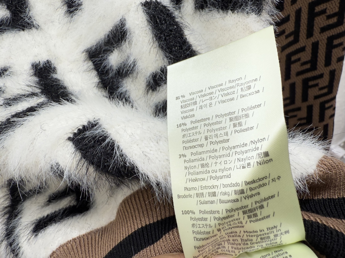 這款衣服是AAAAA 1:1 質量(非常棒). 使用了和原版一模一樣的材料. 商標部分也保持了和芬迪/Fendi一樣. 圖片拍攝是實物衣服拍攝, 您所收到的實物保證和我們圖片一模一樣.
