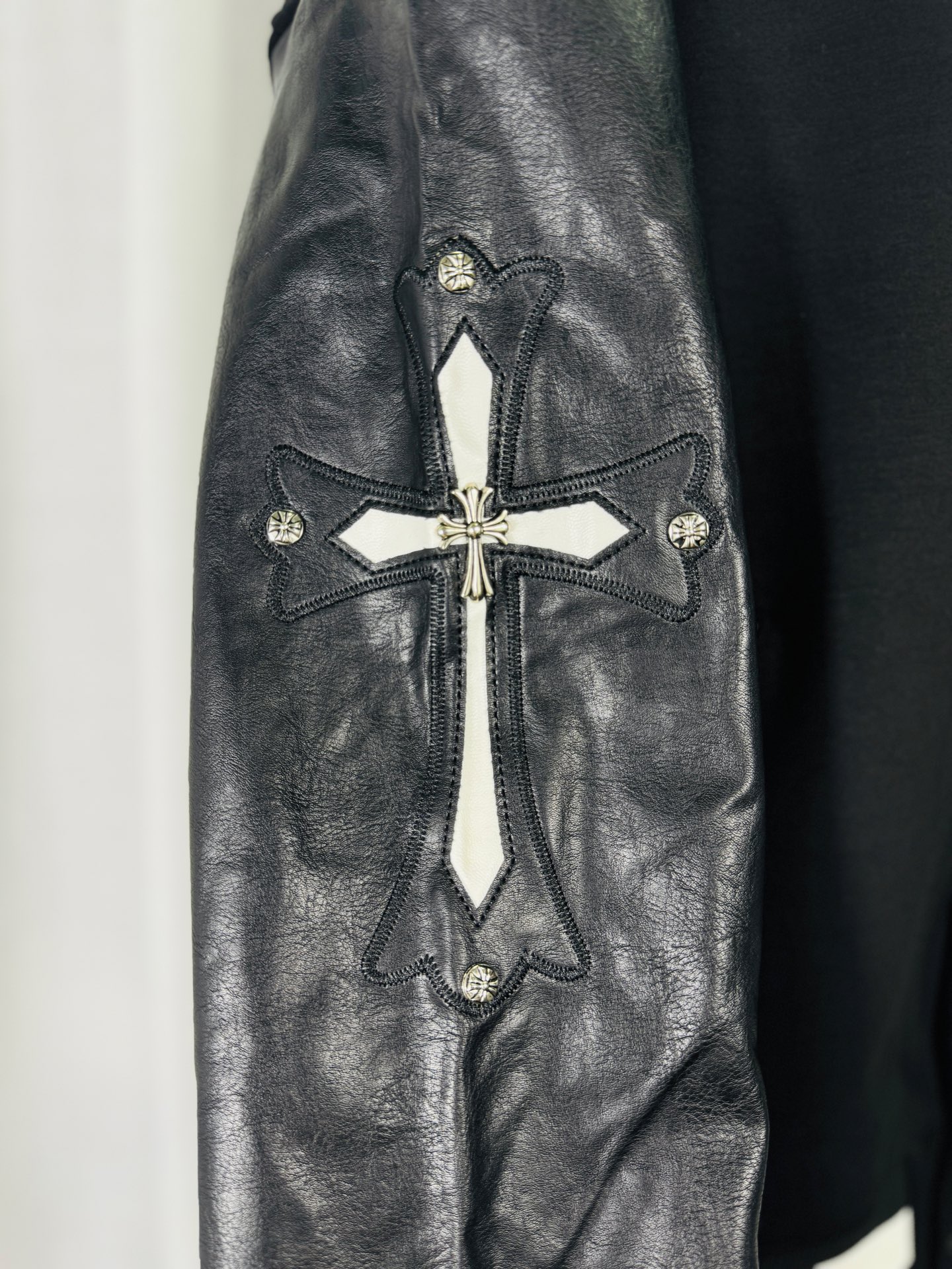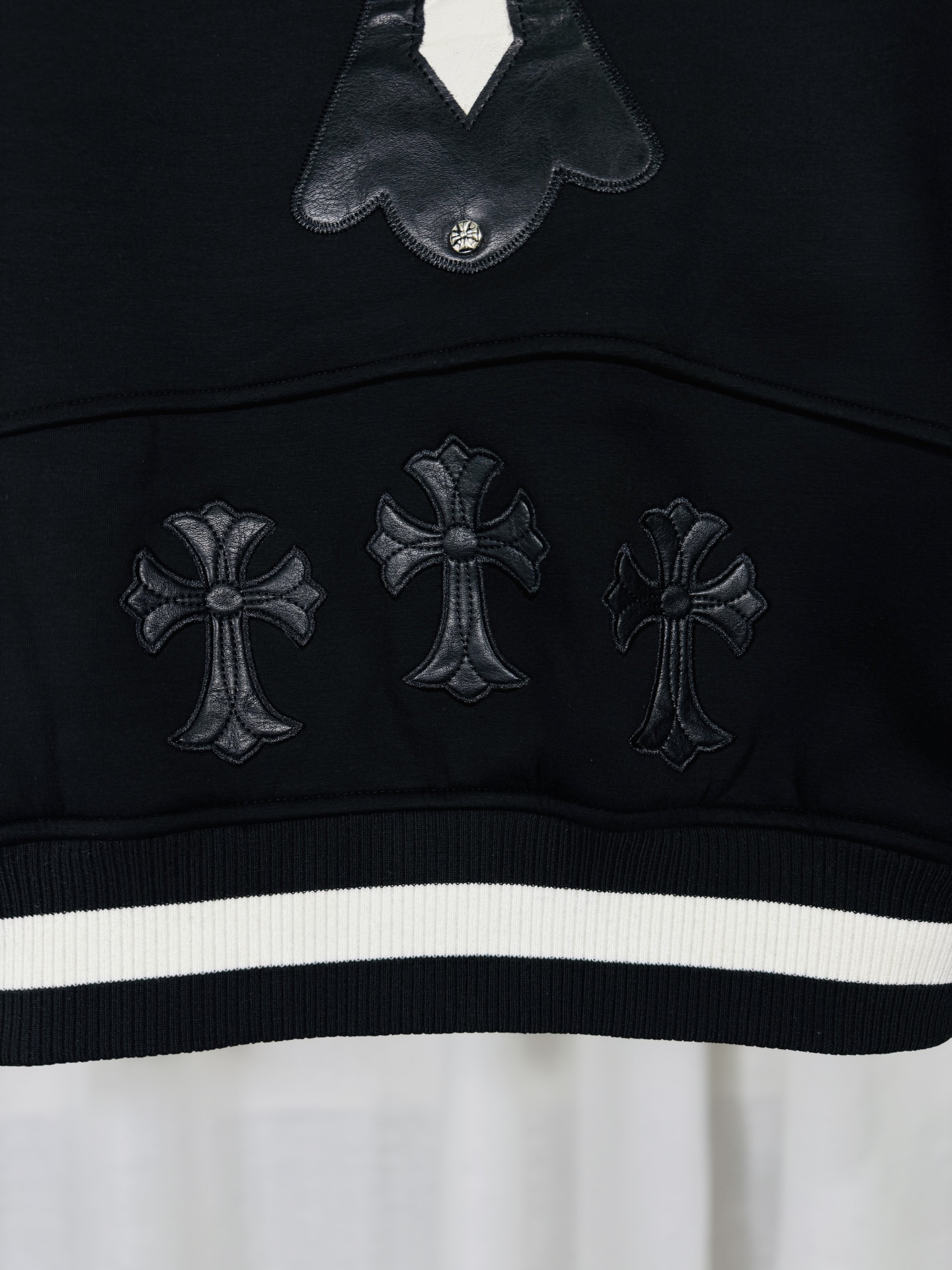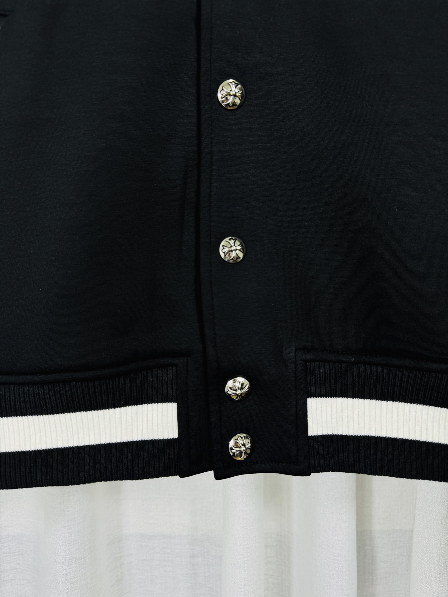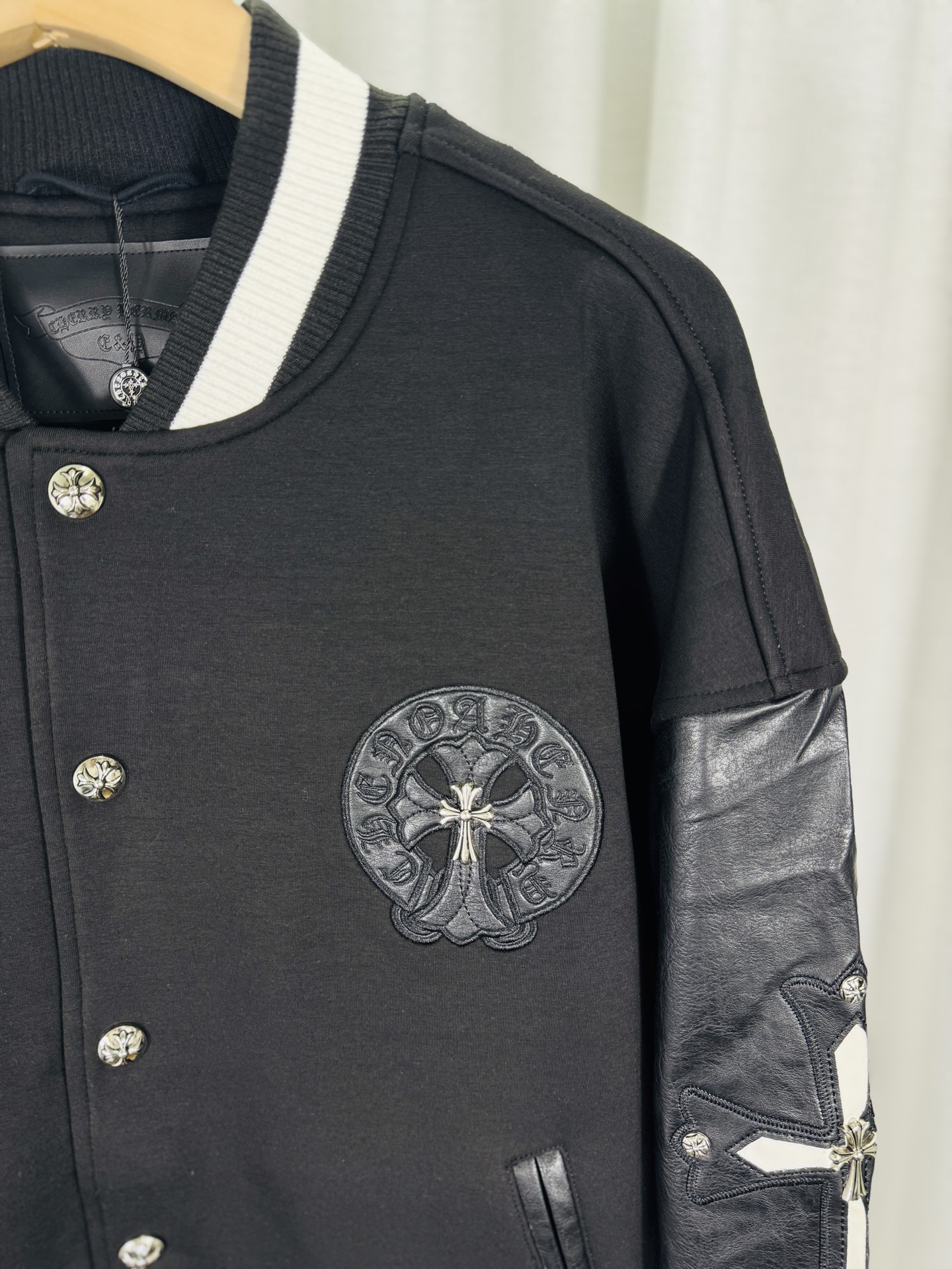 這款衣服是AAAAA 1:1 質量(非常棒). 使用了和原版一模一樣的材料. 商標部分也保持了和鉻心/Chrome Hearts一樣. 圖片拍攝是實物衣服拍攝, 您所收到的實物保證和我們圖片一模一樣.