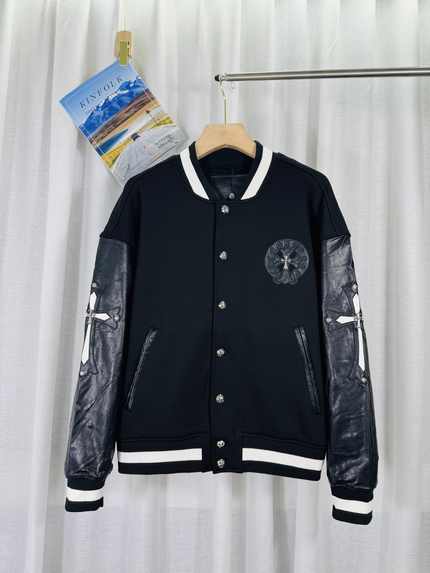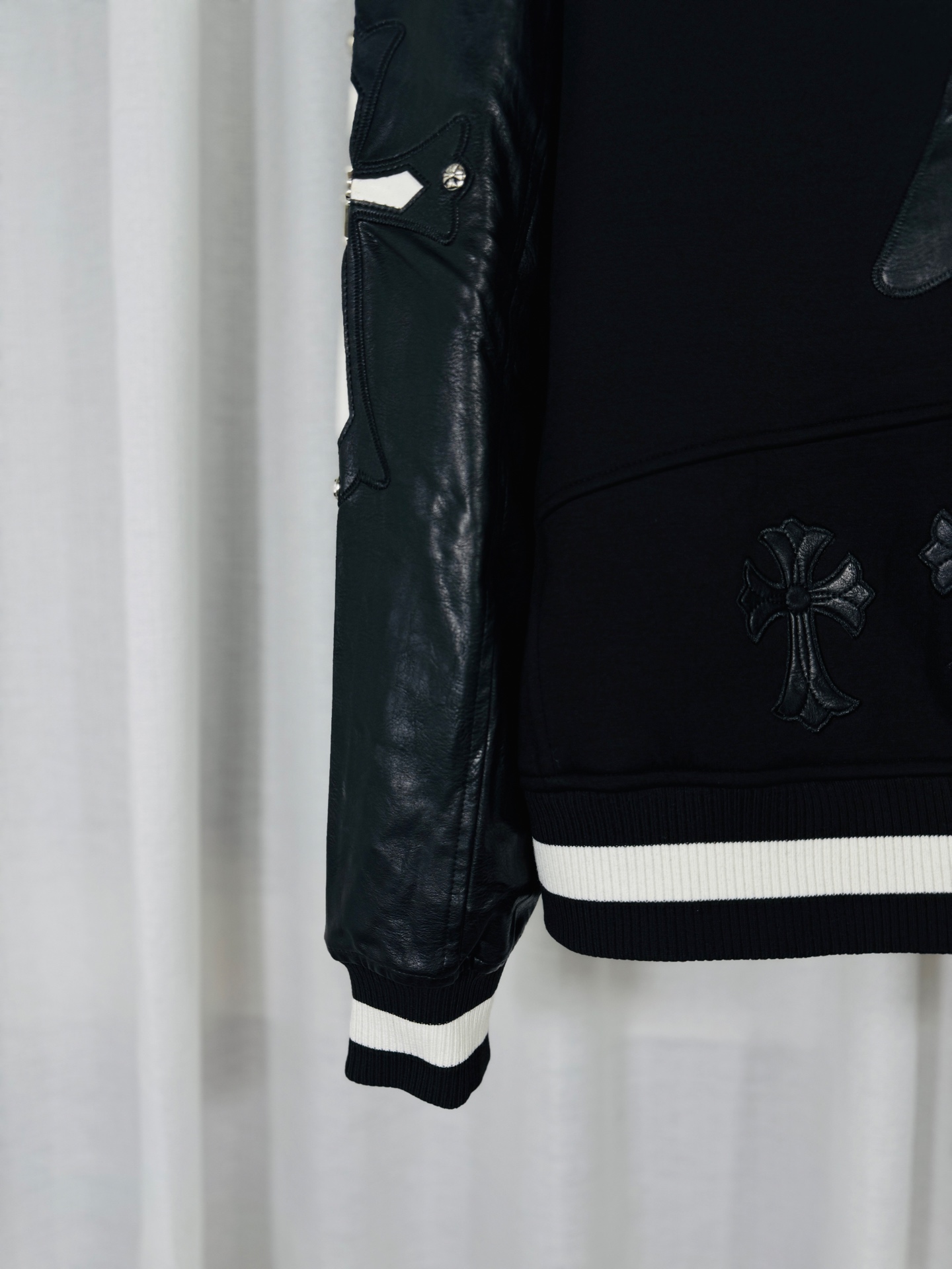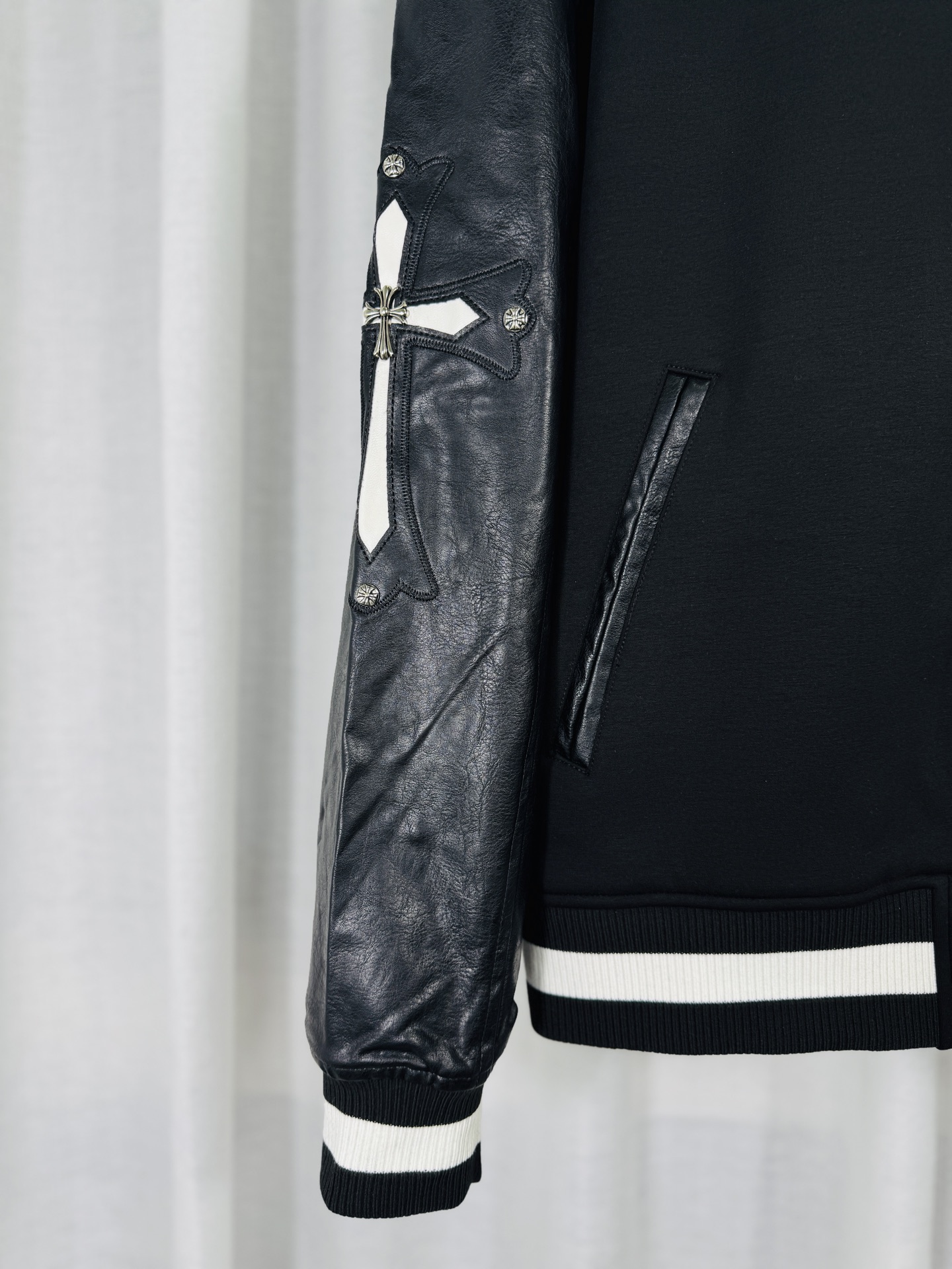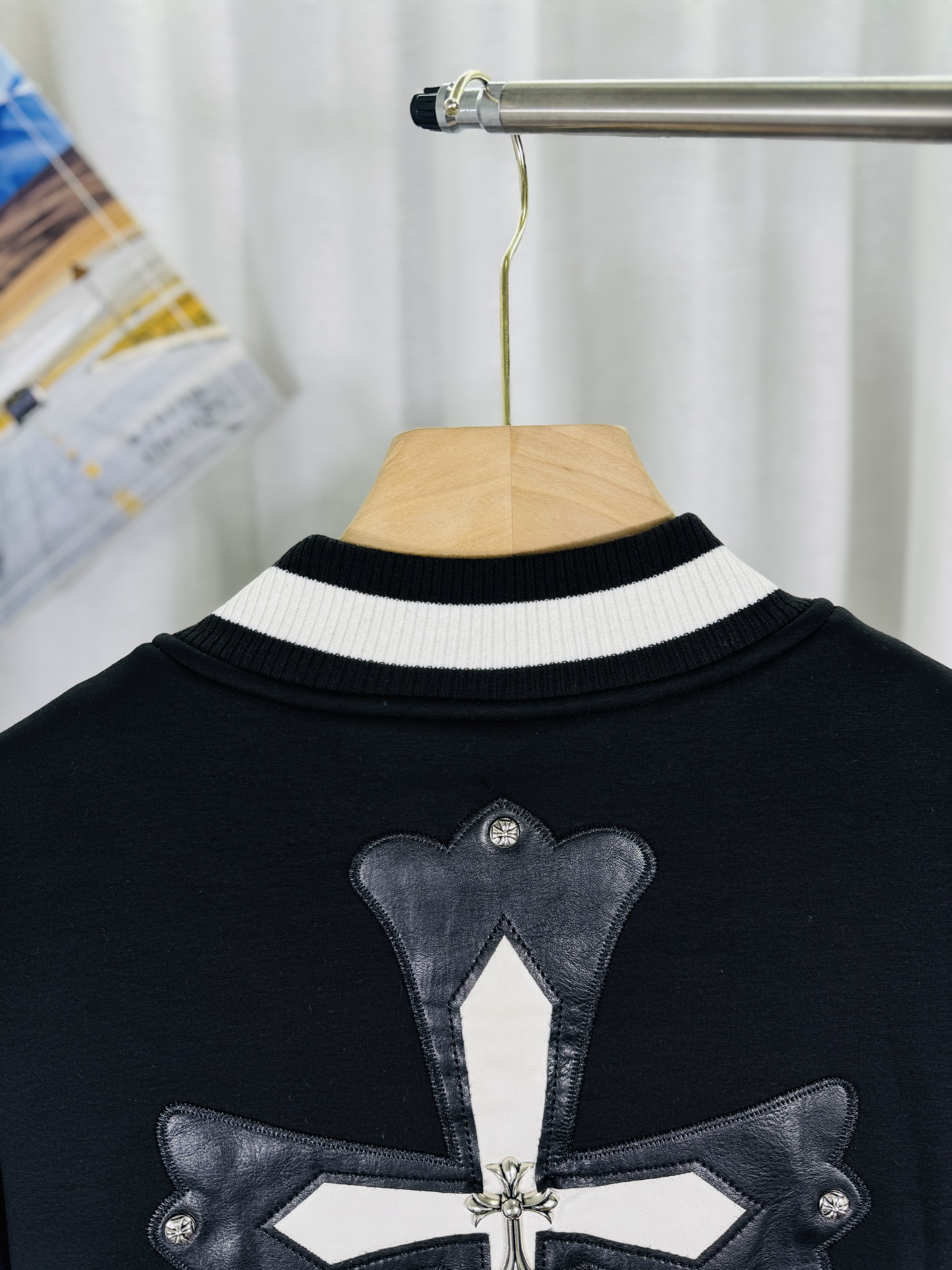 這款衣服是AAAAA 1:1 質量(非常棒). 使用了和原版一模一樣的材料. 商標部分也保持了和鉻心/Chrome Hearts一樣. 圖片拍攝是實物衣服拍攝, 您所收到的實物保證和我們圖片一模一樣.