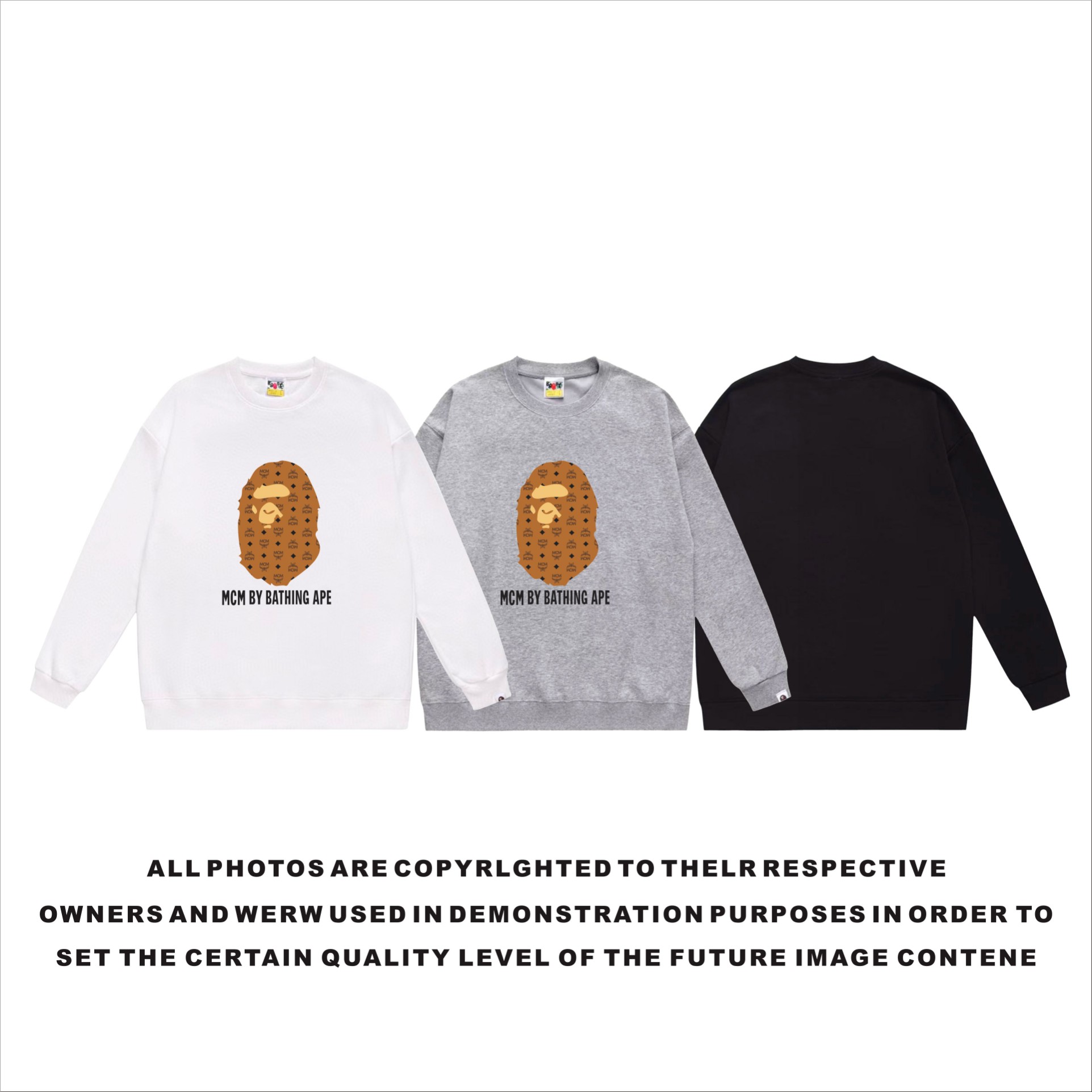 這款衣服是AAAAA 1:1 質量(非常棒). 使用了和原版一模一樣的材料. 商標部分也保持了和Bape一樣. 圖片拍攝是實物衣服拍攝, 您所收到的實物保證和我們圖片一模一樣.